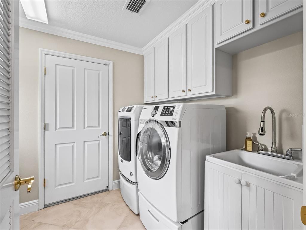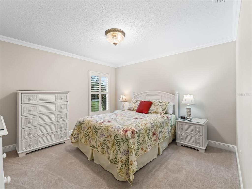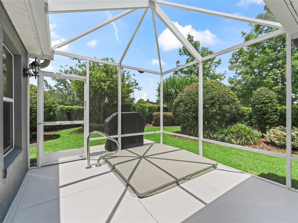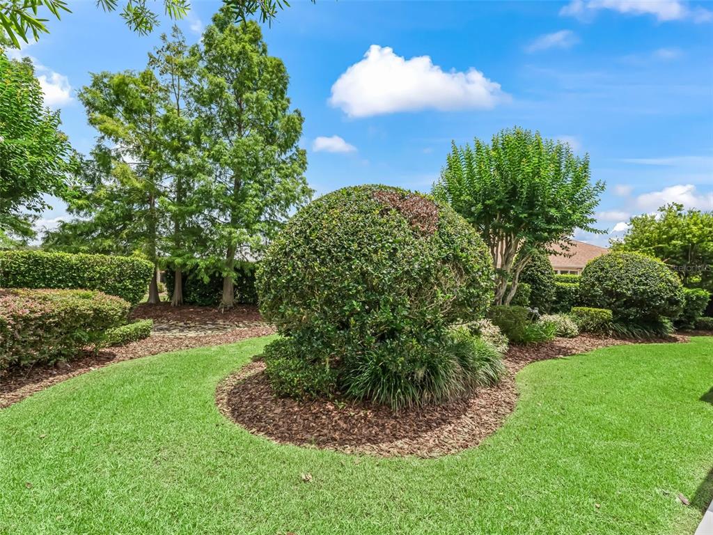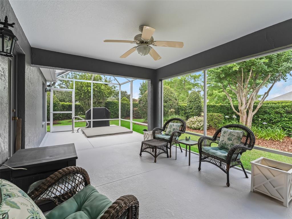 This beautiful 3/2 lantana designer home with 2000 sf of climate controlled living space, situated in a cul de sac in the village of caroline, with concrete block and stucco exterior is so convenient to lake sumter landing market square shopping, restaurants, and nightly live entertainment! freshly painted exterior and interior in beautiful neutral colors and brand new plush carpeting in the two guest bedrooms, there is 18 " diagonally set ceramic tile throughout the remainder of the house. as you enter thru the decorative glass front door with matching side lights and transom, you will immediately notice crown molding throughout, volume ceilings, granite countertops, and plantaion shutters throughout, which adds warmth and elegance to this open floor plan. this split floor plan offers plenty of privacy. the primary bedroom en suite features a california closet in the primary bedroom walk-in closet, dual split vanities, and water closet. there is door access from primary bedroom to the heated spa and lanai. the kitchen features cherry cabinets, closet pantry, granite countertops, pull-out shelving, pendant lighting, natural gas range, and a breakfast nook. additional features include upgraded ceiling fans and light fixtures, with spacious indoor laundry room equipped with front load washer and dryer, and plenty of cabinet space, which are just a few of the features that you will appreciate. the laundry room leads to the attached two car garage which features, built in cabinets. the exterior features lightning rods, and underground irrigation. the professional landscaping of this oversized lot is exquisite. you will enjoy relaxing in your private oasis, on the lanai, or in your heated spa. low bond balance. roof replaced in 2021, hvac replaced in 2017, new water heater installed august 2025. see this house today and when you do you will want to make this house your home.654 POINSETT, THE VILLAGES, FL 32162