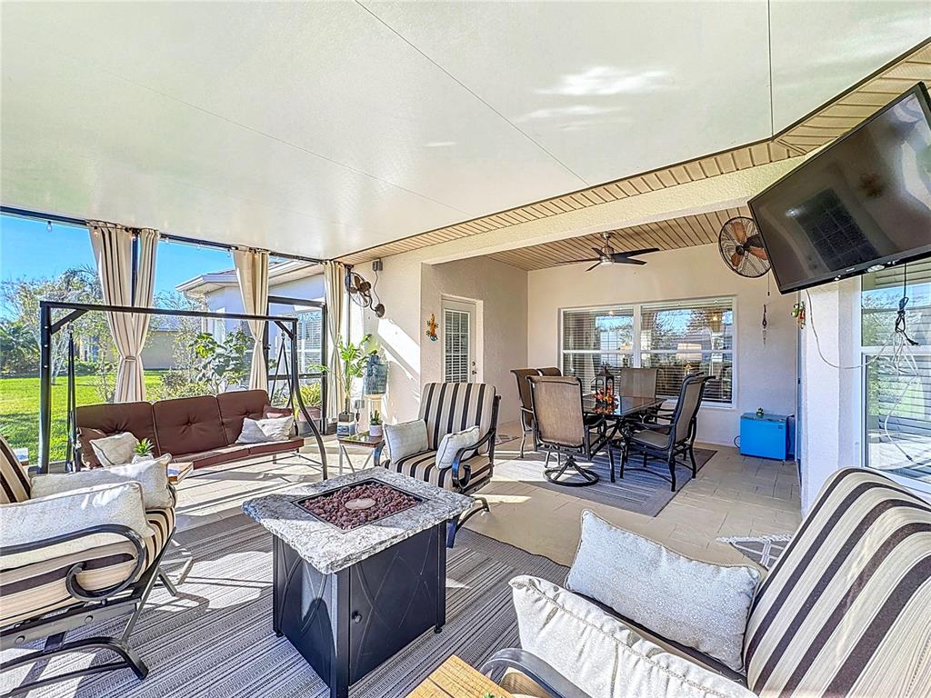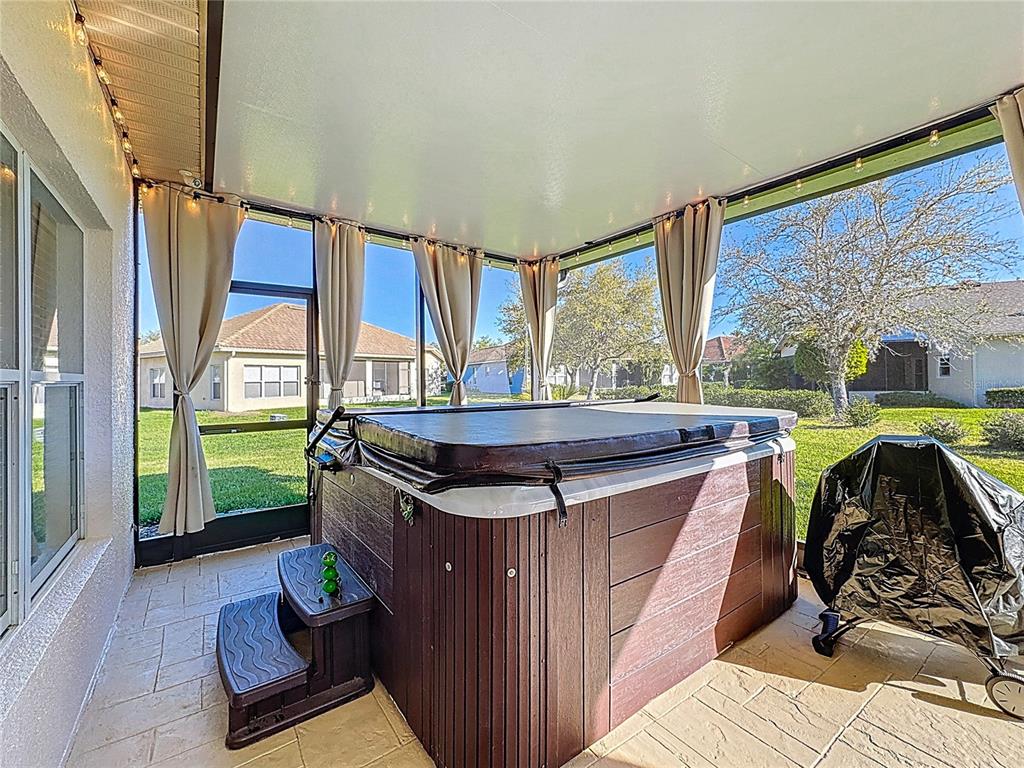 Beautifully maintained & upgraded chopin model on an oversized lot (.31ac). located near the sought after shorehaven lake & community pool for your morning exercise. the exterior of this home was just painted in march of 2025. hvac replaced in 2019, wh replaced 2020. roof is water tight, however seller is offering $10,000 towards a new roof. home security system with cameras, remote access via smart phone. the rear covered & screened lanai is where you will want to spend all your time, with over 570sf of true outdoor living space. this area affords tv, curtains, lighting, wall & ceiling fans for year round use. enjoy a dip in the hot tub with friends or soothe your muscles & relax with a glass of wine. interior upgrades include vinyl plank flooring throughout most of the main areas & tile in the foyer, kitchen & laundry room. the breakfast area was converted to a home office with a bay window & french doors that open to the family rm, making this home a 2 bedroom, 2 bathroom with a den. open kitchen with stainless steel appliances, stone tiled backsplash, granite countertop with large island extending into the family room(being used as the dining rm). good size primary suite affords ensuite bathroom with dual sinks, walk-in closet, separate shower and soaking tub. bedroom 2 affords a large walk-in closet & easy access to hall bathroom. laundry rm is accessible from the kitchen area & garage. the oversized garage has concrete flooring, overhead storage racks to keep everything looking clean & organized. it also allows for two cars & a golf cart. come see this home & make it yours. solivita is an active adult 55+ community approximately 50 minutes from disney world & the orlando international airport. solivita has a total of 5,470 homes. amenities include: - a well manicured softball diamond & field - 36 holes of championship golf (membership not required) - 2 state of the art amenity centers with exercise equipment, yoga/exercise studio sauna & showers facilites.3 restaurants - 14 heated pools,17 pickleball court,9 tennis courts,4 bocce ball courts,4 shuffleboard courts,3 horseshoe pits - a billiards room - miles of bike paths - 2 dog parks (small & large dogs) - corn hole - tot lot playground - community garden - over 250 resident clubs. the hoa: - maintains the landscaping & irrigation systems in the common areas & for the individual homesites - maintains the roads throughout the community - provides security with gate guards and mobile patrols including the polk county sheriff - allows automated gate access for residents via license plate readers - provides residents with fiber optic internet & tv service.a major new shopping center that opened directly across from the solivita main gate features sprouts grocery, tj maxx, ross, burlington, rack room shoes, 5 below, ulta, outback, first watch, 5 guys, urgent care, dentist, td bank, petco & hair cuttery with more to come.657 SHOREHAVEN, POINCIANA, FL 34759