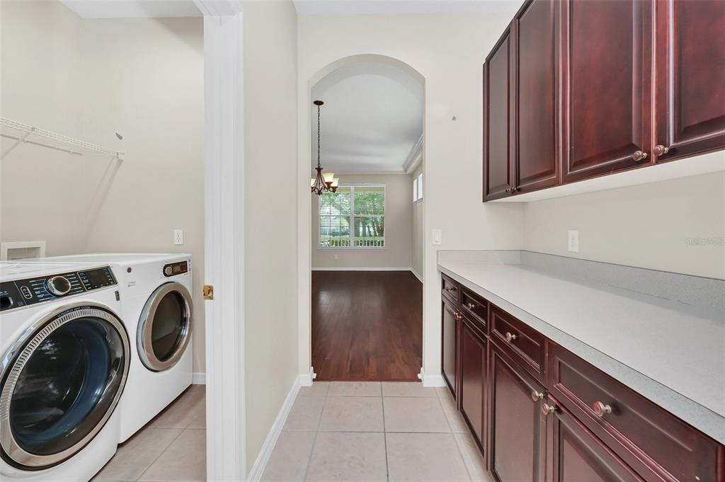 Move in ready! 5bd/3.5ba (4 bedrooms on ground floor and 5th bedroom on 2nd floor). freshly painted interior and exterior with tile or hardwood throughout! located in sought after lakes of windermere subdivision. open floor plan boasts 3,045sq.ft with stunning recessed ceilings. enjoy cooking in the magnificent gourmet kitchen with marvelous counter tops and stainless steel appliances! just off the kitchen area, is spacious butler's pantry and work space. elegant spacious master retreat with large windows and recessed ceiling and large walk in closet. master bath has 2 separate vanities as well as a shower and garden tub. each bedroom has individual closet. spacious laundry room with washer and dryer and shelving. 2 car garage attached. park is located diagonally across the street. community has pool, basketball courts and playgrounds for recreation and so much more!!!! new roof 2023. hot water heater 2023. downstairs ac 20226613 DUNCASTER, WINDERMERE, FL 34786