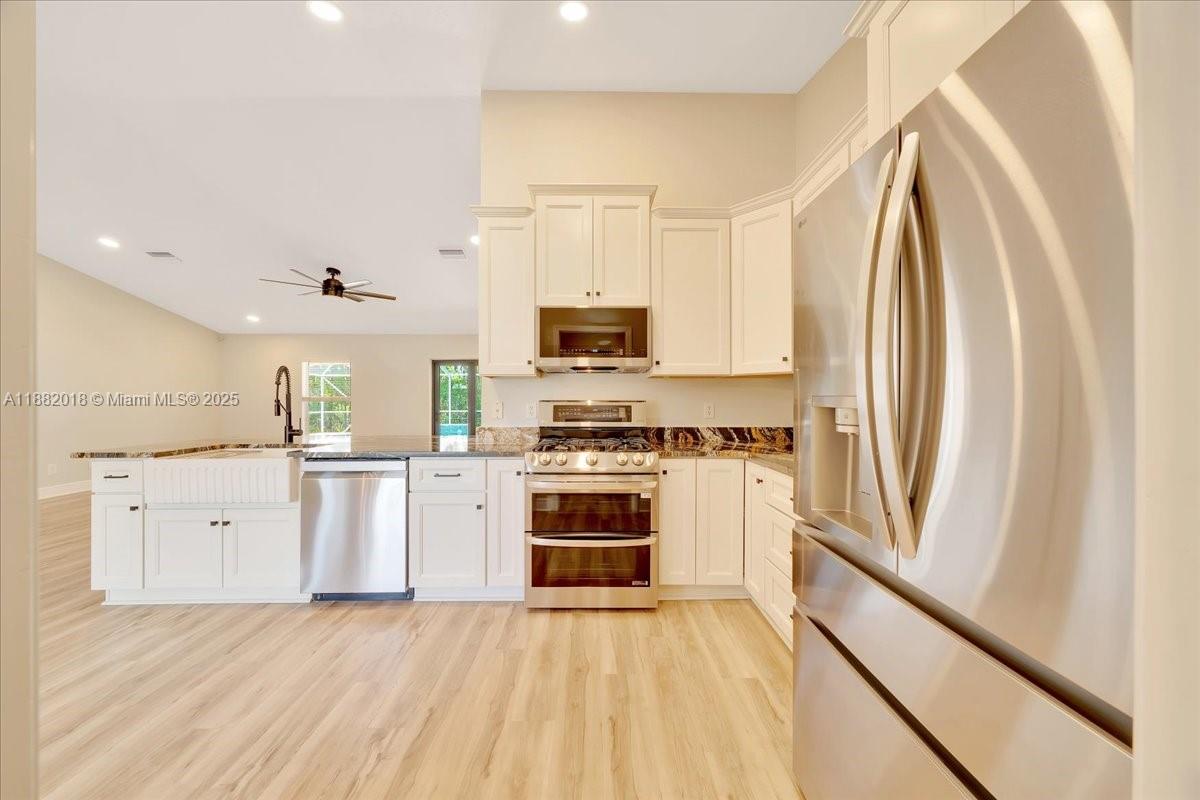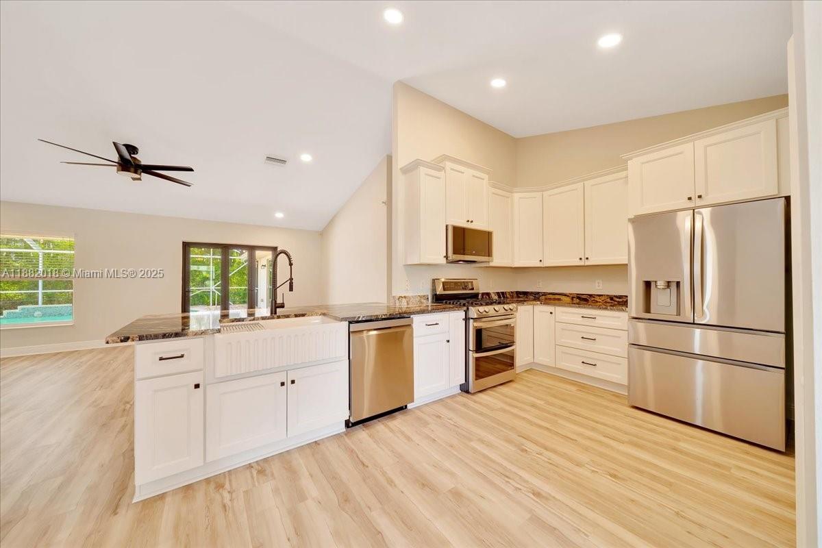 Originally built in 2003 by murphy kaufman, this 4-bed, 3-bath pool home with private in-law suite has been fully renovated in 2024–25. the entry was opened to create a spacious flow between kitchen and great room, with new shaw luxury vinyl plank flooring throughout. the kitchen features solid wood cabinets, quartz countertops, farmhouse sink, lg stainless appliances, gas cooktop, and restructured island. the master suite offers pool access and a spa-like bath with garden tub, dual-head shower, and quartz finishes. all baths are updated with modern fixtures. other upgrades include new baseboards, paint, lighting, fans, and custom trifold glass doors leading to a refreshed pool area. the in-law suite has its own entrance, kitchen, hvac, and full bath.6631 SE 11TH, OCALA, FL 34472