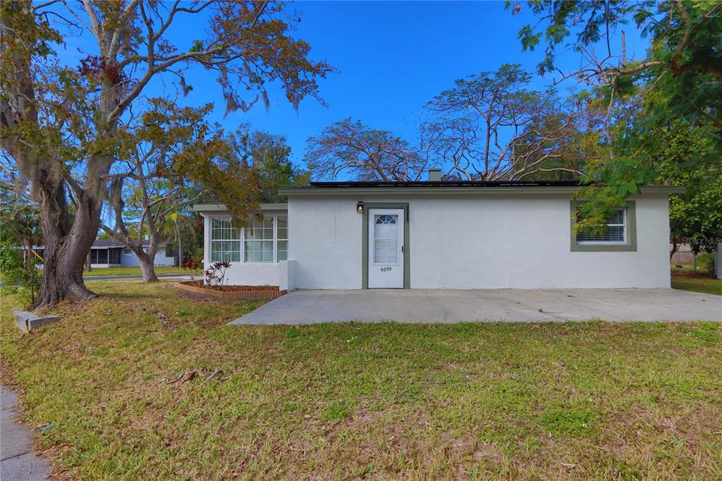 Back on the market!! great corner lot for this nicely updated 4 bedroom, 2 bath home! upgraded with brand new light white oak flooring throughout creating an open and seamless feel. this large and spacious home has a great floor plan flow with one side of the home having an expansive bedroom with it's own separate entrance, indoor laundry area, and en-suite bathroom. the kitchen and living room with 3 large bedrooms and a bathroom are separate from the other side of the home . the fourth room is surrounded by windows spanning both walls overlooking the front yard and providing beautiful, natural sunlight! this room can be used as a large bedroom, family room, office or as a florida sitting/reading room. the kitchen has shaker style cabinets with a contemporary backsplash and thick granite stone countertops. there is also a brand new stainless appliance package with a french door, bottom freezer fridge, convection fryer oven range, microwave, and dishwasher. both bathrooms have also been updated with a new vanities and contemporary brush nickel fixtures to accompany. there is a large parking pad for the driveway and a huge shed in the backyard for additional storage space. the home also has solar panels for added energy efficiency too! this home would also be great to use as an in-law suite since the other side has it's own entrance or even as an investment unit for additional rental income if you decide to rent that side of the house! it's well located right off of 66th st n near the park blvd/gandy blvd artery that leads directly to us hwy 19 n and i-275. close to the tyrone shopping area and our amazing local beaches within a few minutes drive to either. take your opportunity to own an ideal sized 4 bedroom, 2 bath home in a peaceful, desirable location! plus this home is higher elevated and not in a flood zone, no flood insurance required.6699 78TH N, PINELLAS PARK, FL 33781