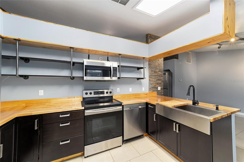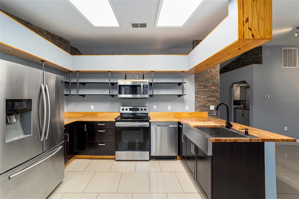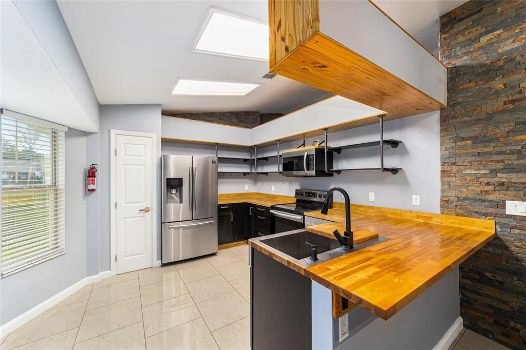 The ultimate in modern luxury living! beautifully remodeled with bamboo and porcelain tiled floors throughout, slate trimmed accent walls, and stylish accent lighting. the highlight of this home is its outstanding dream eat-in kitchen with butcher block counters, sleek stainless steel appliances, deep sink with updated fixtures. retreat into your primary bedroom and spa-like bathroom. walk in closets are completed with built-ins. the amazing bathroom offers dual vanities, waterfall fixtures, teak ceiling, deep soaking tub with rain shower head. step outside to your covered patio overlooking a spacious backyard. situated on a oversized corner lot and located in the desirable porter shores area which is minutes from downtown ocala, shopping areas and entertainment venues.6760 CHERRY, OCALA, FL 34472