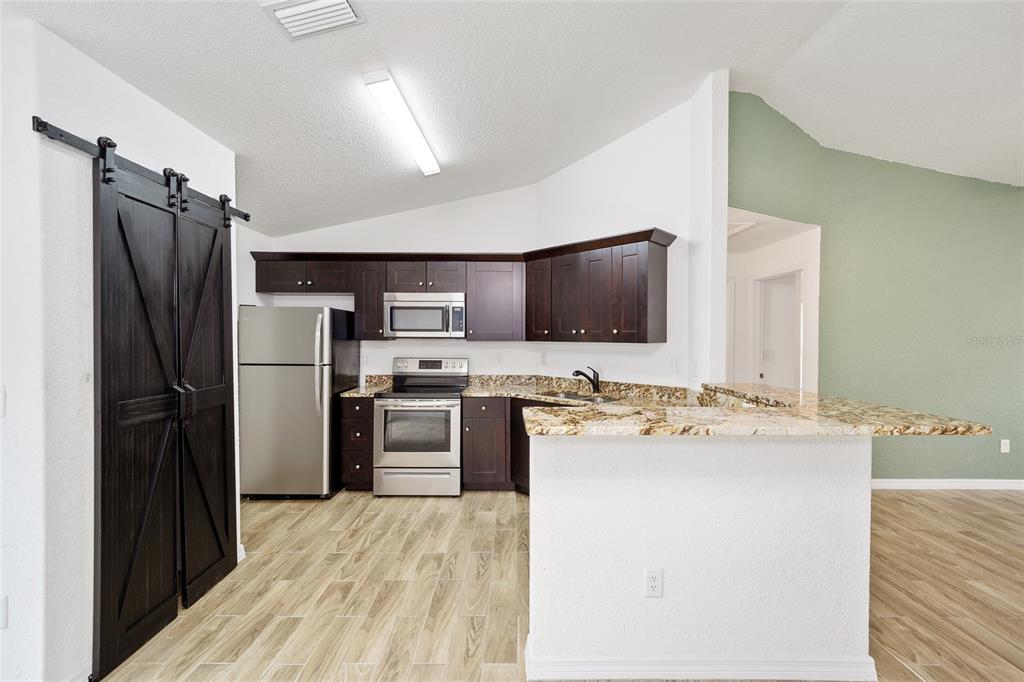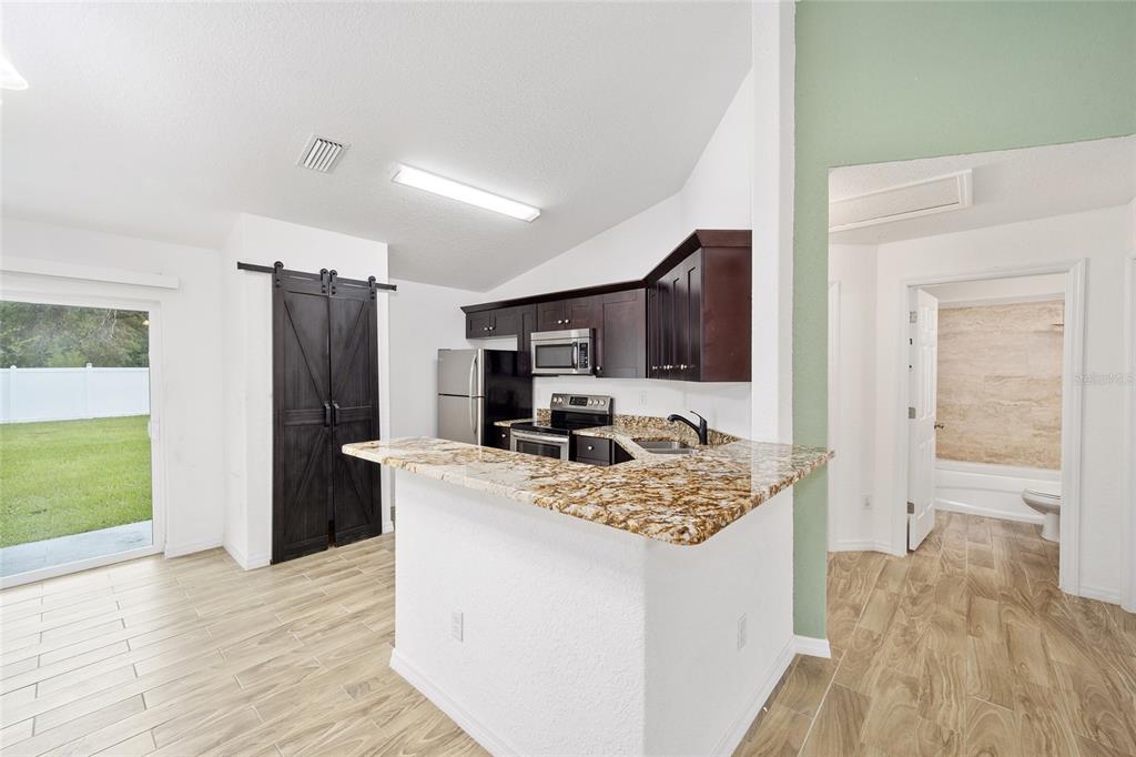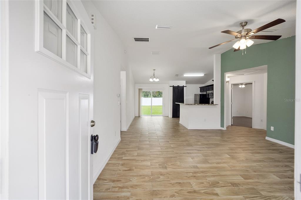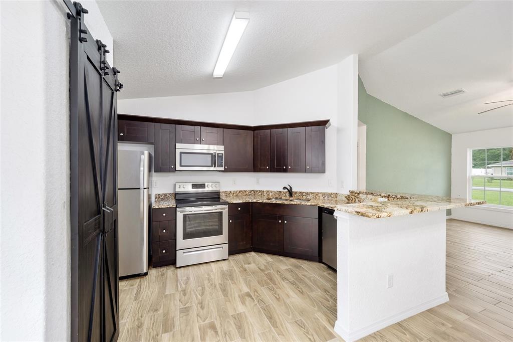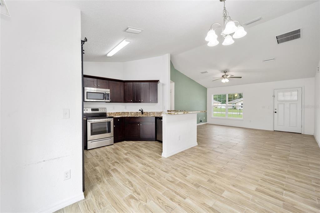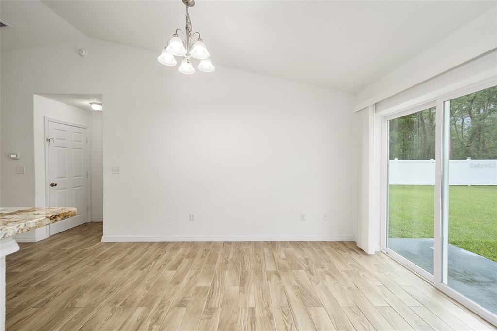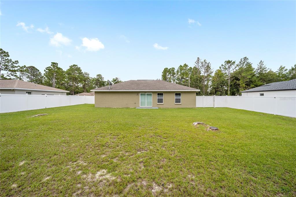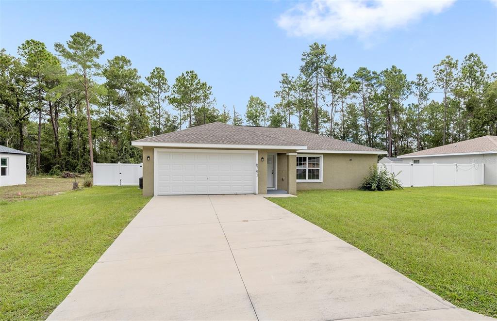 Don't miss out on this beautiful and almost new home ready for immediate move-in!!! located in the marion oaks community, a few miles south of sr 200 in southwest ocala, this home offers a location with a unique country setting yet minutes away from i-75 and the villages for an easy commute. this light and bright home offers 3 bedrooms and 2 baths in an open and spacious floor plan with high ceilings and easy-to-maintain tile plank and laminate flooring throughout. the nicely equipped kitchen wows with its bar-height seating perfect for casual dining, a stainless appliance package, granite countertops, a barn door pantry for storage needs, and a dining area with sliders to outdoors. the owner's suite offers a spacious walk-in closet and an ensuite bath with a tile-lined shower and a granite-topped vanity. this home also offers a large vinyl privacy fenced backyard offering plenty of space for outdoor gatherings or a pool. the marion oaks community offers a community center, playground, tennis courts, workout facility, library, grocery & other local businesses with no hoa fees. as a bonus, this home is conveniently located a short distance from the rainbow river for tubing, kayaking, and boating and only 30 minutes from the world equestrian center.6791 SW 153RD PL, OCALA, FL 34473
