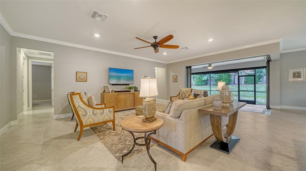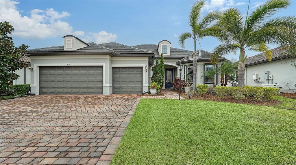 Come see this lovely home located in the gated 55+ del webb community in lakewood ranch. this popular pinnacle model offers 3 bedrooms, 3 baths, a den, and gourmet kitchen with many built-ins. the zero corner slider leads to the screened lanai -- a great place where you can enjoy your morning coffee, relax, and entertain guests. the home offers 2488 square feet of living space along with a three-car garage (2 cars plus golf cart). the living areas have tiled floors and crown molding. bedrooms have carpet. the spacious primary bedroom and ensuite bath has a spacious walk-in closet, large shower, and vanity with dual sinks. the open floor plan has a large gathering area adjacent to the spacious gourmet kitchen, and dinette. the kitchen countertops are quartz with white cabinetry and stainless steel appliances. there is a spacious walk-in pantry. a large island with sink, work space, breakfast bar separate the kitchen from the great room. at one end of the kitchen the dining area has easy access to the lanai. the laundry room has a utility sink and cabinetry along one wall. the home has plantation shutters throughout and hurricane shutters on the windows and doors. the 28,000 square foot clubhouse is located within walking distance or a short drive. the clubhouse offers numerous amenities, including, but not limited to a resort-style pool, state-of-the-art fitness center, pickleball and tennis courts, and game rooms. the sailfish bar and grill restaurant offers indoor-outdoor waterfront dining. del webb at lakewood ranch is located within minutes of lakewood ranch main street and i-75 for easy access to benderson park, utc shopping, restaurants, and entertainment. it is also just a short distance to downtown sarasota, st. armands, and the beaches.6839 CHESTER, BRADENTON, FL 34202