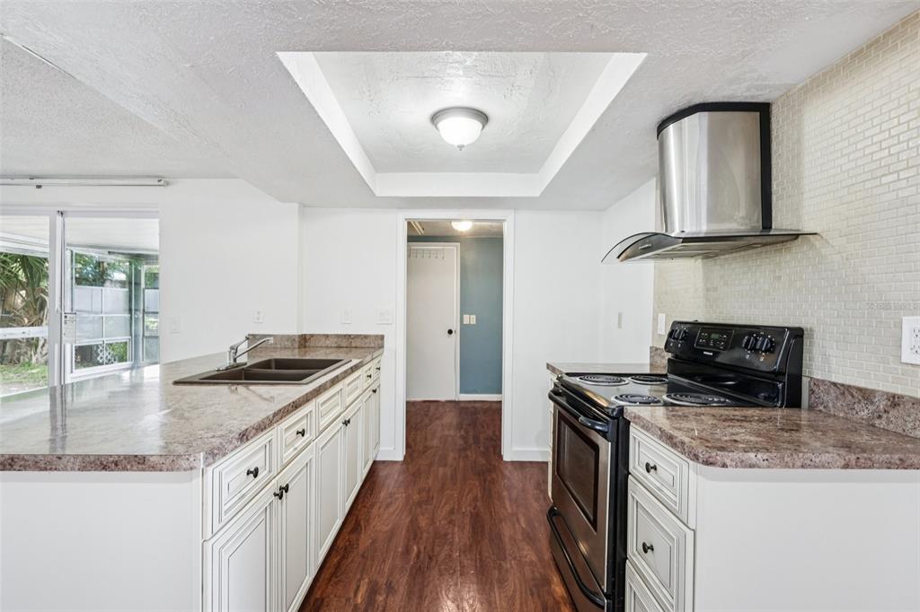 This beautiful 2-bedroom, 1.5-bathroom home is exceptionally clean, well-loved and waiting for its new owner. walk in the front door and it feels like home. the vinyl wood plank flooring flows through out this home, rich in color and easy to maintain. the open floor plan is desirable as it gives many options for larger furniture, and flexibility when designing your personal living space. the centrally located gally style kitchen offers plenty of storage with updated cabinetry, counter tops, tiled back splash, designer kitchen sink, range and hood. there is an inside laundry room, that has additional space for storage. bedrooms 1 and 2 have plenty of room for large beds, furniture and room to spare. the full bathroom separates the two bedrooms, has a single vanity, and a bathtub/shower combo. the garage has been converted into a inside bonus room, that can double as a home office, play area or an additional space for guests. open the garage door from the outside and you have storage for your lawn mower, yard tools and more. additional concrete was poured to more than double the width of the driveway for ample parking, with an additional walkway into the fenced in back yard. there is a large covered and screened florida room out back, plus an additional concrete patio to further enjoy the semi-private back yard. the location is fantastic, extremely close to dining, entertainment, shopping, medical, colleges, area beaches, beautiful downtown new port richey and even an a rated private school. this home is high and dry located in flood zone x. call today for your private tour, and if you have any questions – just ask.6840 MESA VERDE, PORT RICHEY, FL 34668