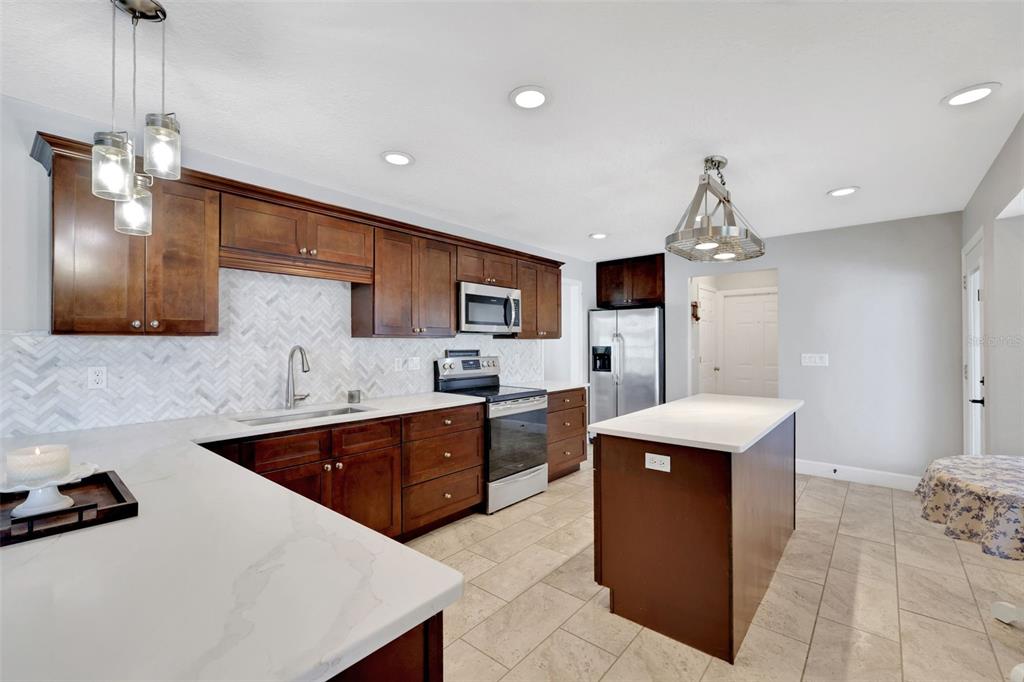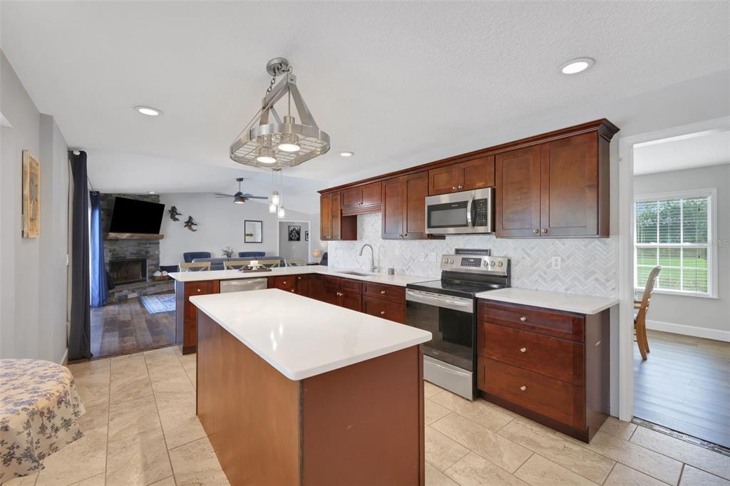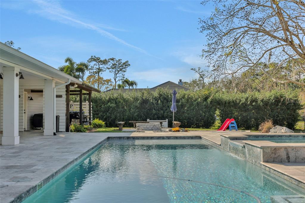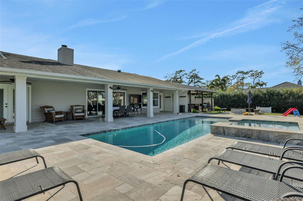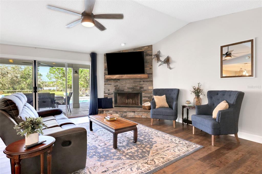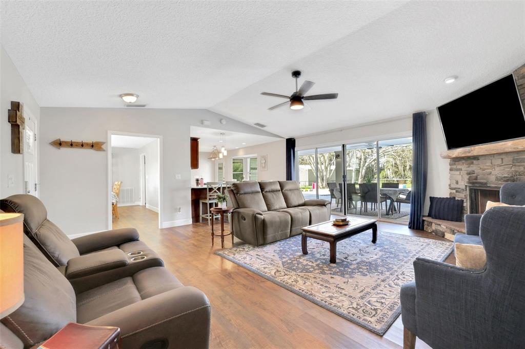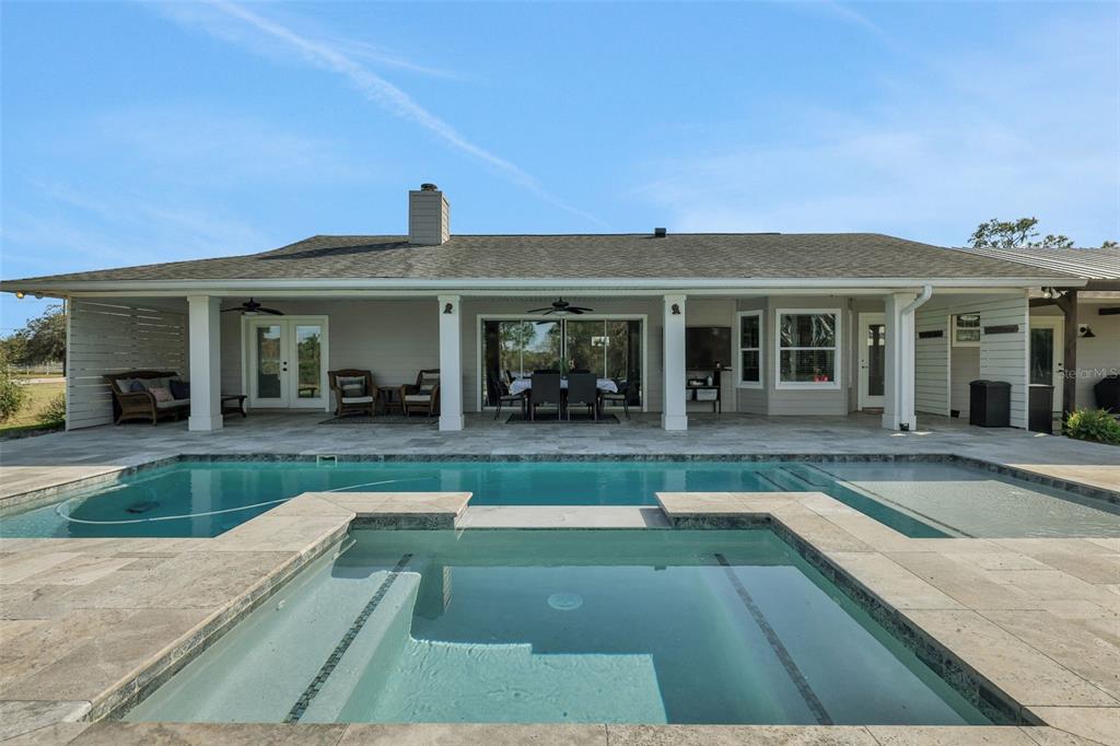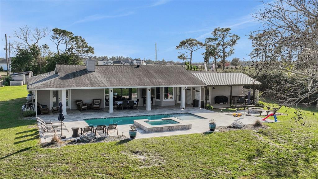 Discover the allure of this exquisite lakefront residence, nestled on over 2 tranquil acres in east st. cloud. recently renovated, this four-bedroom, two-and-a-half-bathroom home showcases a modernized kitchen with quartz countertops, stainless-steel appliances, functional island, large closet pantry, and attached butler’s pantry/utility room with room for a second refrigerator and chest freezer. an oversized formal dining room, breakfast nook, and bar top seating offer many different dining options. the spacious living room features a beautiful stone fireplace and 4-panel sliding glass doors that recess into the wall as they open giving unfettered access and views of the resort-like backyard overlooking the lake. the expansive back porch features a stunning pool with a shallow beach area and an attached hot tub. the generous pool deck boasts luxurious travertine tile along with the attached grilling porch with adjacent fire pit, offer ample space for numerous outdoor entertainment possibilities. all of this, situated on the shores of bay lake where you can spend your days fishing, skiing, or enjoying the pool and your evenings relaxing on the dock while you watch the sunset over the lake.6845 OLD MELBOURNE, ST CLOUD, FL 34771