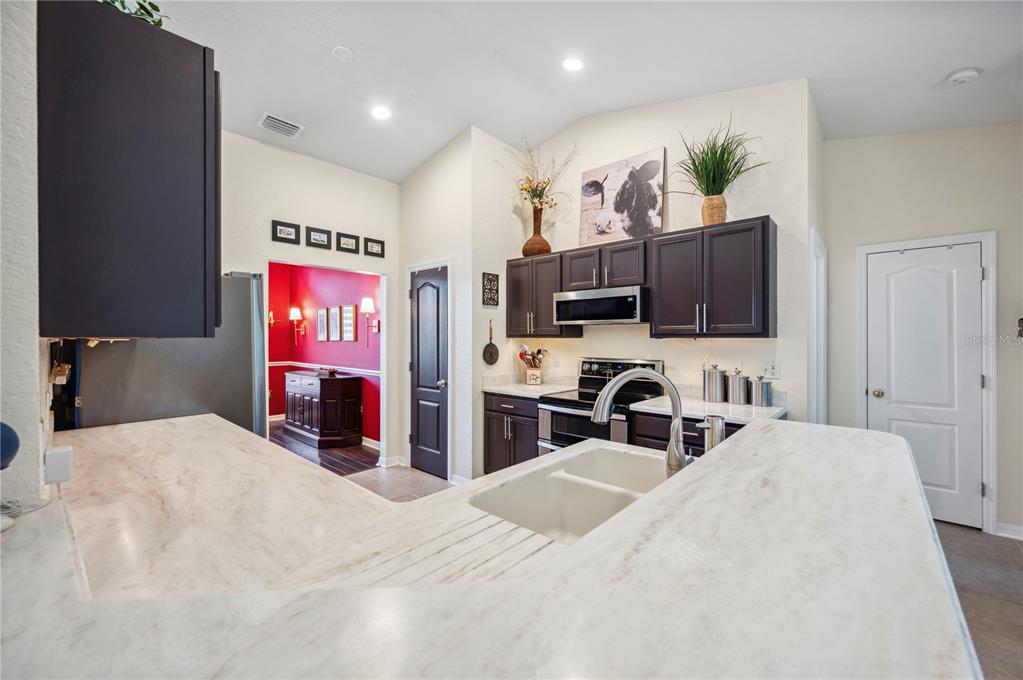 Welcome to this beautiful 4-bedroom, 2 -bathroom home in one of north lakeland's most sought-after communities! with a 2024 roof (has a transferrable warranty), this gem of a home offers a very comfortable layout! owner's pride of ownership is evident with how well maintained the home is giving buyers great peace of mind! go up the walkway to the front entry and step inside to the lovely foyer of the home. the formal dining room is to your left and a bonus room is to your right. the dining room is ideal for entertaining, while the bonus room provides versatility. straight ahead is a spacious great room that is open to the updated kitchen complete with gleaming corian counters, stainless steel appliances, a breakfast bar, and a breakfast nook - perfect for casual dining. the spacious primary suite (aka: the master suite) is perfect for unwinding and features access to the screened in lanai, a window overlooking the backyard, and boasts an updated en-suite bathroom featuring granite counters, a soaking tub, a glass-door shower and dual sinks. an inside laundry room and an oversized side entry 2-car garage complete the west end of the house. this home features the ever popular triple split plan - meaning master suite one one side, and then the other bedrooms are on the other side of the home. from the great room, to the southeast side of the home, are 2 additional bedrooms and a tastefully updated hall bath. the fourth bedroom is located at the northeast corner of the home and is currently being used as an exercise room. it boasts a window overlooking the spacious backyard. flooring throughout the home include tile in the kitchen, laminate in the dining room and fourth bedroom and carpet in the remaining three bedrooms. enjoy year-round comfort with a lovely screened in lanai, perfect for enjoying your morning coffee or evening beverage of choice while looking out to the large backyard. you'll have peace of mind with a 2017 water heater and a regularly serviced ac unit. this home is a delight to see. make your appointment today!6846 ASHBURY, LAKELAND, FL 33809