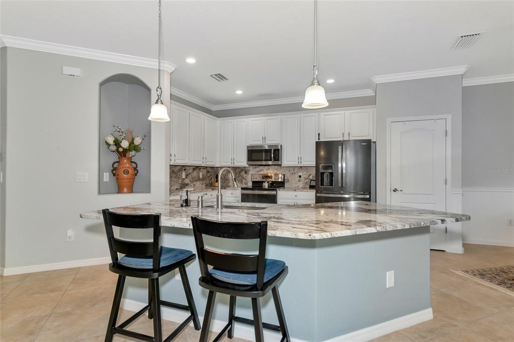 Major price improvement this immaculate 4-bedroom social deeded pool home will elevate your lifestyle and bring years of enjoyment. many upgrades make this home out of the ordinary. the seller has taken care by having accordion hurricane shutters and a remote-controlled lanai screen resistant to hurricane force winds installed for storm protection. the seller added additional insulation in the attic and a 2-year transferrable termite warranty. once you step through the front door into the welcoming foyer you will begin to sense the details that make this home exceptional. the formal dining room has been designed with a touch of elegance in mind with the stylish wainscotting on the walls adding architectural detail and texture. as you pass through into the great room you will begin to imagine the interaction that will take place here with family and friends. it’s the perfect place to watch a game or a movie room for everyone. you don’t have to be a gourmet chef to appreciate the remodeled kitchen with granite counter tops and painted cabinets with pull out drawers for convenience. the island is the perfect place for serving a buffet. the inviting kitchen nook provides extra space for a dining table for everyday meals. throughout the home the timeless appeal of wood-look luxury laminated floors complements many interior styles and provides long-lasting durability. the ensuite primary bedroom provides sanctuary and luxury with a custom built in closet and privacy door to the lanai. the vanity has a granite countertop and updated dual sinks. a soaking tub, separate shower and a private water closet complete the bathroom. two guest rooms are located on the other side of this home with their own shared full bath. the fourth bedroom is currently used as an office. for those who enjoy outdoor living, retractable triple glass sliding doors from the great room open to the covered and screened lanai. put your grilling skills to the test or take a plunge in the heated saltwater pool, great for fitness and relaxation. the lanai exterior is lushly landscaped for privacy. the laundry room of this home has all the conveniences, a large sink and basin, cabinets and storage shelves. park your golf cart and vehicles in the three-car garage for weather protection and easy accessibility in and out of the home. the corner lot location of this home is in a cul-de-sac, so traffic is kept at a minimum. river strand is an active community with 9 har-tru tennis courts and 8 pickleball courts, both with active programs, lessons and tournaments. there are 2 resort style pools with spas, the main resort pool has a tiki bar and a lazy river pool, 6 satellite pools are located throughout the community. golf is pay per play with availability on the 27-hole course. never a day goes by without something on the social or fitness calendar. evening events include game nights, bingo, dances, entertainment and themed dinners. healthy, casual and special meals are served in the dining areas. a comprehensive plan for renovation will begin spring 2025 to enhance and modernize the clubhouse and tiki bar area. no one could ask for a more convenient location near the heritage harbour market place, grocery and drug stores, medical facilities, restaurants, and shopping. hop, skip and a jump to i-75 with access to airports and beaches. this truly is a home for those who want to live, work and play in paradise, could it be yours?6849 WILD LK, BRADENTON, FL 34212