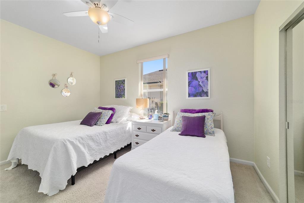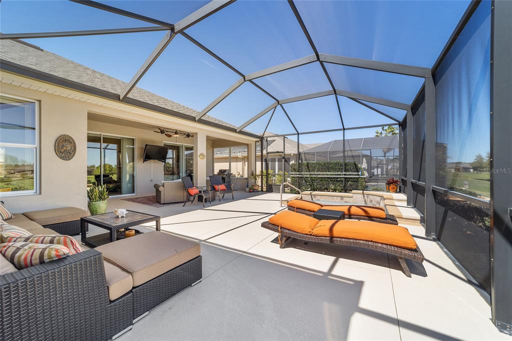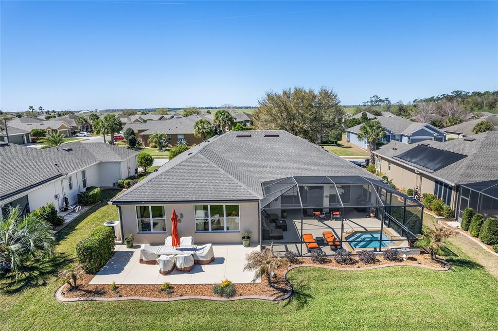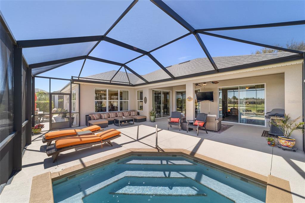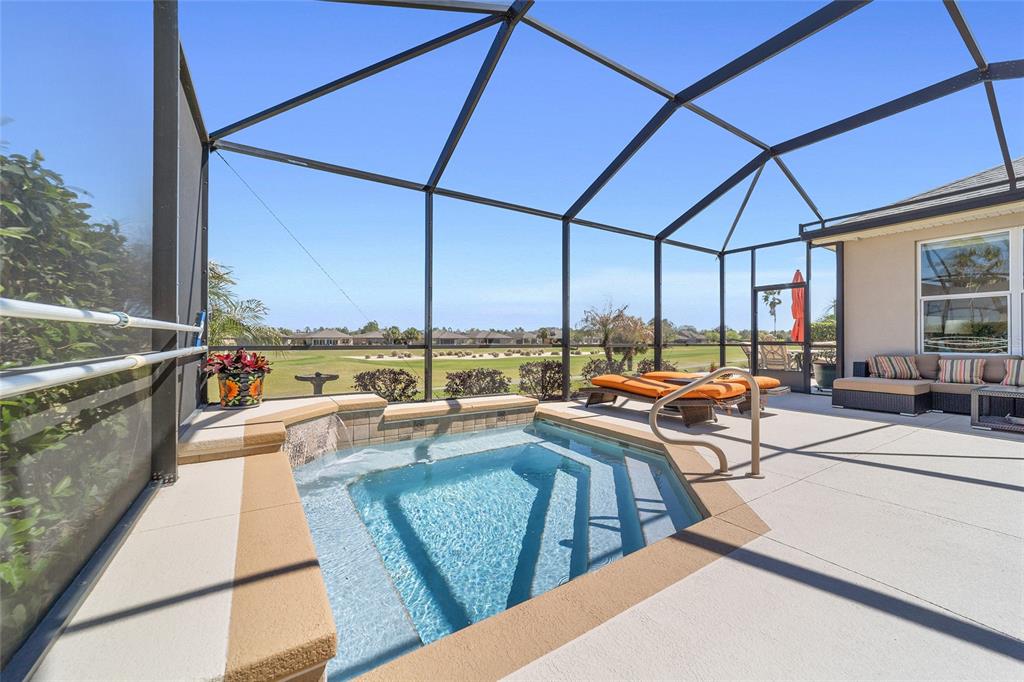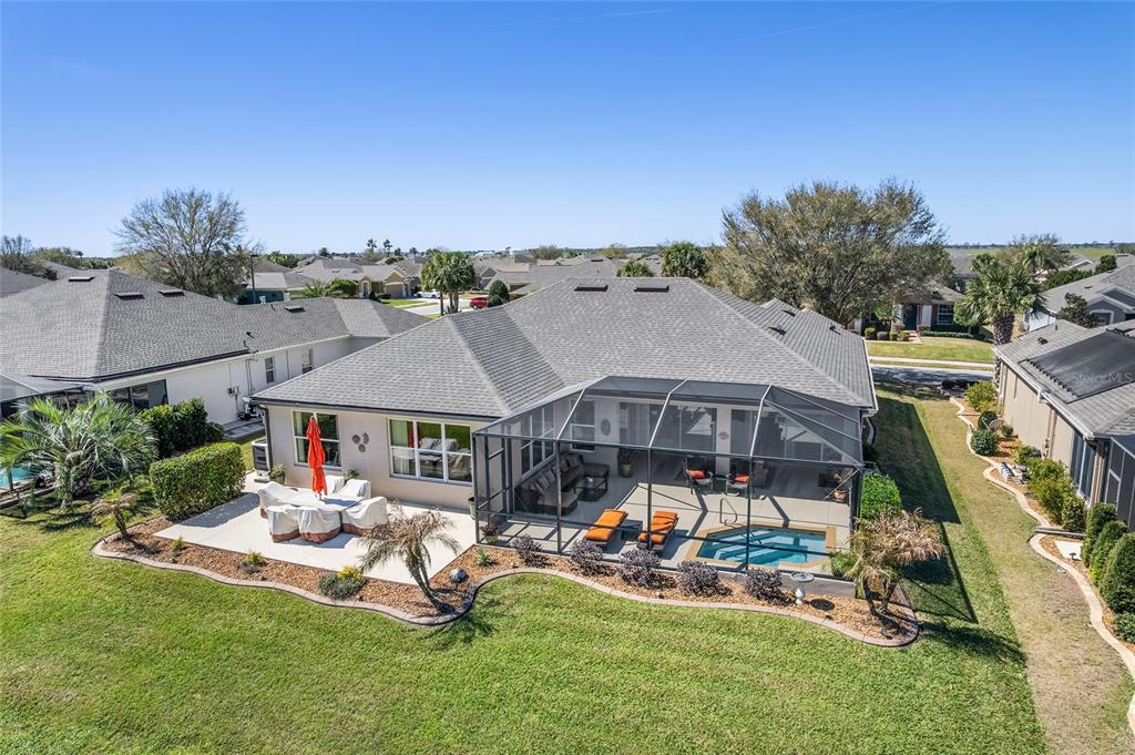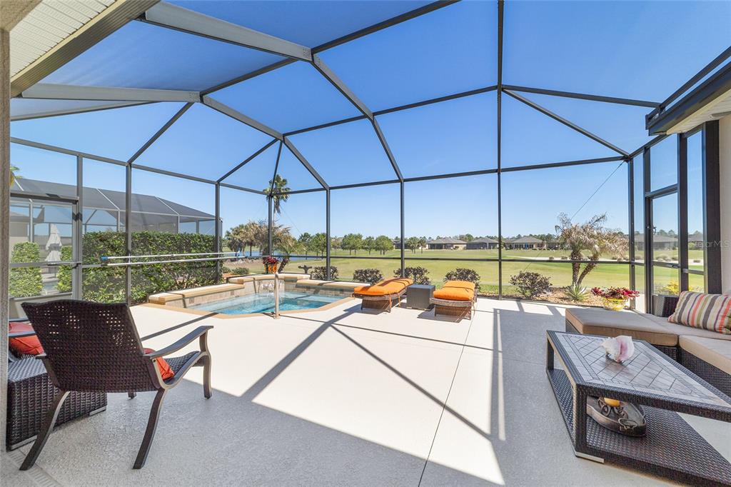 Location, location, location! imagine waking up to panoramic views of the lush green fairways, with a distant glimmer of the lake in the background. this stunning 3-bedroom, 2-bathroom kingston sits elevated above the golf course, offering a fantastic scenic view while still maintaining privacy. step inside to find a home that shows like a model with a spacious kitchen that is both elegant and functional, featuring cherry-stained maple cabinets with 42” uppers, stunning granite countertops (added in 2019), travertine marble backsplash, and stainless-steel appliances, all replaced between 2020 and 2024. tile flooring runs throughout the home, while plush carpet softens the bedrooms, including the main bedroom, where the carpet was replaced in 2023. the ensuite bedroom features a bathroom with dual vanity sinks, frameless shower, and garden tub. as you move through the home, you will find updates at every turn. the laundry room was beautifully remodeled in 2021 with new cabinetry, and a new washer and dryer were installed in 2022. major upgrades bring peace of mind, including a brand-new roof (2024), hvac system (2021), water heater (2021), and an updated irrigation control and sensor (2023). the interior was freshly painted in 2024, while the exterior received a refresh in 2019, ensuring a polished and well-maintained look. the true magic of this home unfolds from the screened-in lanai which extends out to a relaxing saltwater spool, installed in 2019, with an electric pentair heat pump that allows it to function as either a hot tub or small pool, perfect for unwinding after a day on the course. beyond the enclosure, a large open patio provides ample space for entertaining or simply enjoying the view of the stone creek 6th green. both the lanai and patio deck were repainted in 2025. the 2.5 car garage includes a separate golf cart entry, making it easy to hit the course at a moment’s notice. a custom-painted driveway (2024) adds to the home’s curb appeal, welcoming you in style. this is more than just a home, it’s a lifestyle. del webb stone creek is an active adult, golf course community which offers resort-style living. enjoy a state-of-the-art fitness center, indoor and outdoor pools, spa facilities, tennis and pickleball courts, and more.6865 SW 97TH TER, OCALA, FL 34481