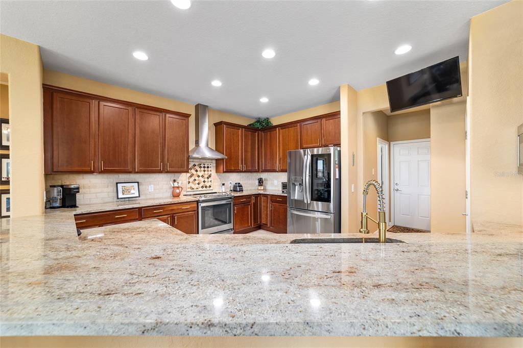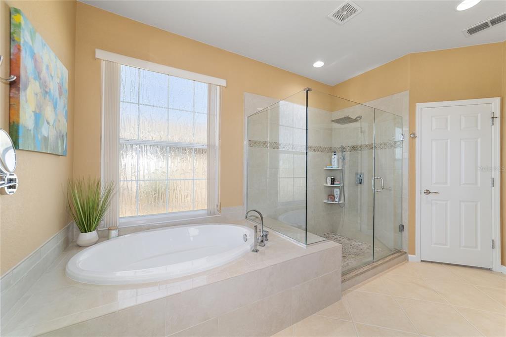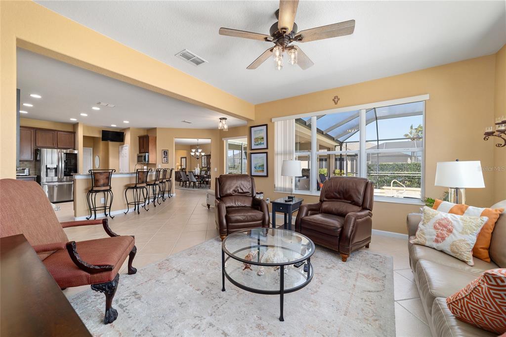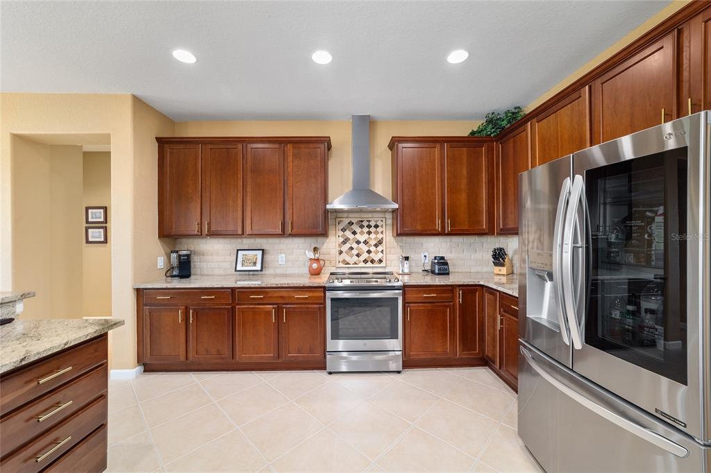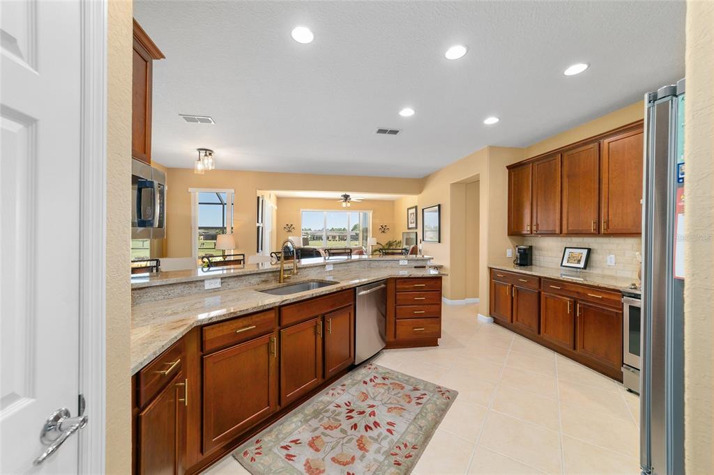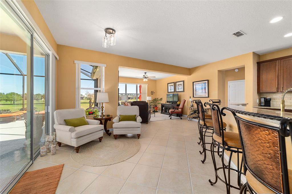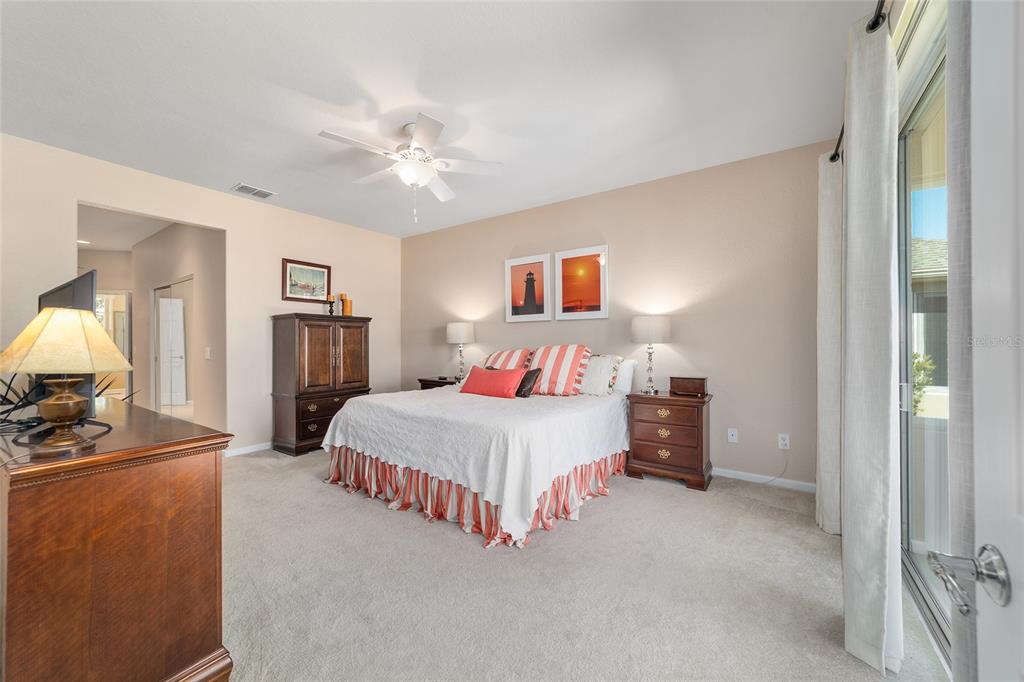 Location, location, location! imagine waking up to panoramic views of the lush green fairways, with a distant glimmer of the lake in the background. this stunning 3-bedroom, 2-bathroom kingston sits elevated above the golf course, offering a fantastic scenic view while still maintaining privacy. step inside to find a home that shows like a model with a spacious kitchen that is both elegant and functional, featuring cherry-stained maple cabinets with 42” uppers, stunning granite countertops (added in 2019), travertine marble backsplash, and stainless-steel appliances, all replaced between 2020 and 2024. tile flooring runs throughout the home, while plush carpet softens the bedrooms, including the main bedroom, where the carpet was replaced in 2023. the ensuite bedroom features a bathroom with dual vanity sinks, frameless shower, and garden tub. as you move through the home, you will find updates at every turn. the laundry room was beautifully remodeled in 2021 with new cabinetry, and a new washer and dryer were installed in 2022. major upgrades bring peace of mind, including a brand-new roof (2024), hvac system (2021), water heater (2021), and an updated irrigation control and sensor (2023). the interior was freshly painted in 2024, while the exterior received a refresh in 2019, ensuring a polished and well-maintained look. the true magic of this home unfolds from the screened-in lanai which extends out to a relaxing saltwater spool, installed in 2019, with an electric pentair heat pump that allows it to function as either a hot tub or small pool, perfect for unwinding after a day on the course. beyond the enclosure, a large open patio provides ample space for entertaining or simply enjoying the view of the stone creek 6th green. both the lanai and patio deck were repainted in 2025. the 2.5 car garage includes a separate golf cart entry, making it easy to hit the course at a moment’s notice. a custom-painted driveway (2024) adds to the home’s curb appeal, welcoming you in style. this is more than just a home, it’s a lifestyle. del webb stone creek is an active adult, golf course community which offers resort-style living. enjoy a state-of-the-art fitness center, indoor and outdoor pools, spa facilities, tennis and pickleball courts, and more.6865 SW 97TH TER, OCALA, FL 34481