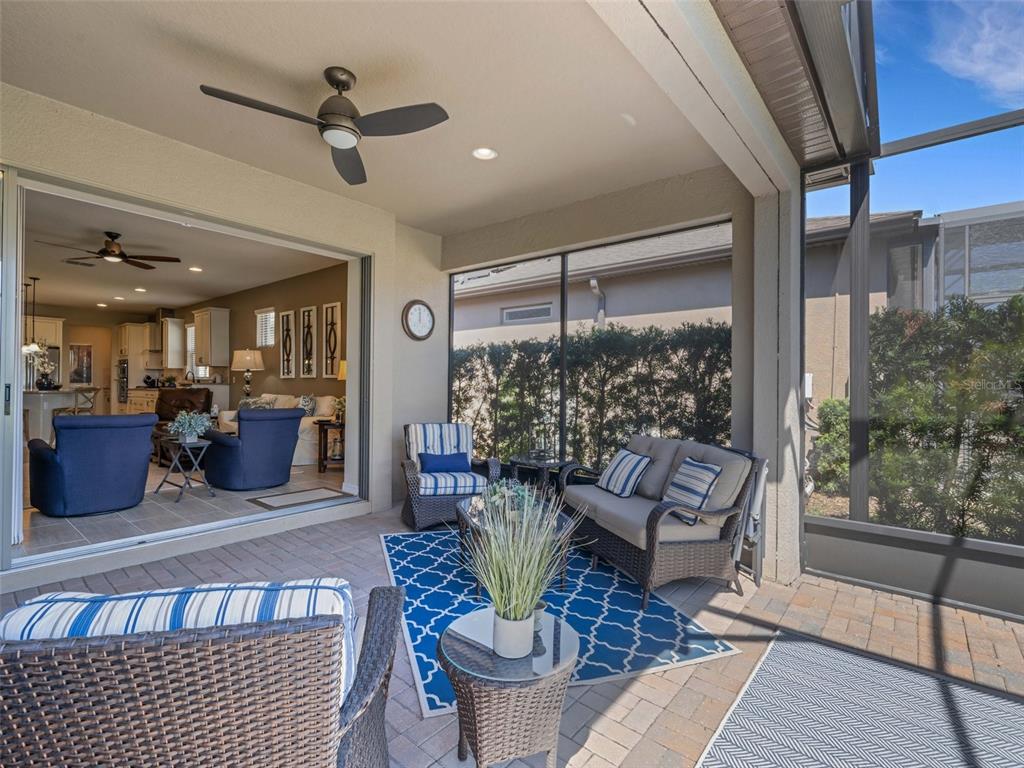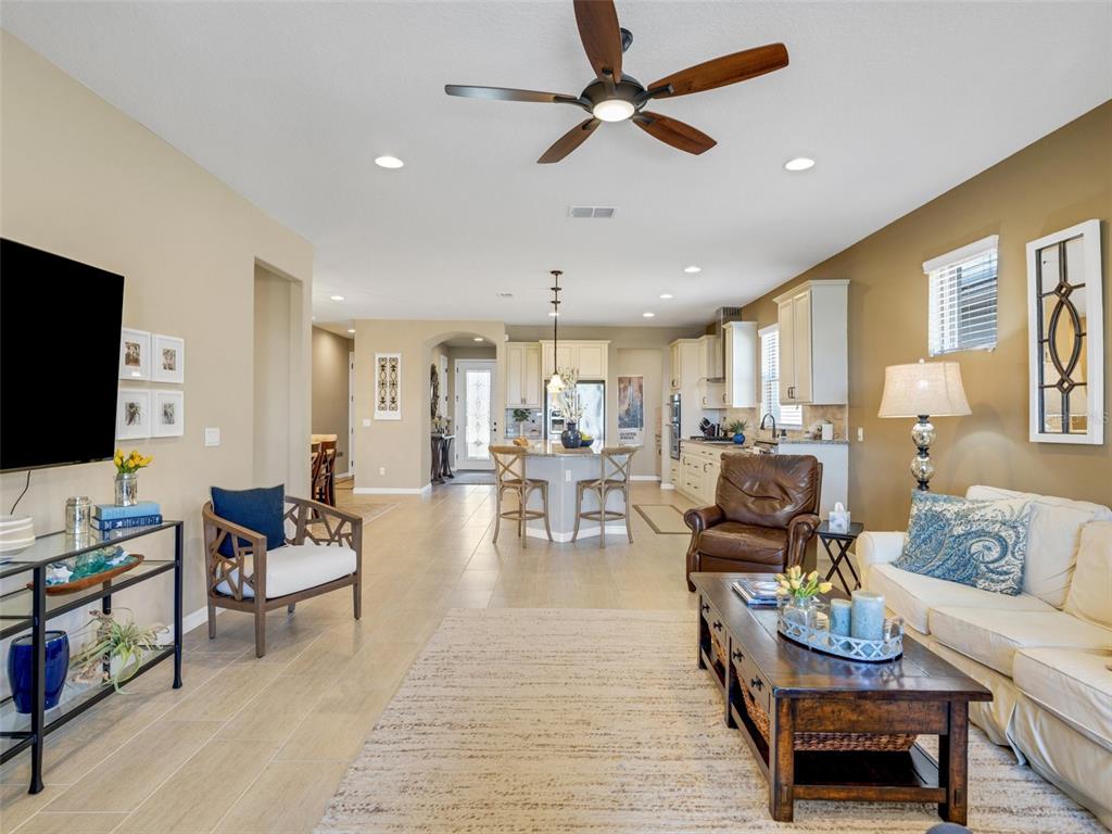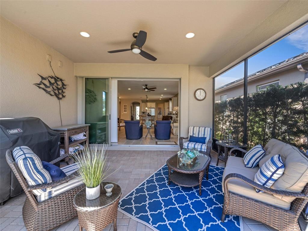 Located in the desired 55+ resort style community of del webb orlando, this furnished martin ray model located within walking distance to the clubhouse has 3 bedrooms, 2 bathrooms, plus a den. the front entryway features an 8' decorative glass front door. the den/office is located in the front of the home and has glass french doors. two additional bedrooms are off to the right side with the guest bathroom featuring a shower/tub combo with tiled walls and granite countertop. the gourmet kitchen includes granite countertops, stainless steel appliances, upgraded 42" cabinets, built-in cabinet pullouts, backsplash, a large island for all your entertaining needs, a natural gas cooktop, built-in oven and microwave, a raised dishwasher, and a supersized walk-in pantry with an additional butlers pantry. the large master retreat is located in the rear of the home for owner privacy and features a garden tub and separate tiled shower with glass door, double sinks, a linen closet and a large walk-in closet. from the great room you step through large sliding glass pocket doors onto an extended covered lanai with an additional screened-in area with a beautiful tranquil view with no rear neighbors. the large laundry room has cabinets for extra storage and a utility sink, and is located next to the primary bedroom for convenience. the garage is outfitted with storage cabinets with countertop and epoxy floors. other upgrades include porcelain tile floors in the living areas, owners' entry with built-in drop zone, 8' interior doors, disappearing front screen door, updated lighting and landscaping with concrete curbing, gutters, and a widened paver driveway. this home also features easy access to the community located near the resident-only secondary gate. the $425 semi-annual hoa fee provides 24x7 staffed security gate and master association-owned private road maintenance. adjacent to recently renovated 18-hole white heron golf club. the $277 monthly del webb hoa fee includes exclusive access to resident-owned 30,000+ sf montecito clubhouse and amenities. del webb orlando is a 55+ community with a tavern, indoor walking track, fitness center, indoor and outdoor pools and spas with locker rooms and showers, billiards, ping pong, craft room, and a ballroom for special events. outdoor activities include pickleball, tennis, bocce, basketball, shuffleboard, community gardening center, an outdoor amphitheater, large brick fire pit and large screened-in gazebo over the water. miles of biking and walking trails within ridgewood lakes gated community. located conveniently to shopping at posner park (4 miles), disney world, universal studios, orlando & central fl entertainment nearby. easy access to i-4, medical facilities, airports & sunrail station. advent health hospital is 3 miles away.688 CORDOBA, DAVENPORT, FL 33837