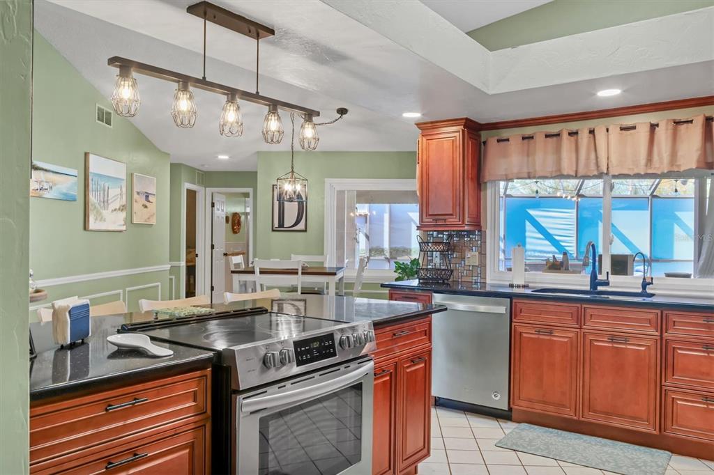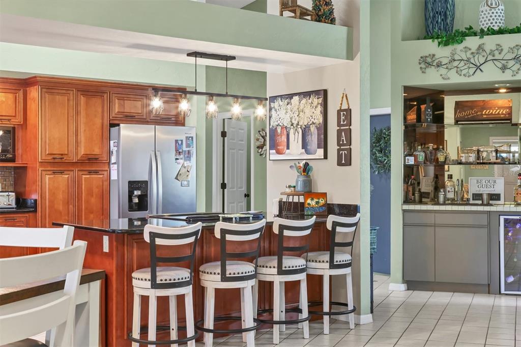 Vaulted Ceiling(s)Ceiling Fan(s) High Ceilings Stone Counters Kitchen/Family Room ComboExterior Features: