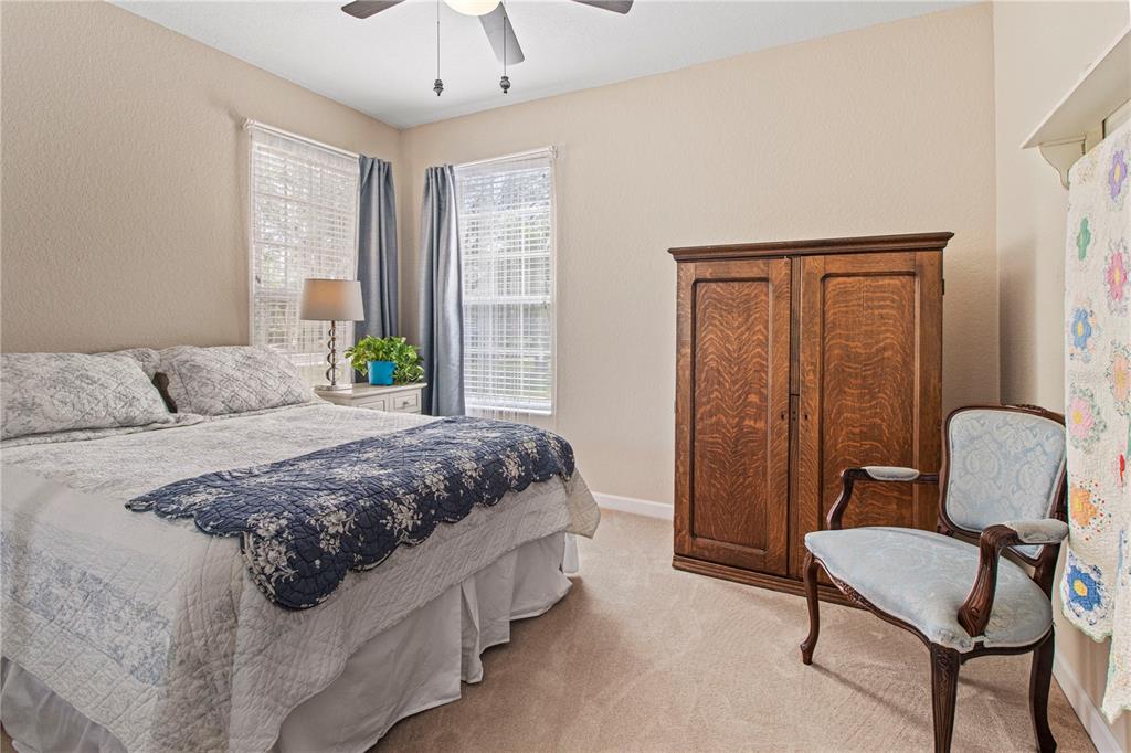 Walk-In Closet(s)Ceiling Fan(s) High Ceilings Thermostat Open Floorplan Window Treatments Solid Surface Counters Solid Wood Cabinets Pest Guard SystemExterior Features: