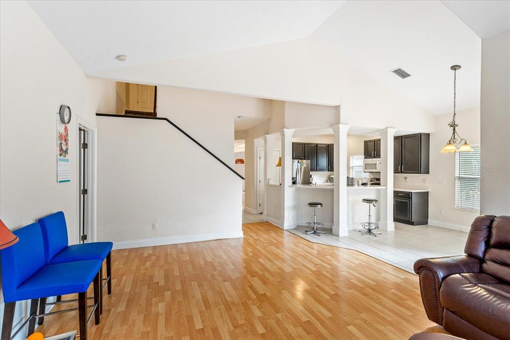 Walk-In Closet(s)Ceiling Fan(s) High Ceilings Living Room/Dining Room Combo Primary Bedroom Main Floor Kitchen/Family Room ComboExterior Features: