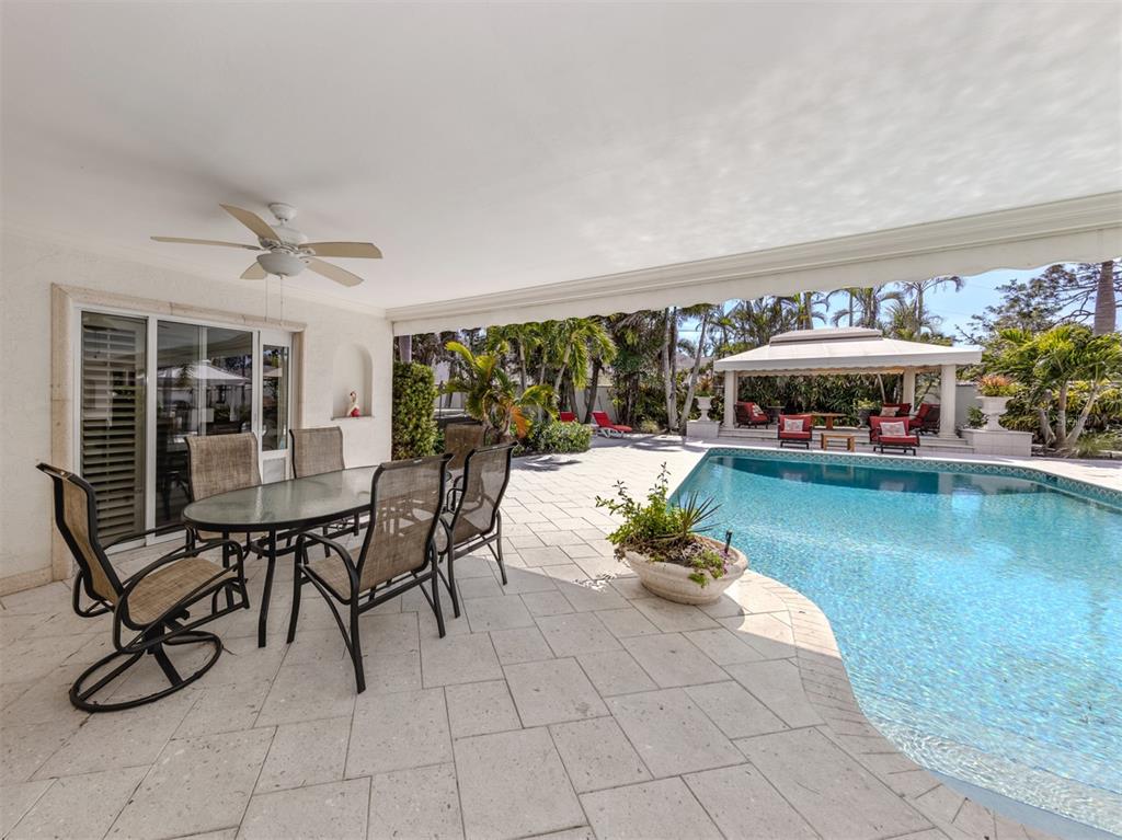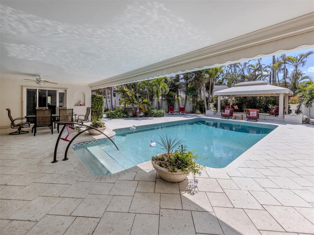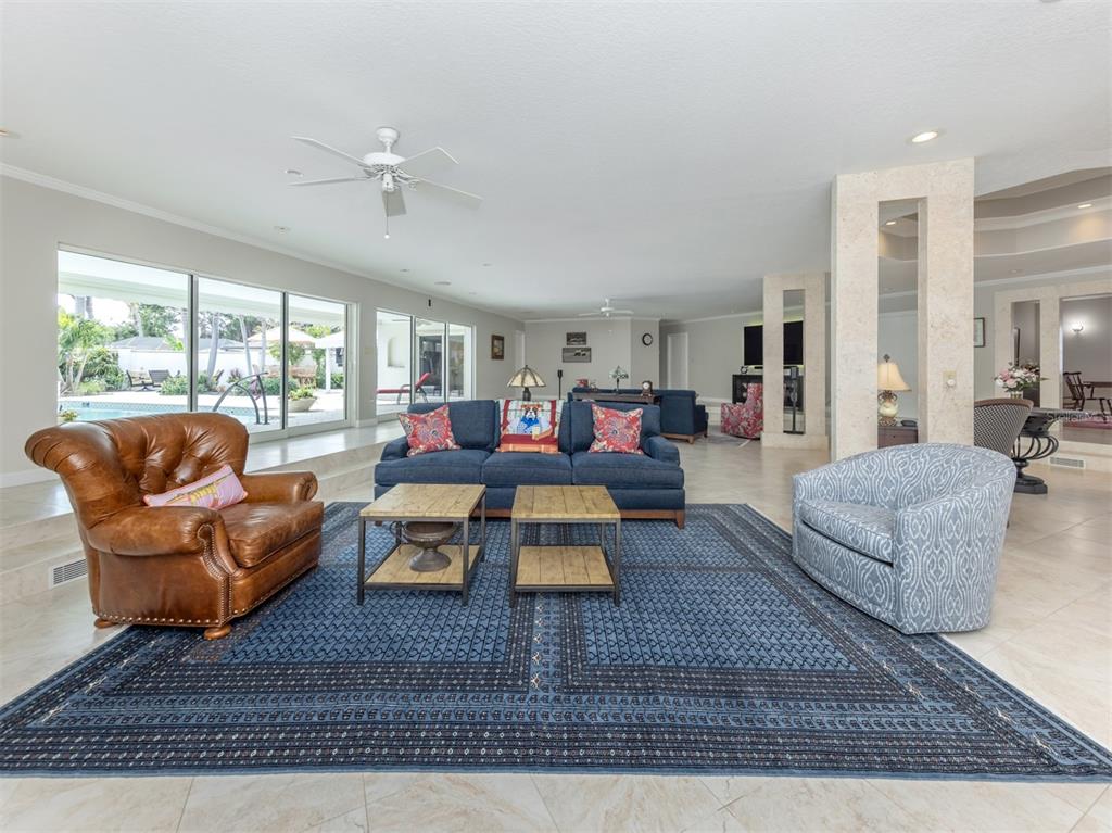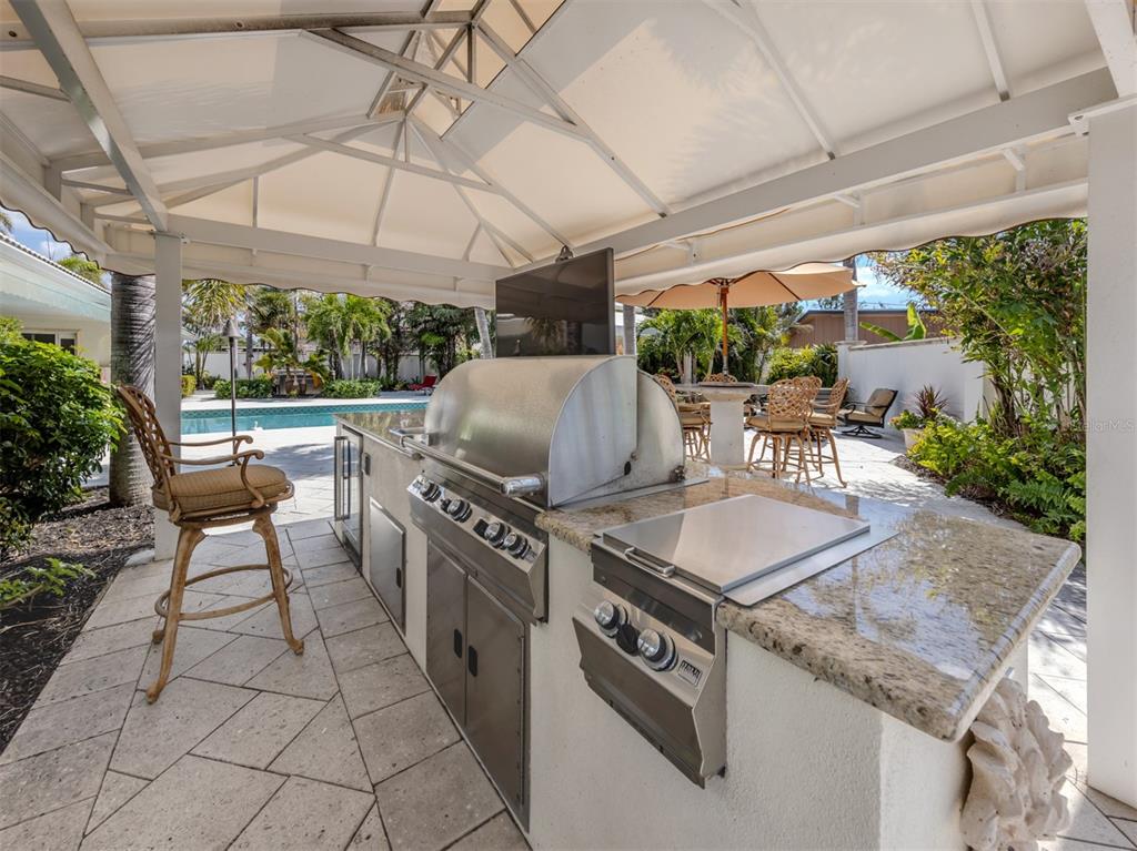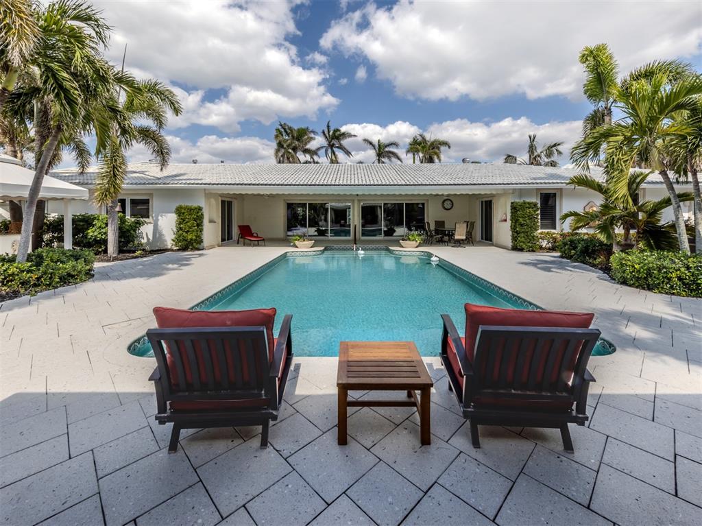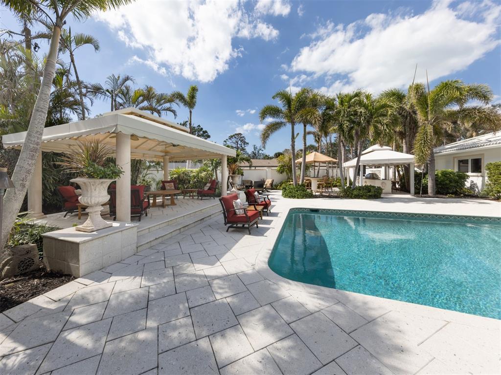 Experience the ultimate in luxury and modern convenience with this meticulously upgraded venice island estate. spanning 4,399 square feet, this stunning home blends timeless elegance with contemporary enhancements, offering an unparalleled living experience just minutes from the beach and vibrant downtown venice. step inside to a great room, where soaring 12-foot double octagon tray ceilings, travertine pillars, and an entire wall of sliding glass doors create an impressive yet inviting space. every room has been tastefully updated, with most refreshed in neutral tones to complement the exquisite crown molding, plantation shutters, and newer porcelain tile flooring. the chef’s kitchen is a masterpiece, featuring newly restored solid wood cabinetry and state-of-the-art appliances, including sub-zero refrigerator/freezer and sub-zero combination wine cooler and refrigerator drawers, a brand-new bosch gas cooktop and a kitchenaid electric wall oven with microwave and air fryer. a spacious center island, built-in hutch, and abundant storage completes this culinary haven. designed for privacy and comfort, the split-bedroom floor plan includes a luxurious primary suite with a custom walk-in closet and direct lanai access. the spa-like ensuite boasts a step-in shower with listello accents, a jacuzzi tub with showerhead features, and convenient cabana bath access. the additional bedrooms each offer ensuite or bath access, with one leading to a private outdoor patio. the dedicated office features custom solid teakwood cabinetry, dual built-in desks, and recessed lighting, creating an ideal workspace. the outdoor area has been transformed into a luxurious oasis. the expansive lanai features a newly converted saltwater pool (2023) with a haywood high-efficiency pump and filter, a fully renovated spa, and a gas fire pit area. the outdoor kitchen is equipped with a newly installed 65-inch samsung weatherproof television, perfect for entertaining. the entire landscaping has been redesigned (2024), and a completely replaced irrigation system (2024) ensures lush greenery year-round. additional enhancements include an improved generac emergency generator (2023), google security lights and cameras (2023), and an oversized garage with an undercover workshop area. a circular driveway, portico, and ample parking complete this extraordinary home. embrace the venice lifestyle in this beautifully unique updated residence, where luxury meets coastal charm, all just moments from world-class beaches, dining, shopping, and entertainment. there is no other home like this on venice island.701 LAGUNA, VENICE, FL 34285