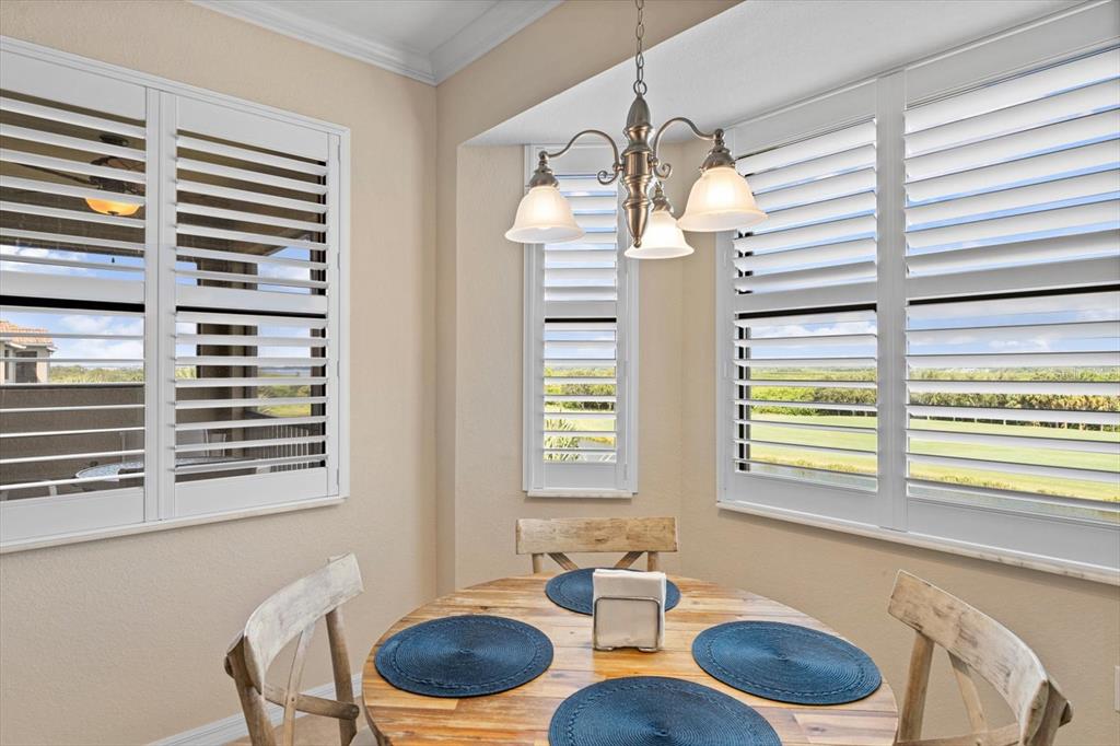 This top floor "penthouse" corner and end condo (no residence to the left or above you) is turnkey furnished and ready for immediate occupancy! why would you settle for anything but spectacular? this favored "brookside" floorplan has an amazing view of the manatee river, surrounding preserves, lake, and the 8th hole of the sanctuary golf course. a remarkable location, this condo has double glass sliders and multiple windows that capture that terrific view during the day and into the evening. designed on an open concept and awash with natural light, this conversational floorplan is great for entertaining guests. the kitchen has plenty of cabinets for storage, a large countertop with breakfast bar, stainless steel appliances, and a pantry too. tile on the diagonal extends through the main areas of the residence and the crown molding and plantation shutters add a touch of elegance. the owner's retreat is cozy and comfortable and features two large closets and an en-suite bath. this home also includes a large storage unit--a perfect place to store golf clubs, and bikes and beach chairs. this maintenance free condo just needs you! the amenities at river strand include access to a 27 hole championship golf course, clubhouse with restaurant, a tiki bar with food and beverage service, nine har-tru tennis courts, eight pickleball courts, two fitness centers, two resort style pools, and 6 satellite pools. with the developing heritage harbour marketplace, you will have access to a variety of shops and restaurants right around the corner. close to i-75, everything is within reach...lakewood ranch, sarasota and st. petersburg too. what are your waiting for? schedule your private showing today!7019 RIV HAMMOCK #401, BRADENTON, FL 34212