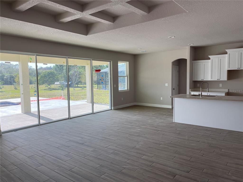 Finished brand new construction on 1 acre in desirable gated community! cul de sac lot! grand great room layout with coffered ceilings and double sliding doors overlooking the huge screened patio and pool area! perfect floor plan for the growing family! primary has it's own wing then each 2 bdrm/bath grouping has it's own wing! perfect set up for optional in-law arrangement! spacious dining room also boasts coffered ceilings! open island kitchen offers spacious nook, white cabinets, quartz countertops and a big pantry! tile plank flooring throughout with carpeted bedrooms. 5th bdrm is perfect for an office, den or gym ! attractive paver driveway and spacious lot! come see this one today!7027 PRESERVE POINTE, MERRITT ISLAND, FL 32953