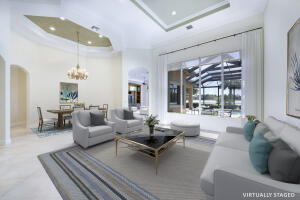 Premier golf membership available! spectacular estate home offering many upgrades with an unbelievably serene long lake view. this home offers 5br plus den and 4.5 baths. spacious kitchen has been upgraded with all new s/s appliances (2023) to include range hood and gas stove. large walk-in pantry with custom shelving. open dining room with separate butler's pantry for easy prep and additional storage. expansive living room area greets you upon entering displaying phenomenal water views. elegant first floor primary bath has been redesigned to include new (2023) cabinets and countertops, his/her sinks and closet for extra storage. 2 a/c's 2023, 3rd ac unit 2021. pool heater and filter 2023. newly screened lanai . new interior paint (2023) and exterior paint (2025).7030 ISLA VISTA, WEST PALM BEACH, FL 33412
