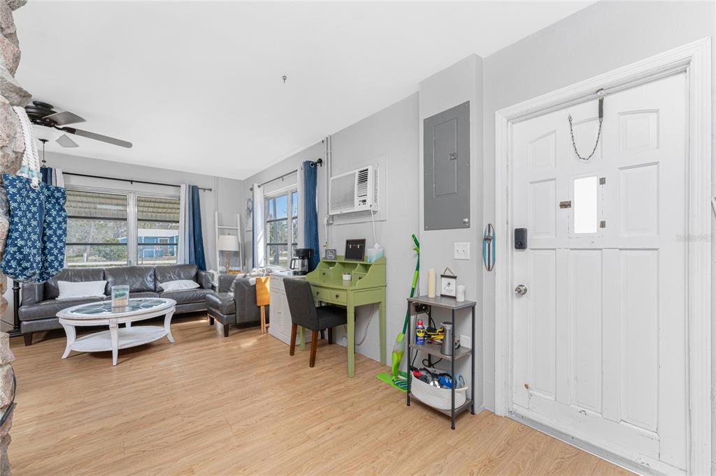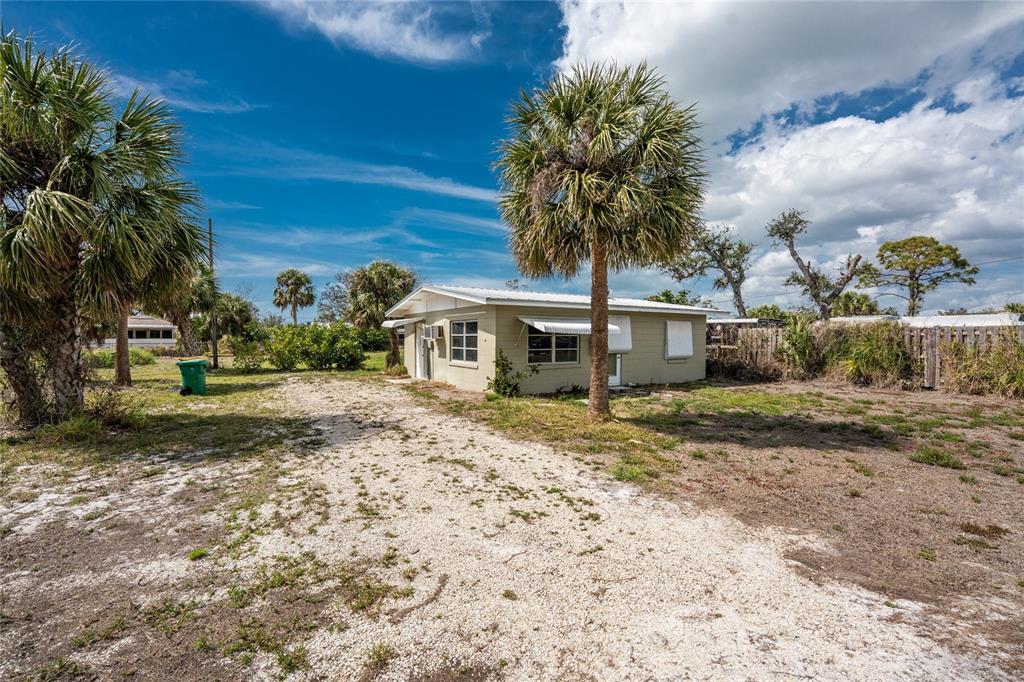 Can you believe this price? cute "old florida" style cottage in a tucked away spot just off placida road! no deed restrictions or mandatory hoa's! updated vinyl flooring throughout. kitchen comes equipped with a frigidaire refrig and a ge smooth top stove. stylish "barn door" to bedroom #1, which has a ceiling fan and wall closet. bedroom #2 has the same. each bedroom has a mini spit ac, that was installed after 2022. the bathroom is nicely updated with a roman shower, new toilet, vanity w/granite top and linen closet. metal roof was new in 2016, so you don't have to worry that for a long time! electric service was upgraded to a 200 amp system, with a square d electrical panel. tankless water heater so hot water on demand! lots owned by same seller on either side of the cottage are also available - see mls #d6141087, 7030 duke st. and mls # d6141085, 7034 duke st. also house at 2191 williamsburg way, mls #d6141077! own your own little family compound! this is a great location, just across the street from the palm harbor marina and close to either boca grande or englewood beaches, public boat ramps, great fishing, shopping, restaurants and so much more.7032 DUKE, ENGLEWOOD, FL 34224