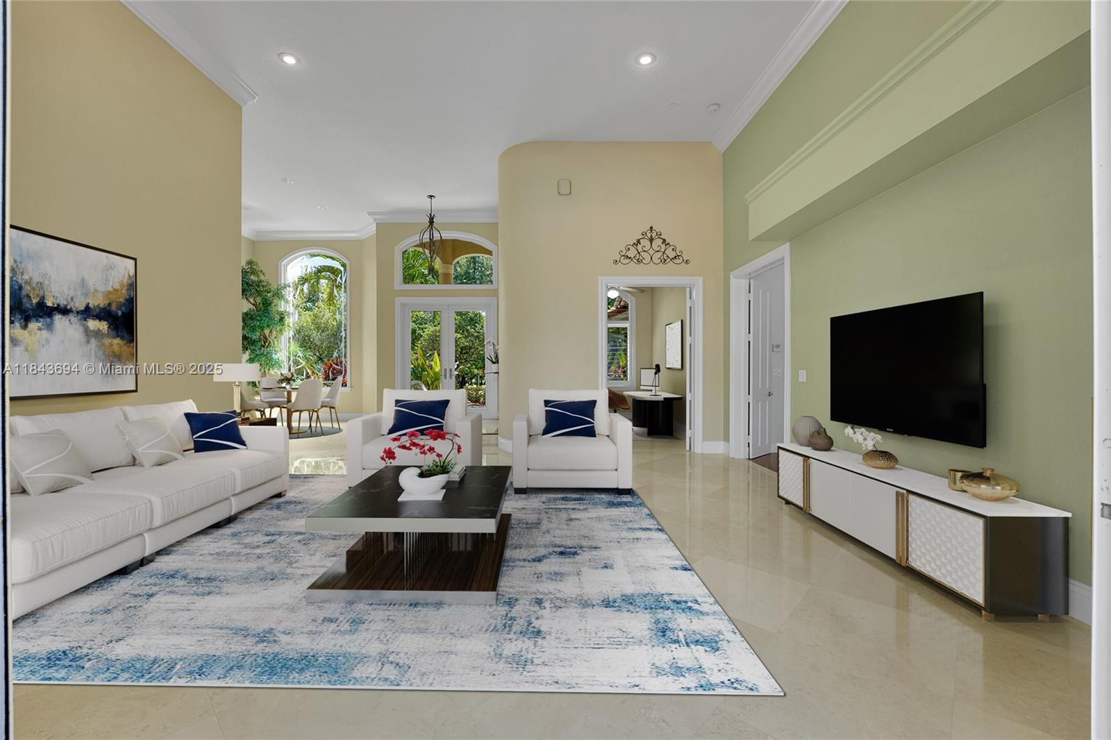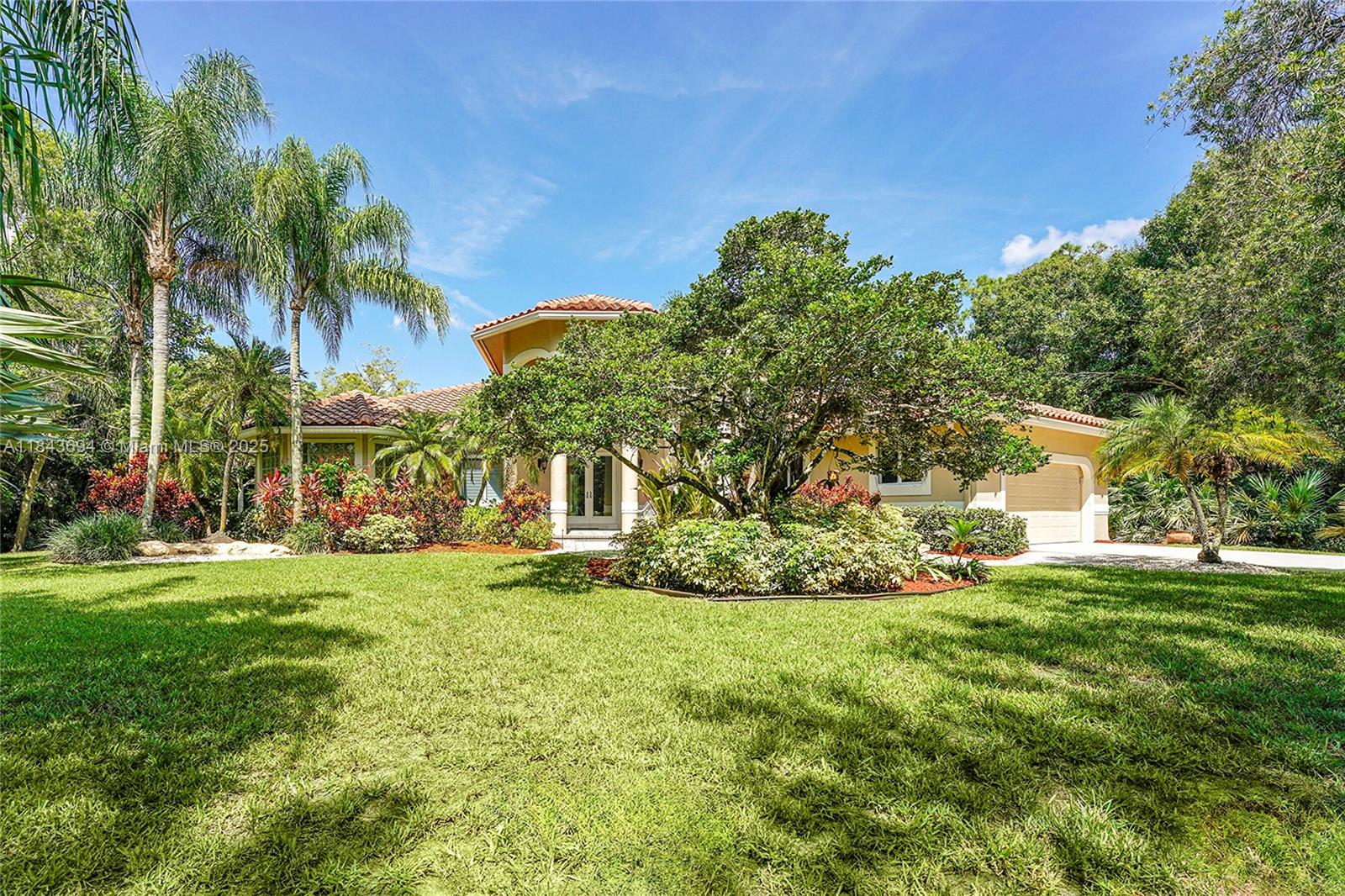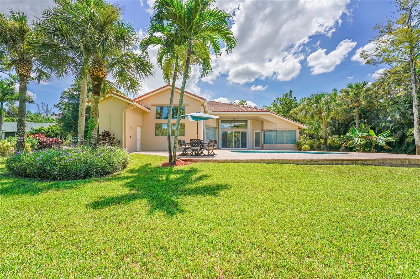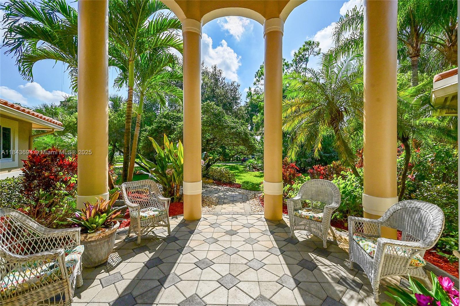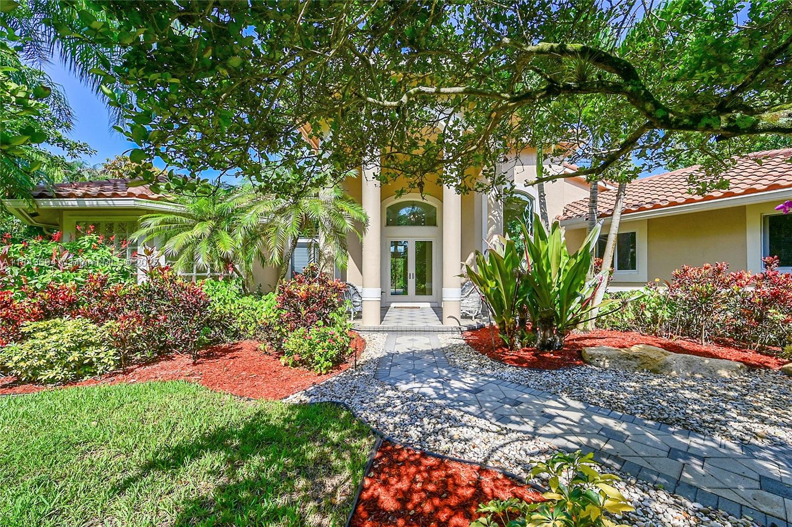This 4/3 estate, office, 1.09-acre lot in pine tree estates. no hoa, fruit trees and native plants. 14.5 ft ceilings, wood crown moulding and 6" baseboards. 24” saturnia marble floor tiles, master and one br feature 3/4' solid wood flooring. the jack-and-jill bathroom with wood-like porcelain tile. gourmet kitchen with 42” solid wood cabinetry, subzero fridge and a fulgor milano double convection oven, bright nook framed, butted glass windows and custom plantation shutters, brick paver patio, and free form heated pool. 2 wells for indoor (new well) & outdoor, water purification system, hurricane doors and windows, fenced backyard, pool baby fence, pre-wiring for a generator. two-car garage has an epoxy floor. dual ac. new road to be completed soon, approved by parkland!7037 NW 62ND TER, PARKLAND, FL 33067