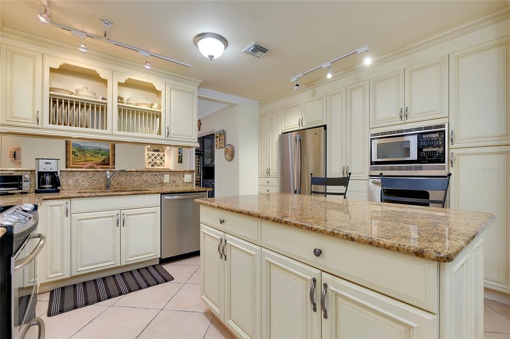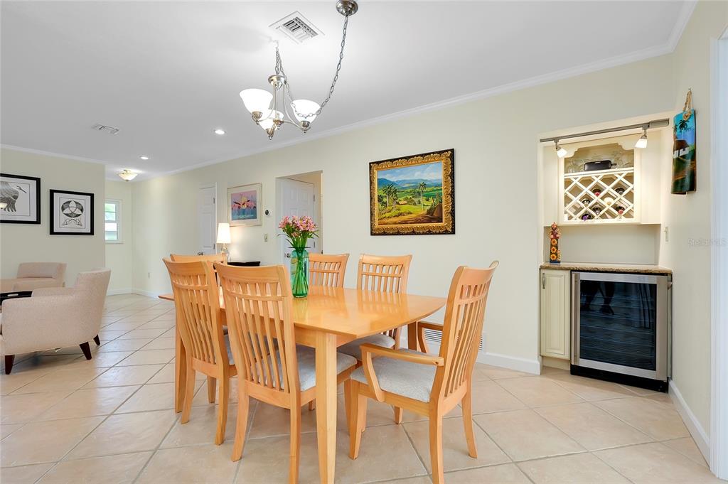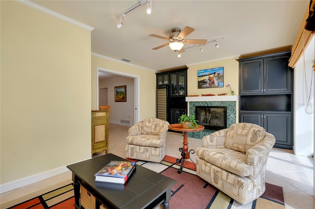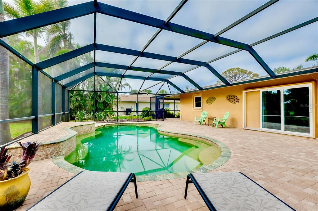 Pristine venice island pool home! welcome to this spectacular residence located on the north end of venice island, where coastal charm meets modern style. set on a 0.3 acre lot, this 3 bedroom, 2 bathroom, 2 car garage home presents remarkable curb appeal with its impeccably kept yard and pavered driveway. step inside and be greeted to a warm and beautifully lit l-shaped living and dining area from large front windows and recessed lighting. the dining room is perfect for hosting dinner parties or intimate gatherings with its dry bar, complete with a built-in wine rack display and wine refrigerator. in the heart of the home, find the gourmet kitchen, fully equipped with stainless steel appliances, granite countertops and backsplash, a spacious island with breakfast bar seating, and track lighting. above the sink, an open shelving detail adds a touch of charm, ideal for displaying select kitchenware. the split bedroom floor plan provides ultimate privacy for the primary bedroom. positioned off of the kitchen, the primary is a restful retreat with a walk-in closet and en suite bathroom featuring a walk-in shower, medicine cabinet, and vanity storage. the two additional bedrooms, both with built-in closets, share the second bathroom that includes a garden tub with shower, medicine cabinet, storage, and linen closet. at the back of the home, the family room offers stunning views of the pool and direct access to the outdoor oasis. the family room's focal point is a striking fireplace, surrounded by built-in shelving and cabinetry. a second wine refrigerator makes this a great spot for entertaining, whether it's mixing drinks or enjoying a cozy night by the fire. step outside to a vast screened-in pool area, where extensive decking allows for multiple lounging and sunbathing areas, while the pool features bench seating, lighting, and perimeter coping. adjacent to the pool, a covered outdoor dining and entertainment area creates a model setting for a cup of coffee or evening meals. the private backyard has abundant greenspace and is enclosed by natural florida landscaping, rendering a tranquil atmosphere. additional home highlights include: tile flooring throughout, crown molding, recessed and track lighting, built-in display shelving, office space with cabinetry and storage, indoor laundry room with utility sink and storage, and a hidden workshop/storage space at the back of the home. home is located less than 0.5 miles from venice beach and less than 1 mile from historic downtown venice. home is in close proximity to shops, restaurants, venice theatre, venice community center, venice public library, venice hospital, golf courses, parks, legacy trail, venice art center, venice performing arts center, and many other appealing destinations. this venice island gem is the perfect combination of location, style, and functionality. don't miss this opportunity to experience the incredible florida lifestyle!Single Family House 3 bedrooms - VENICE GULF VIEW SEC OF for Sale