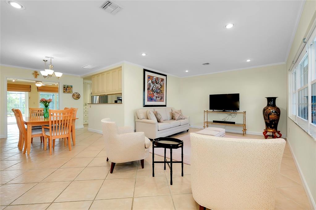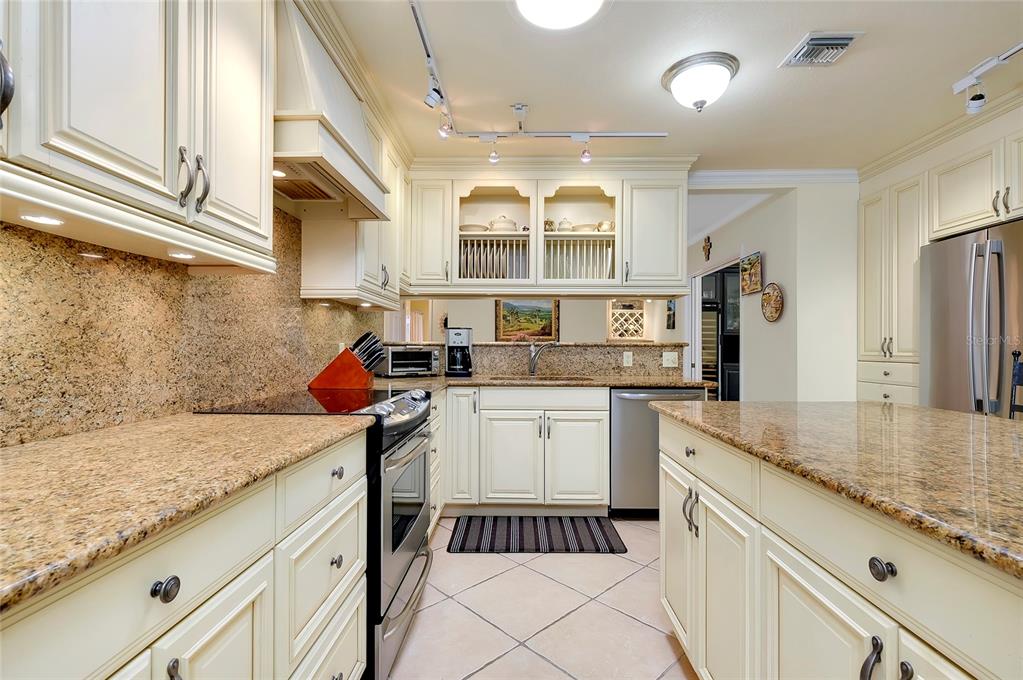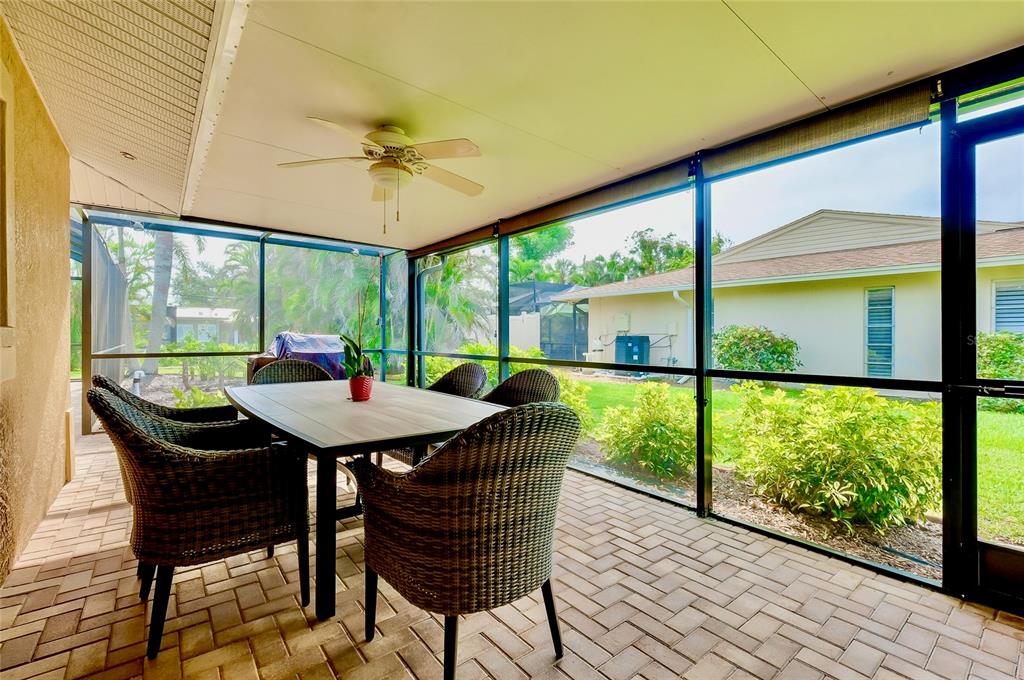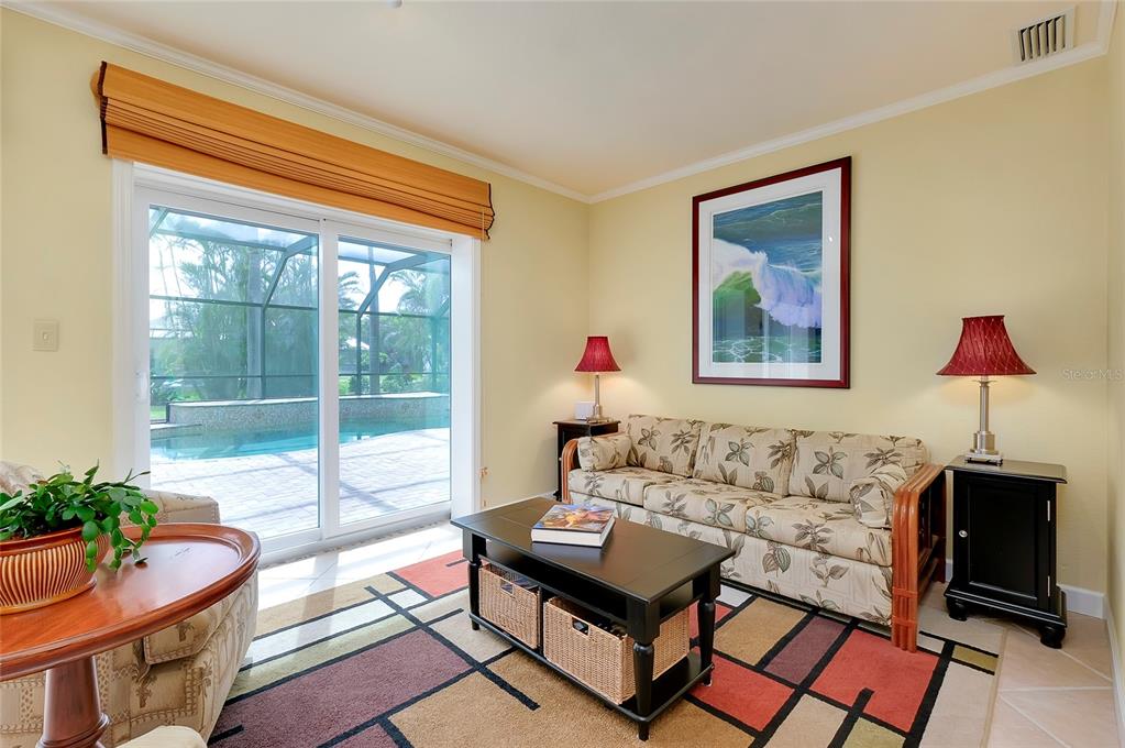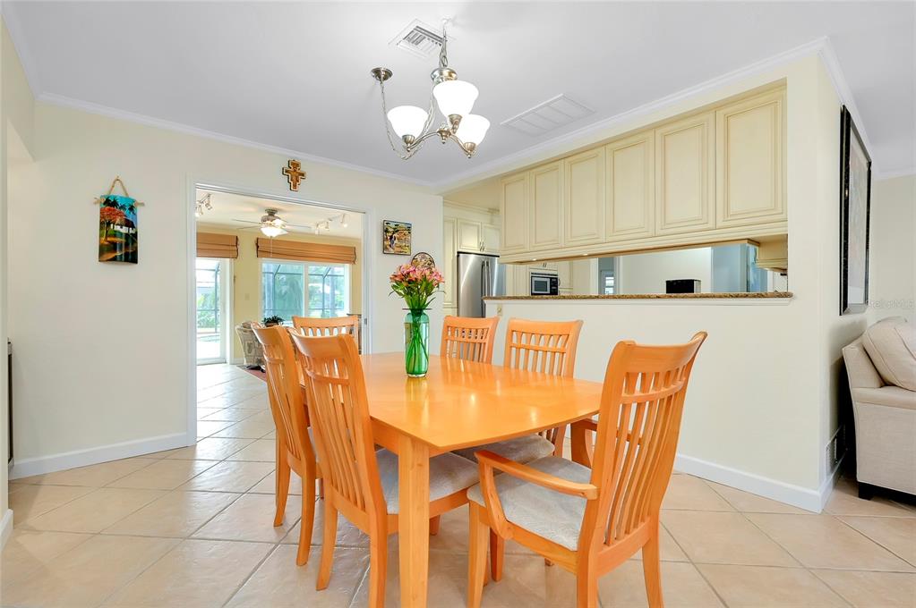 Pristine venice island pool home! welcome to this spectacular residence located on the north end of venice island, where coastal charm meets modern style. set on a 0.3 acre lot, this 3 bedroom, 2 bathroom, 2 car garage home presents remarkable curb appeal with its impeccably kept yard and pavered driveway. step inside and be greeted to a warm and beautifully lit l-shaped living and dining area from large front windows and recessed lighting. the dining room is perfect for hosting dinner parties or intimate gatherings with its dry bar, complete with a built-in wine rack display and wine refrigerator. in the heart of the home, find the gourmet kitchen, fully equipped with stainless steel appliances, granite countertops and backsplash, a spacious island with breakfast bar seating, and track lighting. above the sink, an open shelving detail adds a touch of charm, ideal for displaying select kitchenware. the split bedroom floor plan provides ultimate privacy for the primary bedroom. positioned off of the kitchen, the primary is a restful retreat with a walk-in closet and en suite bathroom featuring a walk-in shower, medicine cabinet, and vanity storage. the two additional bedrooms, both with built-in closets, share the second bathroom that includes a garden tub with shower, medicine cabinet, storage, and linen closet. at the back of the home, the family room offers stunning views of the pool and direct access to the outdoor oasis. the family room's focal point is a striking fireplace, surrounded by built-in shelving and cabinetry. a second wine refrigerator makes this a great spot for entertaining, whether it's mixing drinks or enjoying a cozy night by the fire. step outside to a vast screened-in pool area, where extensive decking allows for multiple lounging and sunbathing areas, while the pool features bench seating, lighting, and perimeter coping. adjacent to the pool, a covered outdoor dining and entertainment area creates a model setting for a cup of coffee or evening meals. the private backyard has abundant greenspace and is enclosed by natural florida landscaping, rendering a tranquil atmosphere. additional home highlights include: tile flooring throughout, crown molding, recessed and track lighting, built-in display shelving, office space with cabinetry and storage, indoor laundry room with utility sink and storage, and a hidden workshop/storage space at the back of the home. home is located less than 0.5 miles from venice beach and less than 1 mile from historic downtown venice. home is in close proximity to shops, restaurants, venice theatre, venice community center, venice public library, venice hospital, golf courses, parks, legacy trail, venice art center, venice performing arts center, and many other appealing destinations. this venice island gem is the perfect combination of location, style, and functionality. don't miss this opportunity to experience the incredible florida lifestyle!Single Family House 3 bedrooms - VENICE GULF VIEW SEC OF for Sale