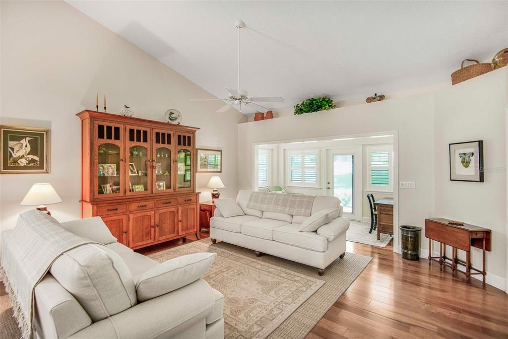 Walk-In Closet(s)Ceiling Fan(s) High Ceilings Living Room/Dining Room Combo Open Floorplan Window Treatments Solid Surface Counters Solid Wood CabinetsExterior Features: