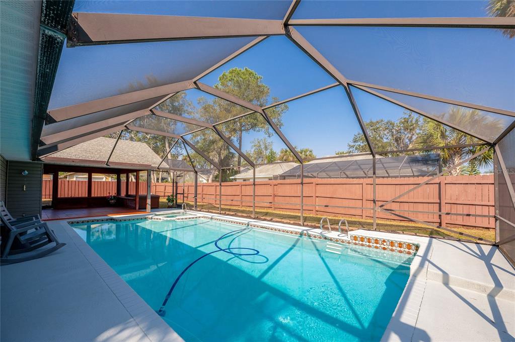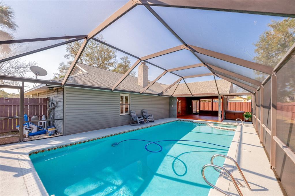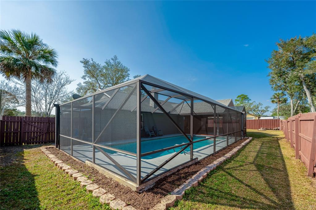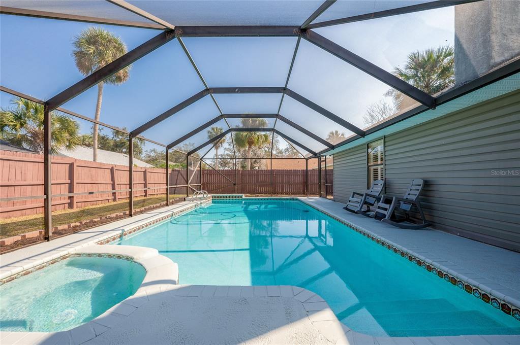 Pool home in port orange! welcome to this beautiful 3 bedroom, 2 bathroom pool home nestled in the peaceful lone oaks community. new roof with acceptable offer. the split floor plan and open concept layout offers a spacious and inviting design, perfect for comfortable living and entertaining, with solid surface flooring throughout for ease of care. the large living room features vaulted ceilings and skylights that bathe the room in natural sunlight. the cozy wood burning fireplace provides an inviting space for relaxation and gatherings. the open floor plan seamlessly connects the living room to the kitchen, where you'll find crisp white cabinetry, granite countertops and a full stainless steel appliance package. generous primary bedroom offering a walk-in closet and full ensuite with double sink vanity, relaxing garden tub and walk-in shower... continued. two additional bedrooms both with walk-in closets offer ample space for family, guests or a home office. step outside to the spacious patio overlooking the sparkling screened pool, inviting you to cool off and relax during hot summer days and the hot tub is the perfect place to unwind after a long day of work or play. the fully fenced backyard ensures privacy and security, making it ideal for pets or play. situated in the heart of port orange, this home is just minutes from the intracoastal, pristine beaches, and a vibrant array of dining, shopping and entertainment options. enjoy the best of florida living with everything you need right at your doorstep. don't miss your opportunity to own this exceptional pool home. all information recorded in the mls is intended to be accurate but cannot be guaranteed.709 LONE OAK, PORT ORANGE, FL 32127