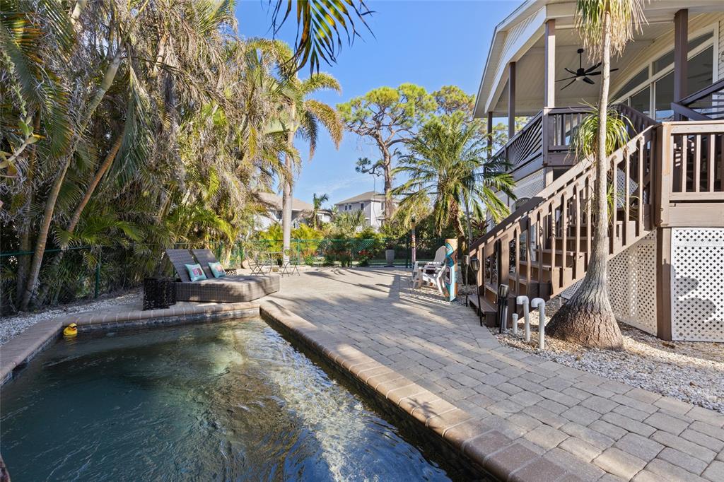 Price improvement!!! let's change your address! welcome to pines on the bay-a quaint gated community nestled in the quiet town of englewood with water access to lemon bay and the gulf. bring your water toys- the community boat ramp will let you get your boat/jet skis/kayaks or paddleboards out to view the gulf sunsets. less than 3 miles to englewood beach on manasota key gorgeous 3- bedroom key west style pool home has had many recent updates allowing you more time to enjoy the florida sunshine. enjoy the large double lot covering just at half acre -two parcels for your convenience to sell or build an additional home- or just keep for the privacy. new metal roof 2022 -luxury vinyl tile throughout main level living -kitchen-2nd bedroom/bath/laundry 2023- decking/railings painted 2025-hurricane insulated garage doors 2024-new h20 tank 2025-new pool heater/pumps/lights/jets/drains/blower 2025- pool warms up quickly to spa temperatures allowing use year- round. the main level has 2-bedroom split plan with an open concept kitchen/living room. open up the sliders to embrace the air on the covered deck area with views of ainger creek. this will surely relax your soul. the indoor laundry has large storage closet as well as a utility sink. the large primary ensuite has a sliding door leading out to the deck letting in lots of natural light. the primary bath has dual showerheads and dual sinks with granite countertops. 3rd floor "crow's nest" bedroom is ideal for guest room/office area and has new carpet. this home is made for entertaining! have your friends over to watch the game in the "ruckus room" located on the ground level-a new mini-split with ac/heat will keep you comfortable all year -a one-of- a- kind bar top made from match book set curly maple live edge makes this area extra special- you have to see it! the epoxy floor on the ground level completes the setting of this fantastic area. and then there is the "world's largest bathroom" offering a half bath in the right garage area- making it a plus when coming from pool or doing outdoor activities. the workshop has a new 50-amp sub panel allowing you to get creative with crafts or projects- there are two garage doors on the right side of house allowing easy access to front or back yard area. if you want the dividing wall can easily be removed to allow straight through access. just a short ride away to boca grande with world class fishing and boating. situated near numerous golf courses- local markets and shopping. don't miss out on this awesome property-properties in pines on the bay don't come up often!7092 BAYPINE, ENGLEWOOD, FL 34224
