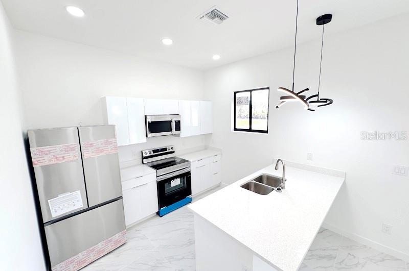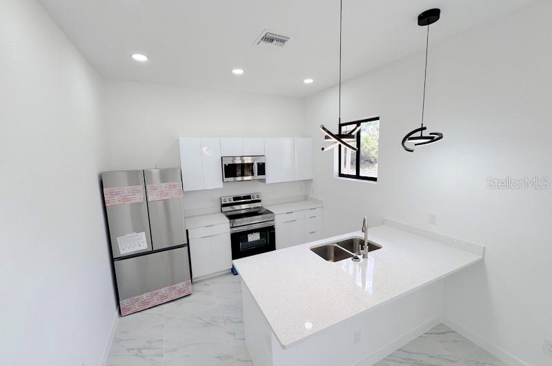 This stunning, newly constructed home on a spacious corner lot in lehigh acres offers 2339 sq. ft. of modern living space, perfect for both living and renting out! the open floor plan features elegant tile flooring, upgraded lighting, and a gourmet kitchen with a striking quartz island, high-end appliances, and custom cabinetry. a convenient separate laundry room and fully finished, painted garage add extra value. the lush, green backyard provides a private retreat. located in a highly sought-after area with easy access to everything, this immaculate home is move-in ready and sure to impress!710 EISENHOWER, LEHIGH ACRES, FL 33974