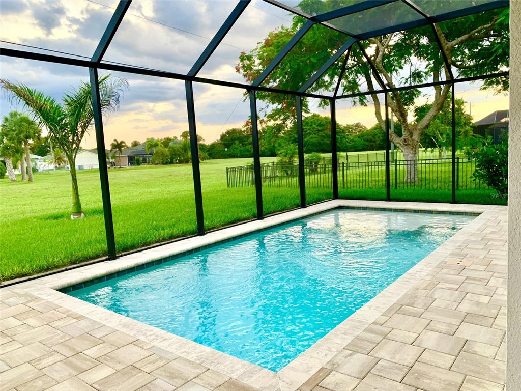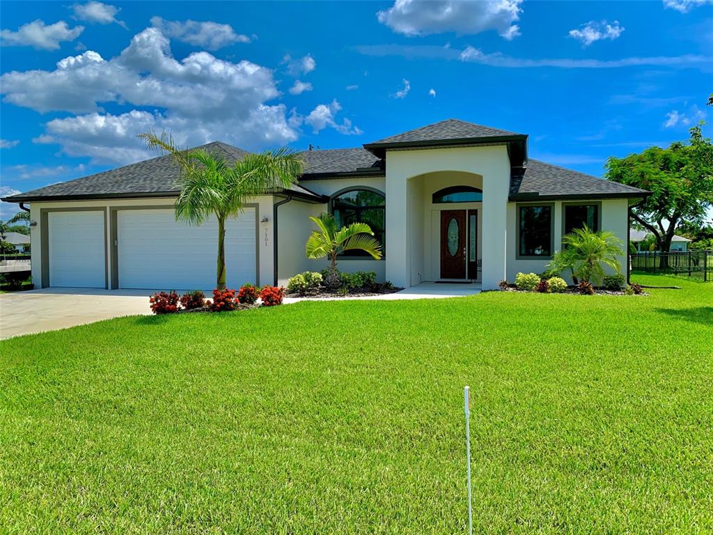 No flood insurance required, located in zone x. no cdd fees. association fee only $24 per month! experience paradise with this stunning custom built 3-bedroom, 2-bathroom split pool home, completed in august 2021. boasting elegant high ceilings in both the foyer and office. this home features an expansive 3-car garage with epoxy coating and laundry tub. extra-large lanai for entertaining or enjoying the serene long-distance views of an expansive greenbelt. it is also pre-plumbed and pre-wired to accommodate a future outdoor kitchen and high mount tv. the contemporary kitchen showcases stainless steel appliances, modern industrial-style lighting and a pull-out trash and recycle drawer; complemented by rich granite countertops and beautiful quality wood light gray cabinets. inside, high-impact windows and sliders for efficiency and quietness. the great room offers double tray ceiling and large hunter ceiling fan. master bedroom suite offers tray ceiling and spacious closet with custom wood slat shelves. elegant master bath has custom stone floor shower with your choice of three separate shower heads, one being a ceiling-mounted rainfall head. the 12x24 pool sports the sought after upgrade of a sun deck for relaxed pool time. multi-color changing led lighting adds ambiance and a touch of luxury as well. the laundry room comes equipped with matching cabinets and lg platinum washer and dryer. custom features like bullnose drywall corners, recessed lighting and quality ceiling fans enhance the home’s appeal. two of the three bedrooms offer sliding doors with beautiful views and direct access to the lanai and tranquil pool waters. enjoy nice landscaping with royal palms, mango tree and large clusia for a lush green private setting. don’t miss this opportunity to own a home that offers privacy views, modern amenities and a high grade of quality.7101 N PLUM TREE, PUNTA GORDA, FL 33955