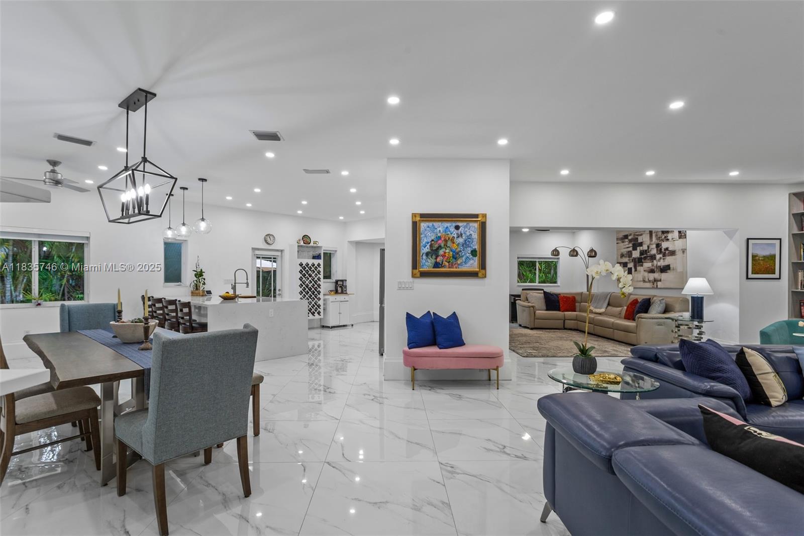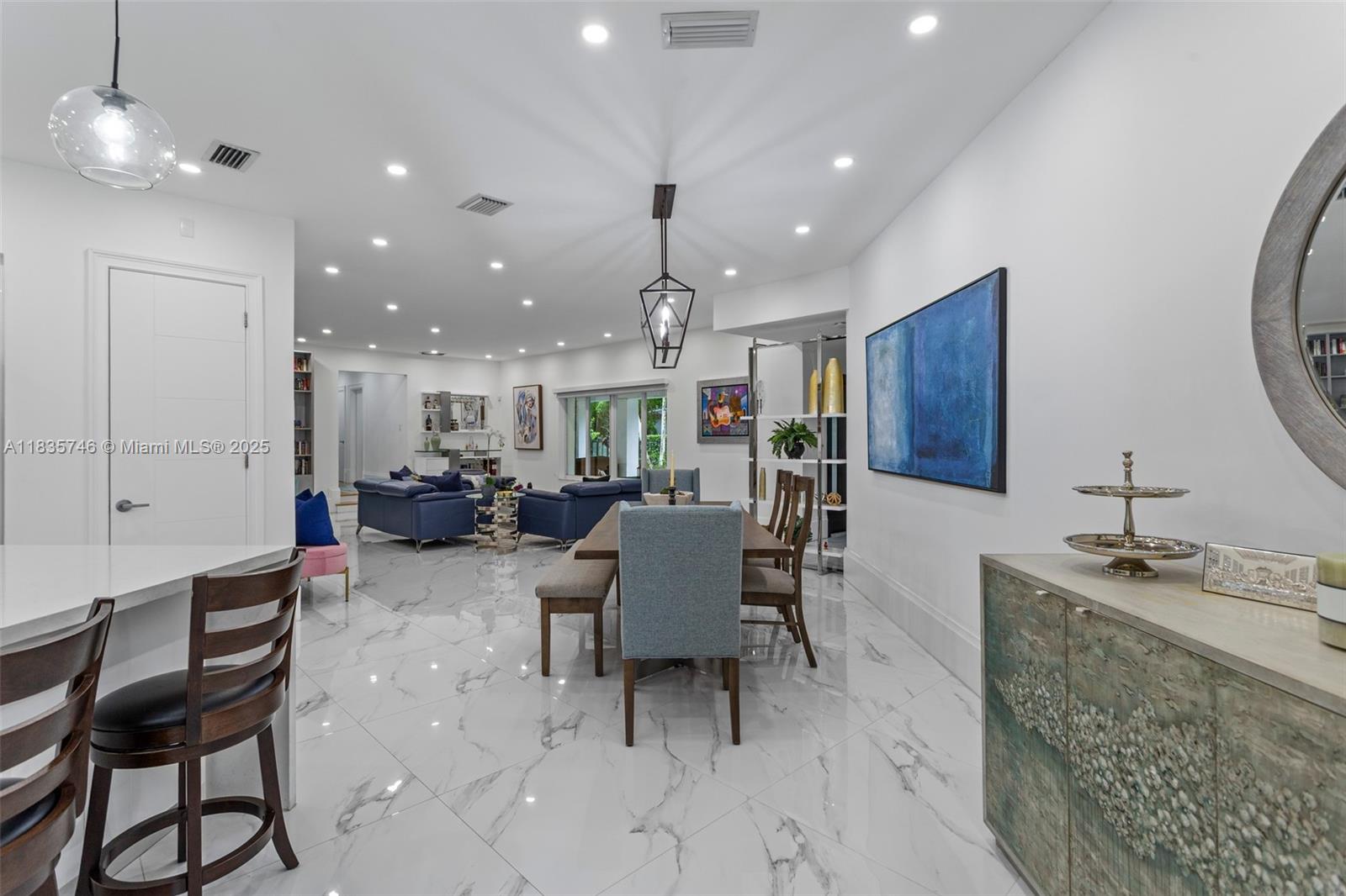 Beautifully renovated south gables home with large entertaining spaces on a spacious 12,700 sf corner lot! this home blends modern style with coral gables charm. renovated in 2021, it features high 9+ ft ceilings in the main living spaces and a spacious open floor plan perfect for entertaining. enjoy a sleek kitchen with peninsula, updated baths, impact windows/doors, and polished original wood floors in the bedrooms. the primary suite offers two large closets + a modernized bathrooms. outside, relax in the saltwater pool with heated spa, summer kitchen, and lush landscaping. additional ftrs: 2010 roof, pvc plumbing, whole-house generator, completely fenced yard with motorized gates. close to all the top schools and across the street from $10m+ estates!711 SUNSET RD, CORAL GABLES, FL 33143