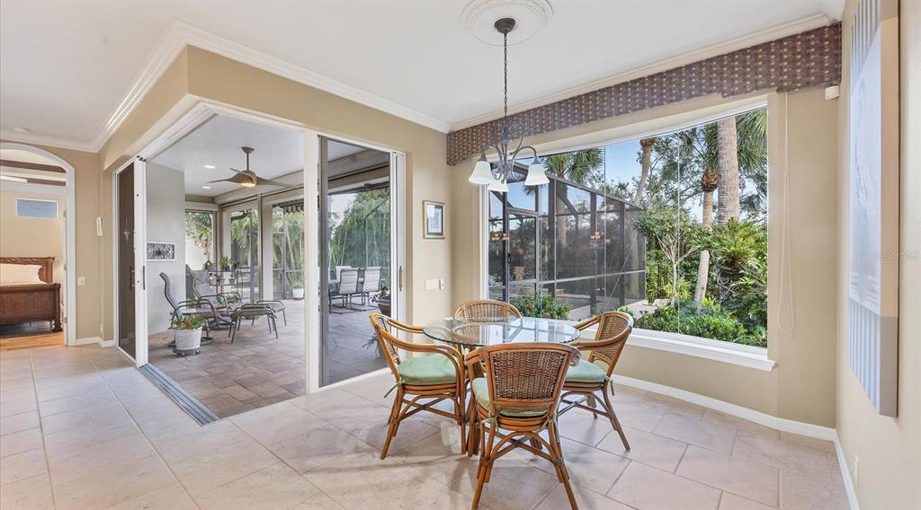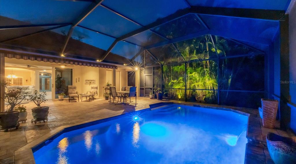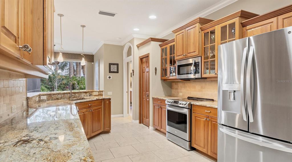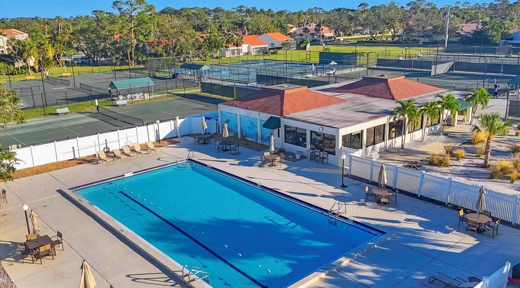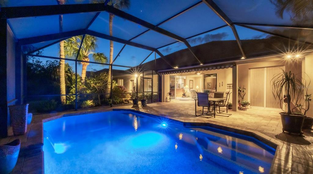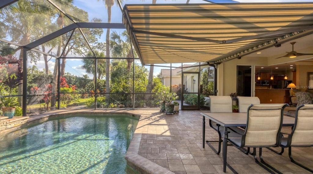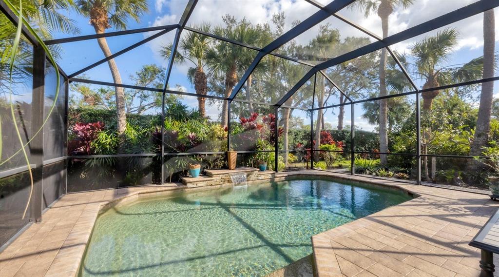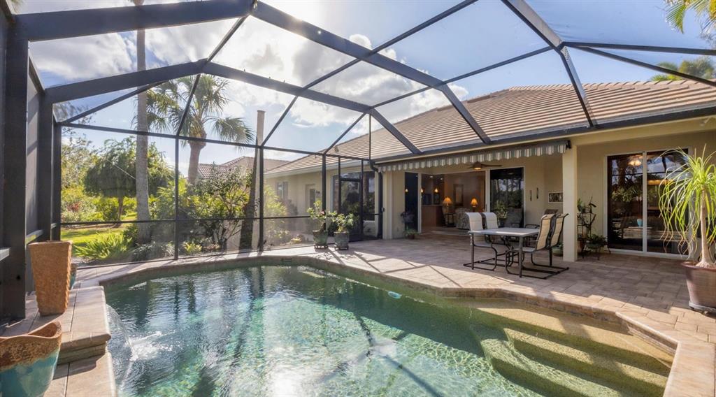 Spotless, tranquil and secure in prime location! beautifully updated, hurricane-ready 3-bedroom, 2-bath + den pool home in the highly sought-after gated community of treymore in palm aire. perfectly situated just 20 minutes from everything sarasota and bradenton have to offer, this home combines elegance, convenience, and peace of mind. a gated entrance, winding streets lined with mature trees, and lush tropical landscaping welcome you home. step inside to an open floor plan that boasts high ceilings, natural light, and disappearing corner sliders that seamlessly blend indoor and outdoor living. the centerpiece of the home is a stunning private lanai, complete with an awning, a serene heated pool, and ample space for relaxation or entertaining. the spacious kitchen is a chef’s delight featuring custom wood cabinetry with elegant glass-fronts, stainless appliances, river valley granite countertops and breakfast bar, all overlooking the tranquil backyard through a captivating aquarium window. for peace of mind, this home features 2023 tile roof, whole-house generator, motorized hurricane screens in lanai and front door, and lexan shutters for the rest. located within 6 miles of sarasota international airport and university town center which includes nathan benderson park, motesea aquarium, whole foods, trader joe’s, and the mall - an unparalleled shopping, dining, and entertainment destination. you'll also be just 9 miles from the vibrant arts and culture of downtown sarasota, downtown bradenton, and award-winning beaches. a fabulous florida lifestyle! 2024 water heater and whole-house water filter, 2023 exterior paint, 2017 ac system, 2016 pool heat pump, large interior storage closet, 3-car garage, above flood plain: zone x.7115 TREYMORE, SARASOTA, FL 34243