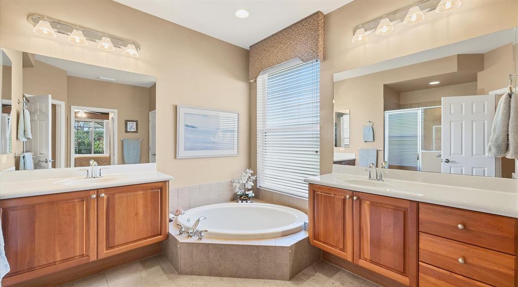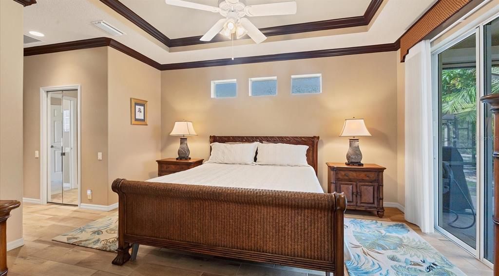 Split Bedroom Walk-In Closet(s)Ceiling Fan(s) High Ceilings Stone Counters Window Treatments Solid Wood CabinetsCrown Molding Tray Ceiling(s)Exterior Features: