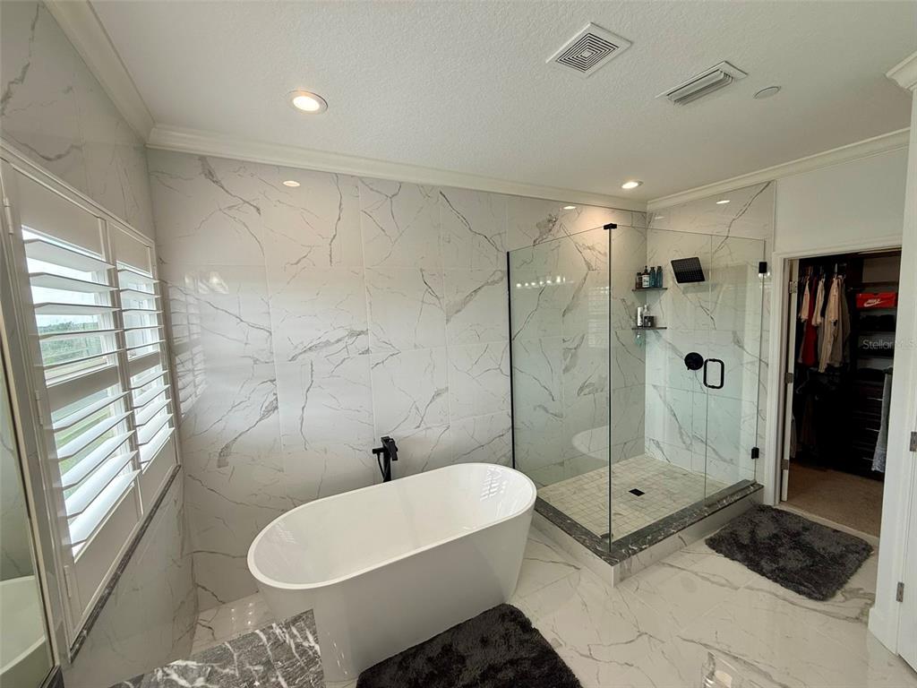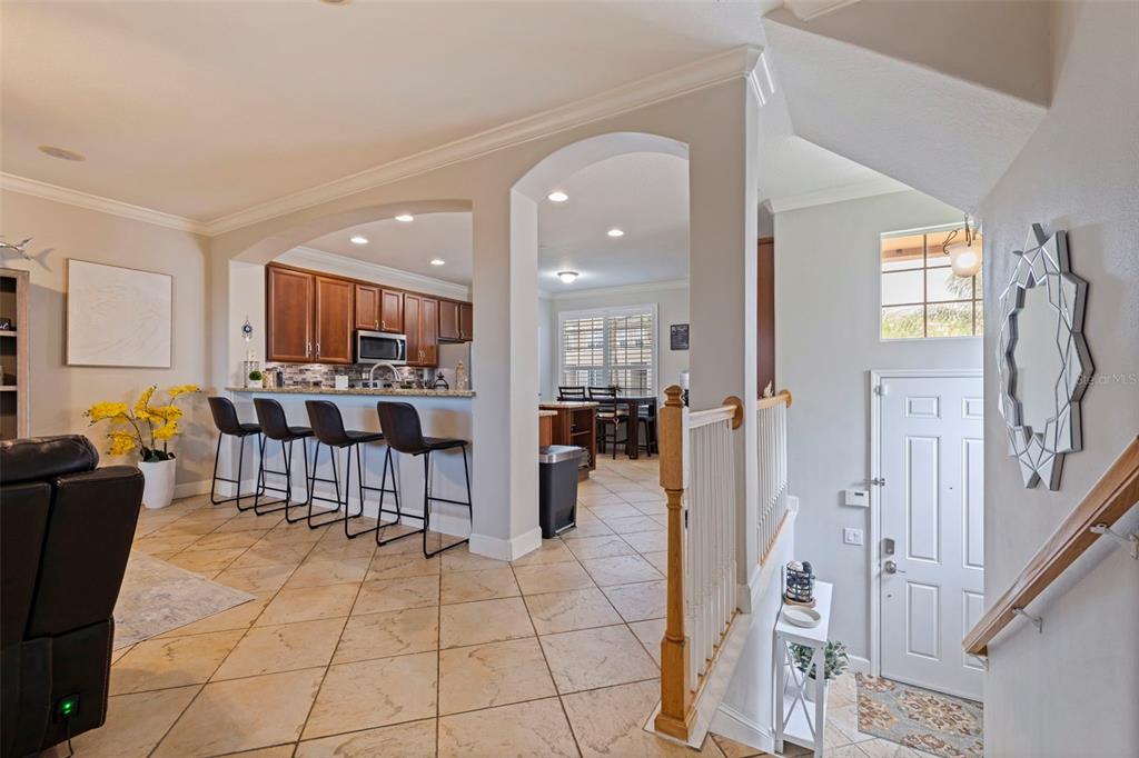 Split Bedroom Walk-In Closet(s)Ceiling Fan(s) Eating Space In Kitchen High Ceilings Open Floorplan Solid Surface Counters Solid Wood CabinetsCrown Molding PrimaryBedroom UpstairsExterior Features: