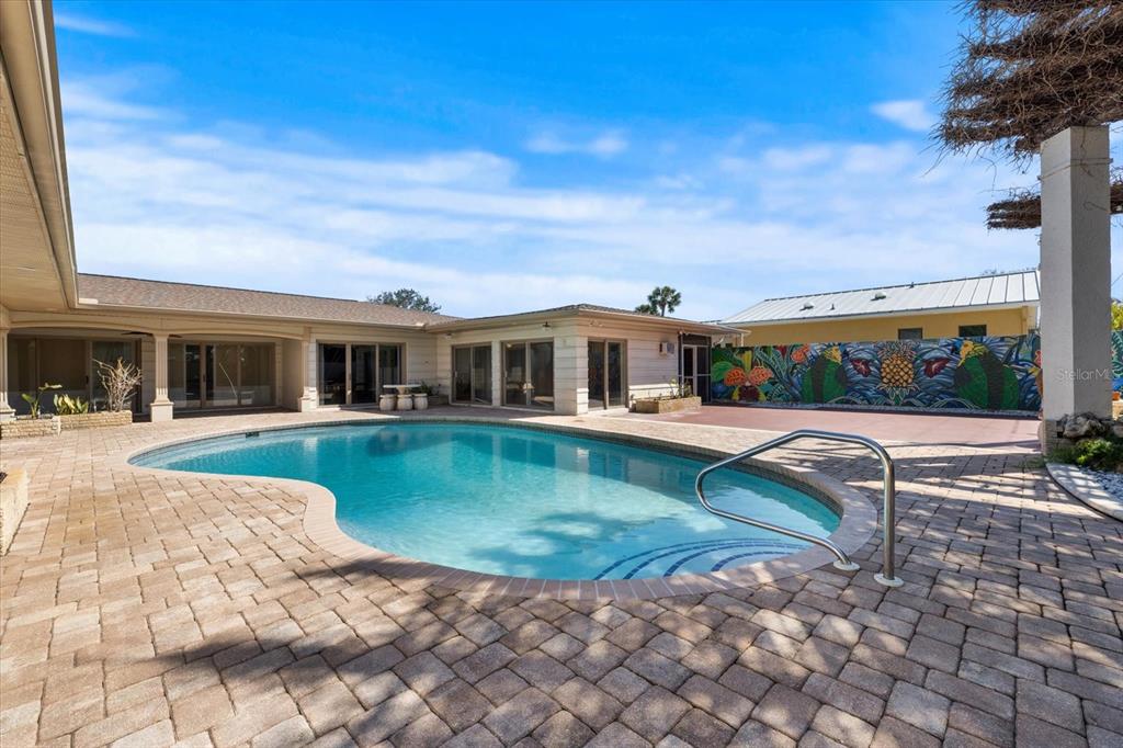 Nestled within the prestigious golden beach community on venice island, this expansive residence at 715 golden beach blvd offers timeless charm combined with modern potential. the home's construction began in 1959 and was completed in 1961, showcasing distinctive architectural details, including elegant coffered ceilings in the dining room, living room, and primary bedroom, enhancing its overall architectural elegance. this residence is distinguished by its exclusivity, having had only a handful of owners over its lifetime. the home's first floor features beautiful terrazzo flooring throughout, enhancing its timeless appeal. additionally, two of the bedrooms on the first floor are luxurious primary suites, offering en-suites, privacy, and convenience. the second floor primary bedroom suite is thoughtfully appointed with coffered ceilings, spacious double vanity, relaxing jacuzzi tub, separate shower, and a walk-in closet. the spacious home includes a dedicated home theater space in the living room ideal for movie nights and entertaining, a welcoming billiard room ideal for leisure and social gatherings, and workout room complete with a relaxing sauna. outdoor enthusiasts can unwind in the beautifully landscaped grounds, highlighted by a serene grotto with a waterfall, large swimming pool, and beautifully paved pool deck for tranquil relaxation. additionally, the property includes an expansive covered outdoor storage area, ideal for recreational equipment and storage needs. golden beach residents enjoy exclusive private deeded beach access, allowing direct entry to the pristine shores of the gulf of america. venice island itself is renowned for its unique blend of historical charm, italian-inspired architecture, lush landscaping, boutique shopping, exquisite dining, and rich cultural experiences. important to note, the property experienced rare flooding in hurricane helene and milton. this presents a unique opportunity to renovate and personalize the home, transforming it into a resilient coastal retreat customized precisely to your vision of luxury and comfort. seize this rare opportunity to live where others dream to vacation!715 GOLDEN BCH, VENICE, FL 34285