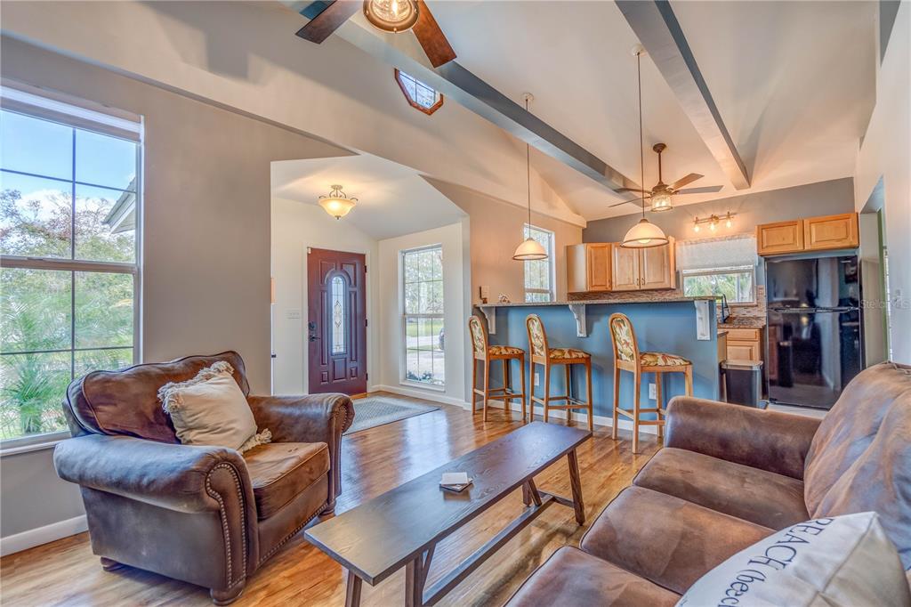 Split Bedroom Walk-In Closet(s) Vaulted Ceiling(s)Ceiling Fan(s) High Ceilings Living Room/Dining Room Combo Stone Counters Open Floorplan Solid Wood CabinetsExterior Features: