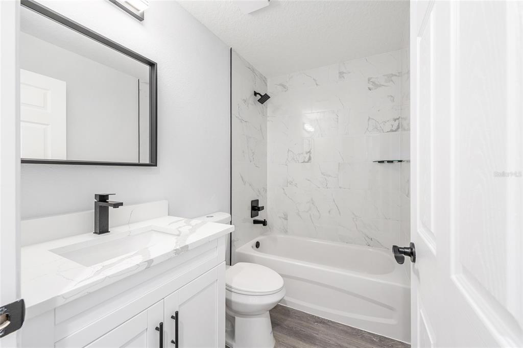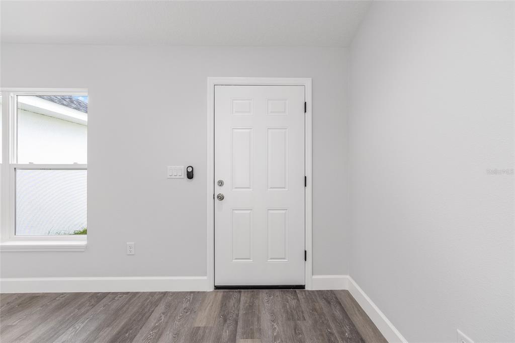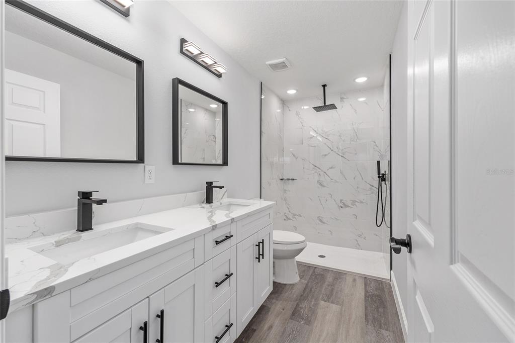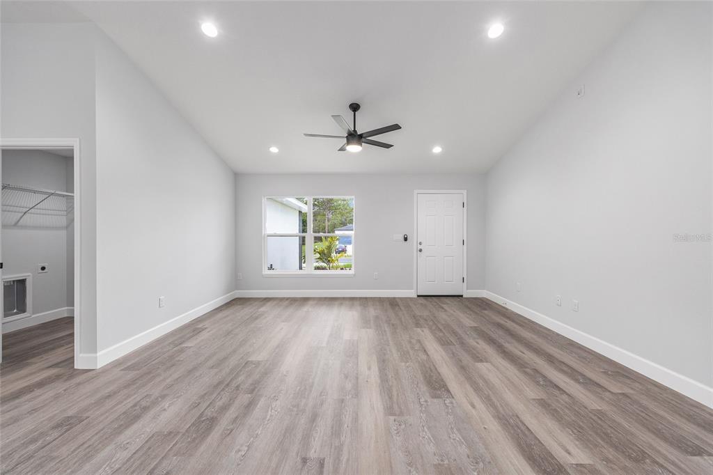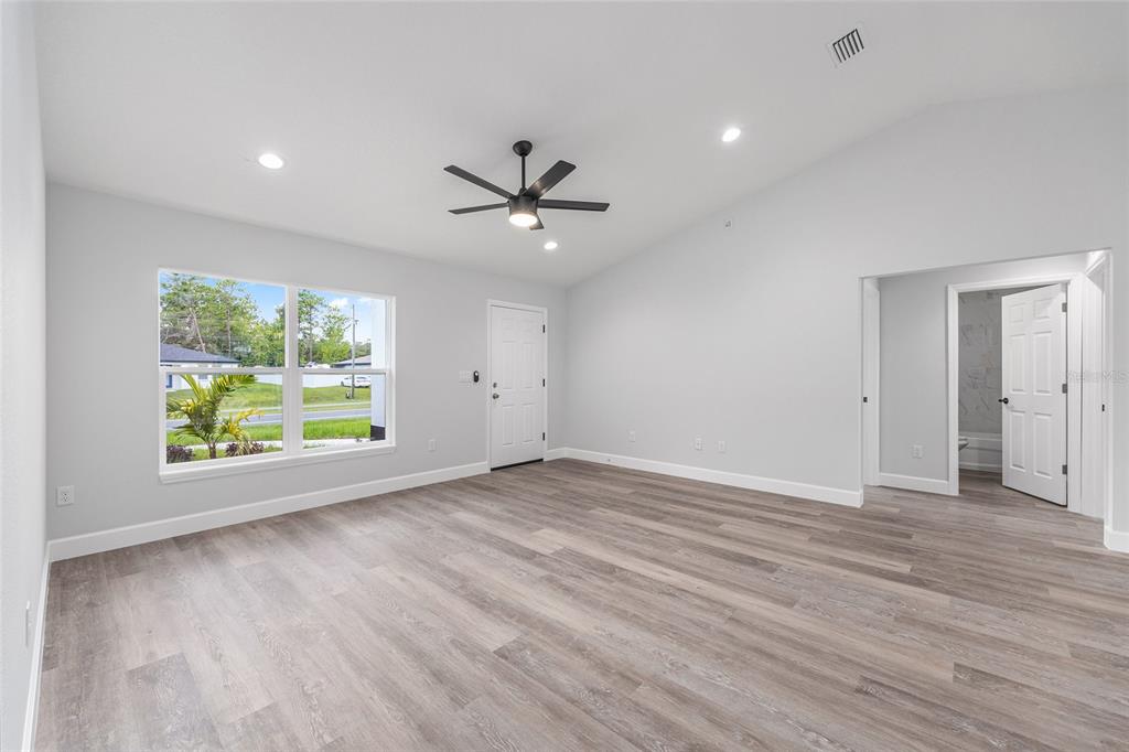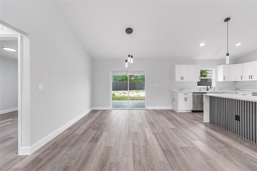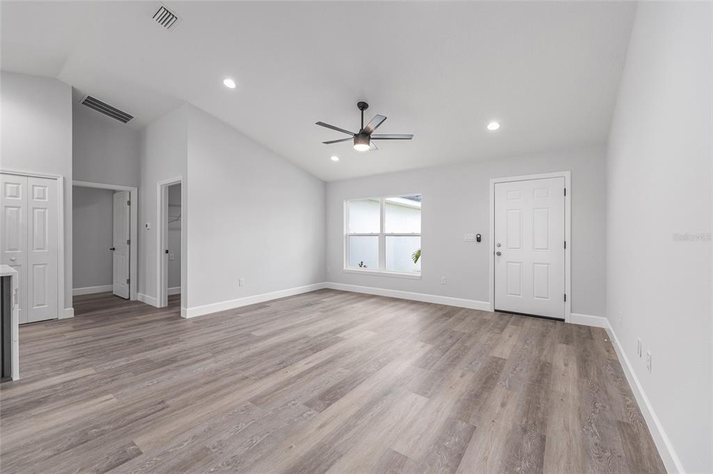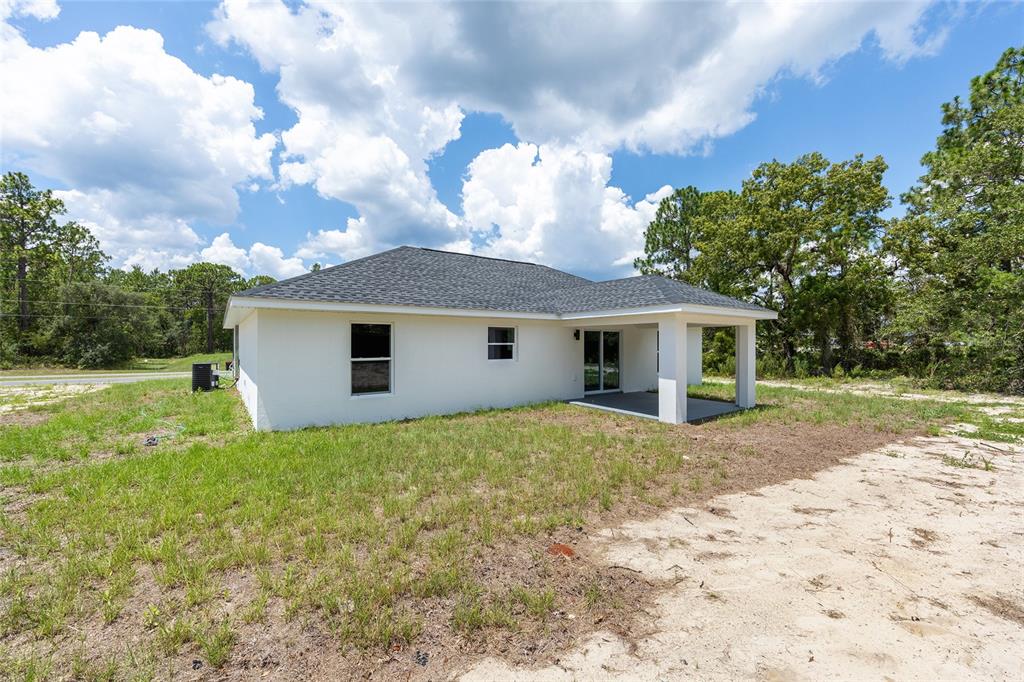 Welcome to this stunning new construction home nestled between hwy 484 in marion oaks and marion oaks manor. offering 1,380 square feet of living space and a total footprint of 1,972 square feet, this thoughtfully designed residence sits on an oversized .29-acre corner lot, providing plenty of outdoor potential and privacy. step inside to find vaulted ceilings in the social areas that enhance the home's open and airy feel. the kitchen is a showstopper with striking calacatta marble quartz countertops, a dramatic waterfall island, and sleek black fixtures throughout. the cohesive modern design continues into the bathrooms, featuring matching quartz vanities and a spa-inspired rainfall shower in the primary suite. additional features include...luxury waterproof vinyl plank flooring throughout, contemporary led light fixtures and ceiling fan in the living room, and a 12x12 covered lanai perfect for relaxing or entertaining. this home offers the perfect blend of style, functionality, and value. don’t miss your opportunity to own a beautiful new build in a growing area of ocala! your investment is protected with a full 1-year builder warranty. pictures are of actual home.717 MARION OAKS, OCALA, FL 34473