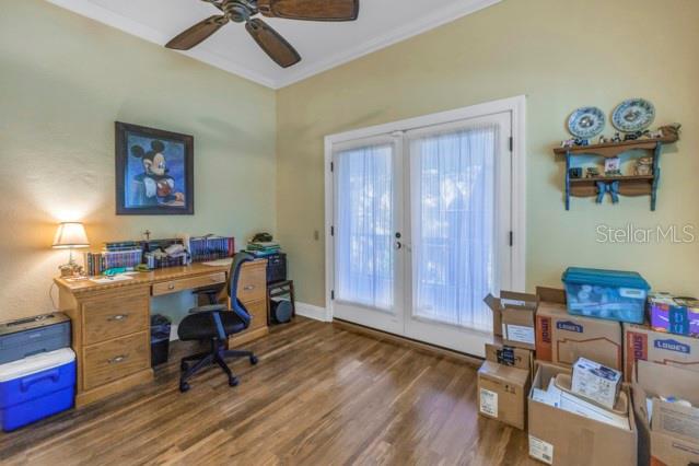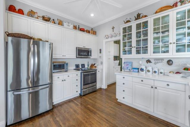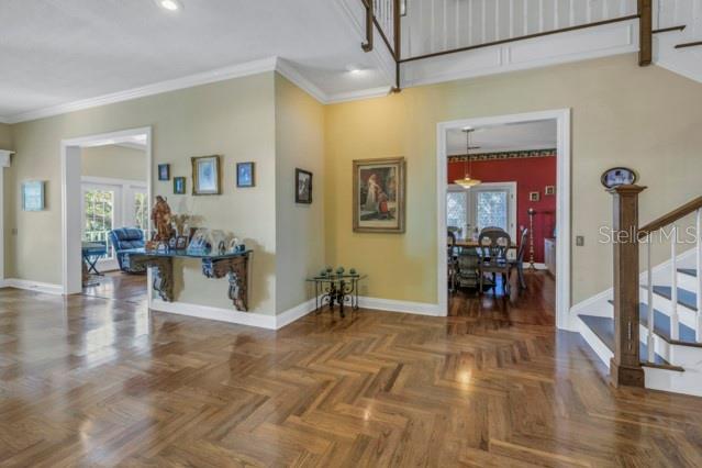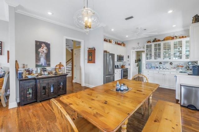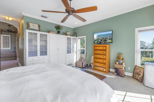 Walk-In Closet(s)Ceiling Fan(s) Eating Space In Kitchen High Ceilings Window TreatmentsCrown Molding PrimaryBedroom UpstairsExterior Features: