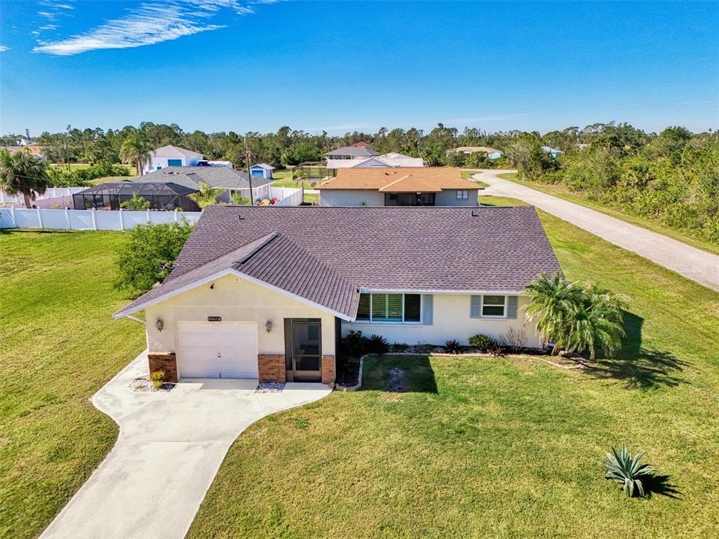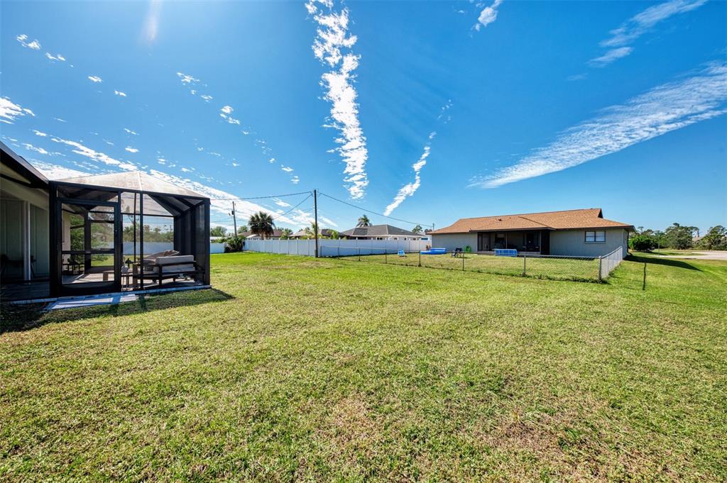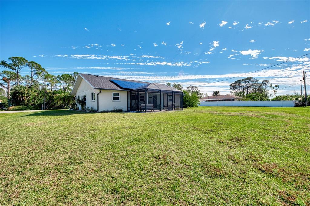 Welcome to this delightful 3-bedroom, 2-bathroom home situated on a large corner lot in an x flood zone, offering peace of mind and plenty of space to enjoy. as a bonus, this home is being sold with an adjoining lot totaling nearly a half acre, providing endless possibilities for expansion, extra privacy, or future investment! inside, you'll find a well-equipped kitchen featuring stainless steel appliances, granite countertops, reverse osmosis drinking water, and ample cabinet space, making meal prep a breeze. the bamboo flooring in the living and dining areas adds warmth and character, while sliding glass doors open to an oversized screened lanai—the perfect spot to sip your morning coffee or enjoy the florida breeze. this home has been thoughtfully upgraded with new impact windows (excluding the sliders) for added storm protection and energy efficiency. elegant plantation shutters in the living room provide a classic touch while offering privacy and light control. the home’s split floor plan offers privacy, with a spacious primary suite on one side and two additional bedrooms on the other. the recently updated second bathroom showcases beautiful tile work, a walk-in shower, and a stylish new vanity. this home is equipped with a solar energy system, providing exceptional energy efficiency and long-term savings on utility costs. the seller currently has a contract with a solar company and will pay off the remaining balance at closing.7179 LIGHTHOUSE, ENGLEWOOD, FL 34224