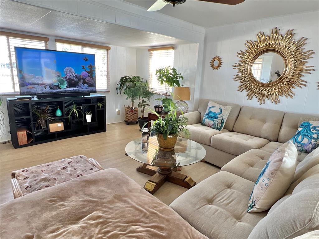 No flooding inside of home! oversized corner lot! move in to this 2 bed/2 bath home with more than 800 sq. ft of living space plus a 200 sq. ft florida room to use as office/hobby or extension of living space. a large carport with utility shed makes the entire property more than 1,800 sq. ft. the features are many: 2017 hvac system with 2024 ductwork, 2022 water heater, 2025 tpo membrane roofover, 2024 vapor barrier to protect subflooring, 2024 plumbing and 2022 electrical box. laminate flooring throughout. split bedroom plan. spacious living room with lots of windows. washer inside with dryer in shed. price includes share for the lot and ownership in the community. located in 55+ waterfront community with lots of amenities including heated pool, new fitness center, clubhouse, two boat ramps and kayak launch and so much more. low monthly maintenance fee includes water/sewer/trash pick up/lawn mowing/24 hr manned gate/private streets/seawall maintenance and the amenities. americana cove is a premiere 55+ community located only 10 minutes to popular downtown st. petersburg, 15 mins to two airports and 25 minutes to beaches. this is affordable housing in a prestige community! two indoor cats are welcomed!7181 MT HAWTHORNE NE #590, ST PETERSBURG, FL 33702