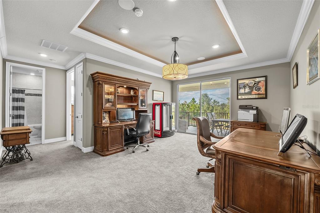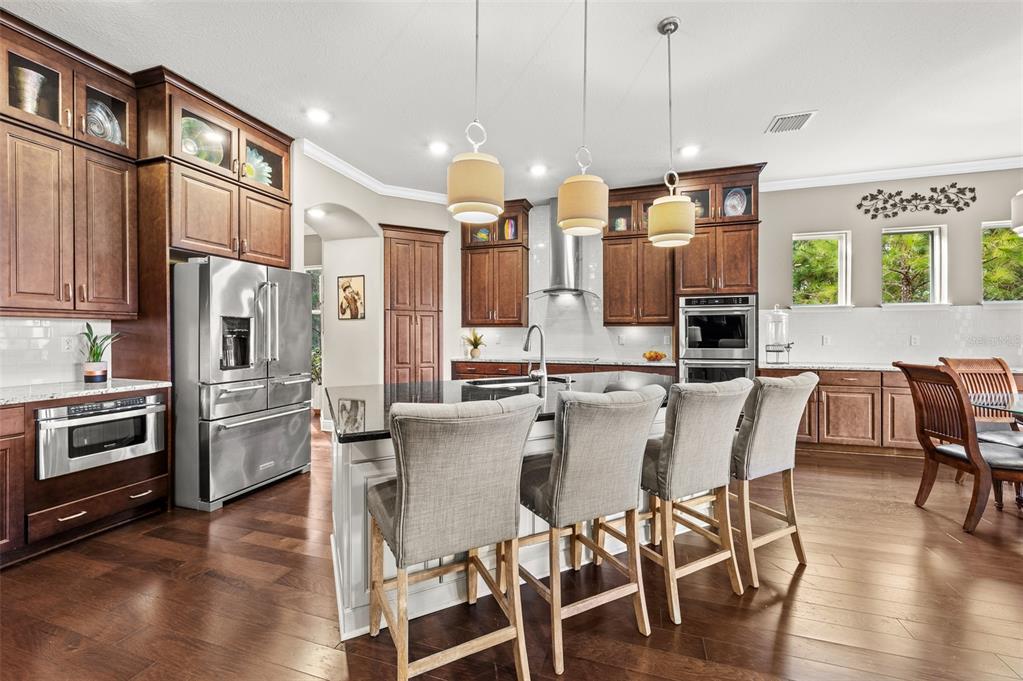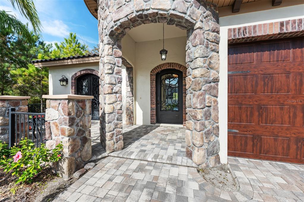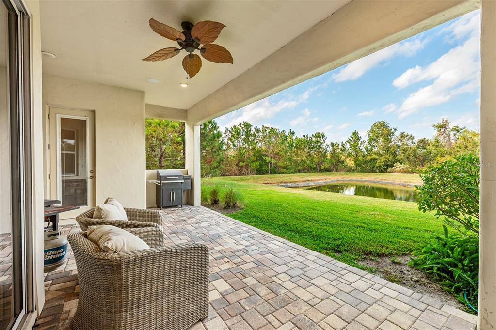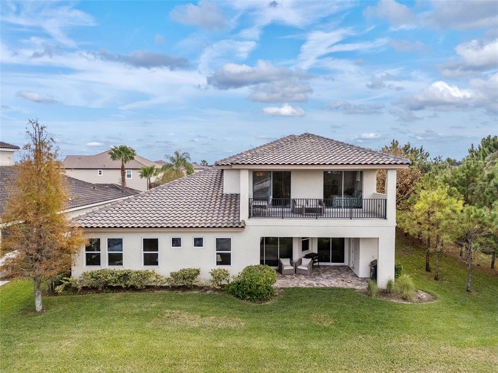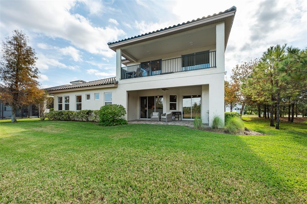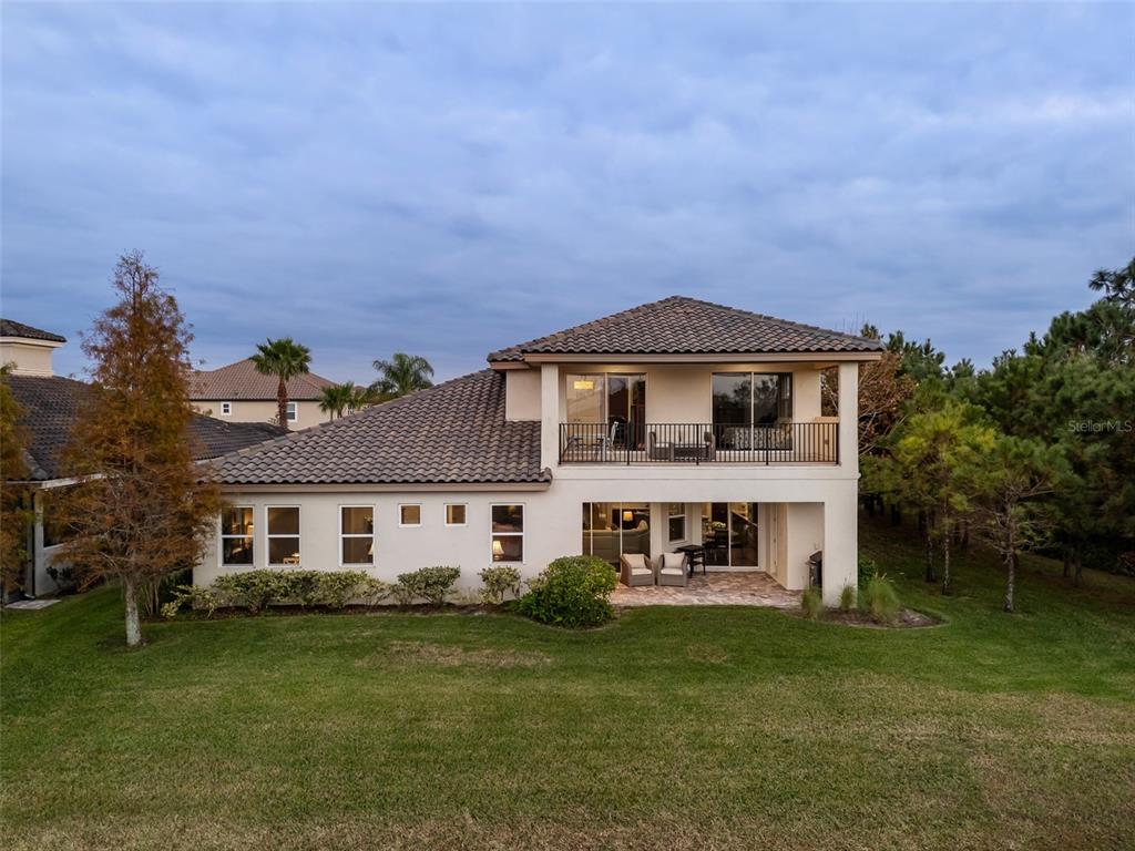 In the prestigious gated community of the gardens in watergrass, this exquisite five-bedroom, 4.5-bath, three-car garage residence by the luxury home builder bakerfield offers an unparalleled blend of luxury, sophistication, modern convenience, and a heightened sense of privacy courtesy of the oversized corner lot with pond and conservation views and no rear neighbors. the spacious front lanai, complete with a grand stone woodburning fireplace and a private entrance to a guest bedroom bar area, provides an ideal space for welcoming guests. the expansive kitchen is equipped with high-end appliances, including dual built-in ovens, an in-counter drawer microwave, a kitchenaid refrigerator with dual beverage drawers, all encompassed by solid wood cabinetry. the sprawling layout is further enhanced by a large, angled center island with abundant storage, paired with a stylish white subway tile backsplash that extends to the adjacent dry bar. glass display cabinetry extends to the ceiling, and a sleek walk-in pantry completes this culinary haven. the elegant primary suite serves as a tranquil oasis, featuring a spa-like bath with a luxurious pass-through walk-in shower boasting dual shower heads and a rainfall feature. a deep soaking tub invites relaxation, while the split dual vanity with a dedicated makeup counter adds a touch of glamour complemented by the dual walk-in closets with custom built-ins. crafted for entertainment, the dedicated theater room is complete with custom-tiered seating, a built-in wet bar with a beverage refrigerator, pre-wiring for motorized shades and an immersive 11.2 surround sound system. beyond its impressive interior, this residence boasts a multitude of desirable features, including an open upstairs loft, a covered balcony patio with picturesque views, a formal dining room, an oversized three-car garage, zoned dual air-conditioning systems for optimal climate control, and striking stone feature walls that grace the foyer and living room. enjoy picturesque pond views from the covered rear patio, which is thoughtfully equipped with a convenient half bath and is pre-plumbed for an outdoor kitchen and electronics. further enhancing this exceptional property are meticulously designed california closets, a child safety pool alarm for peace of mind and built-in surround sound speakers in the living room, patios and primary bath. impact windows offer security and energy efficiency, while hardwood flooring, recessed led lighting, and 12-foot ceilings with tray ceilings and crown molding create an ambiance of refined elegance. a well-appointed laundry room connects to the primary bath for added convenience. not in a flood zone. in the planned community of watergrass, offering community amenities in the form of multiple community pools and playgrounds, watergrass elementary and fire department, along with a new publix and starbucks. with nearby interstate access, this growing area has the sought-after innovation preparatory academy and the kirkland ranch academy of innovation schools while close to hospitals, dining, shopping, the tampa premium outlets, krate at the grove of wesley chapel and shops at wiregrass.7183 HEATHER SOUND, WESLEY CHAPEL, FL 33545