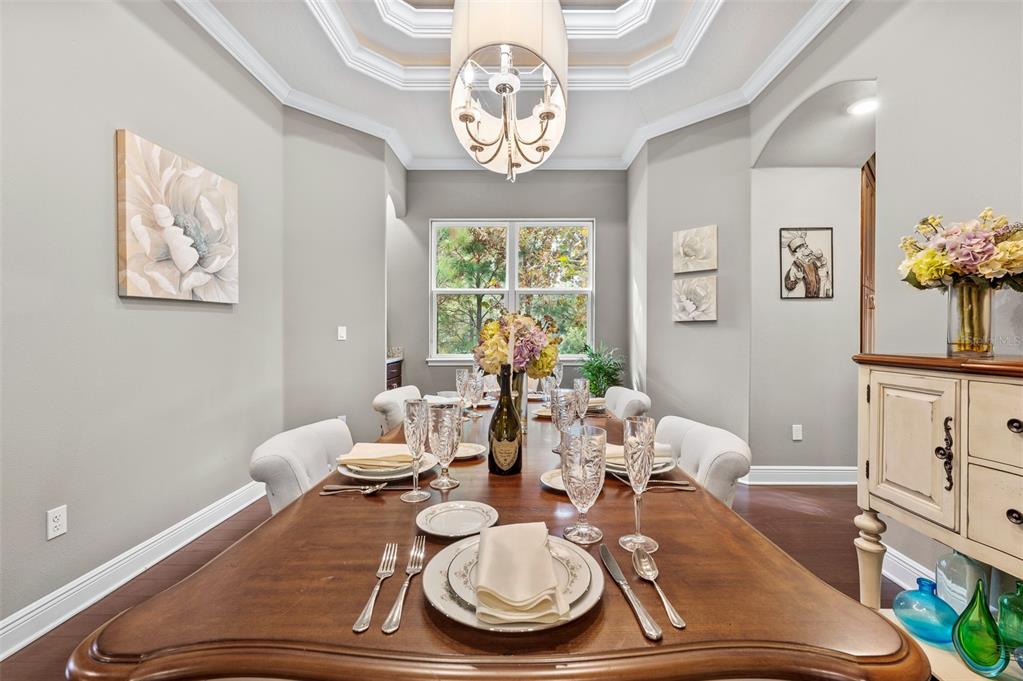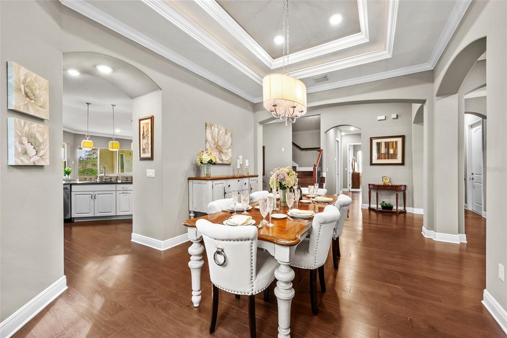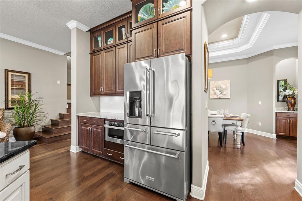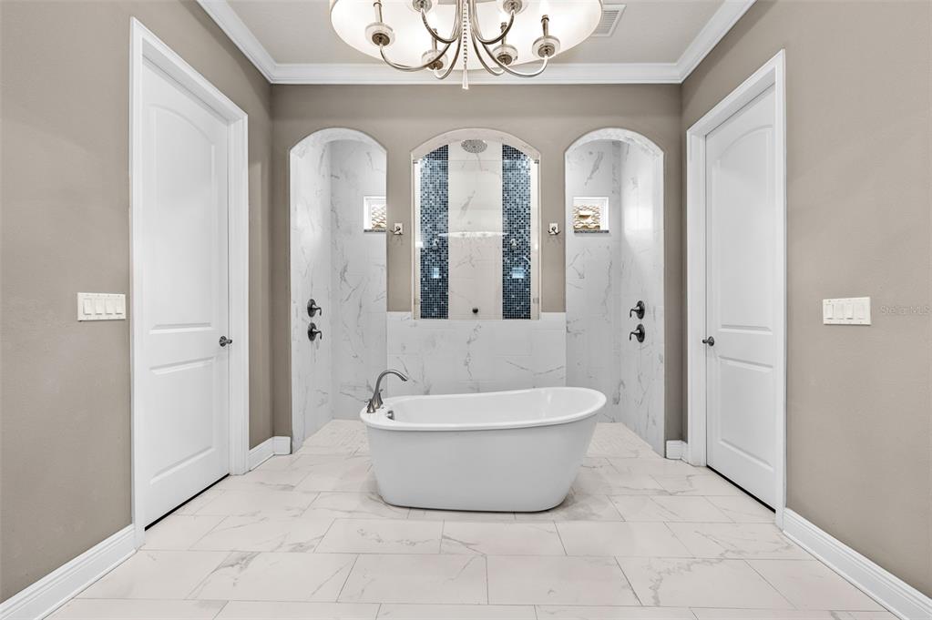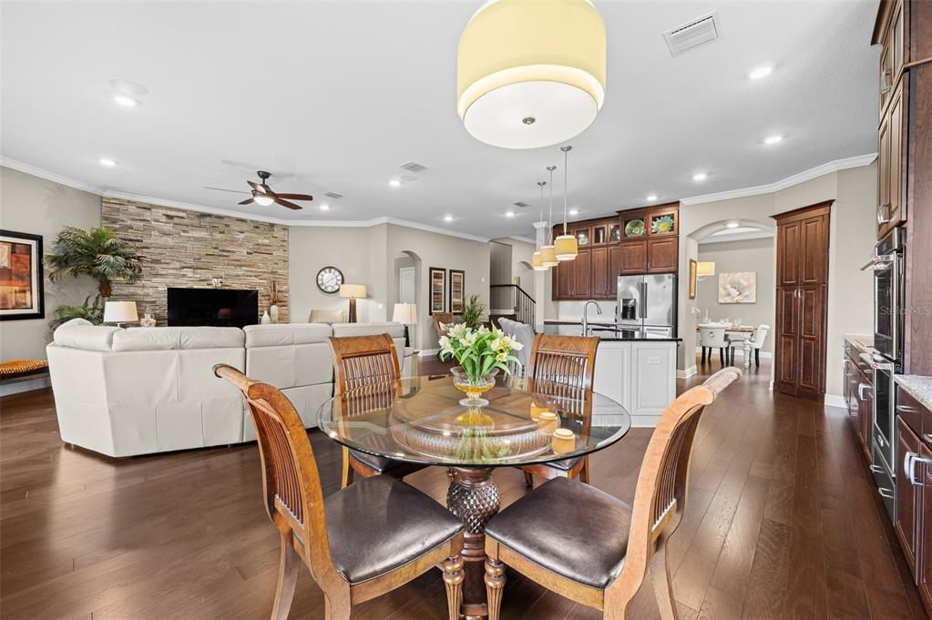 Wet BarBuilt-in Features Walk-In Closet(s)Ceiling Fan(s) High Ceilings Stone Counters Thermostat Open Floorplan Solid Wood CabinetsCrown Molding Primary Bedroom Main Floor Tray Ceiling(s) Dry BarExterior Features: