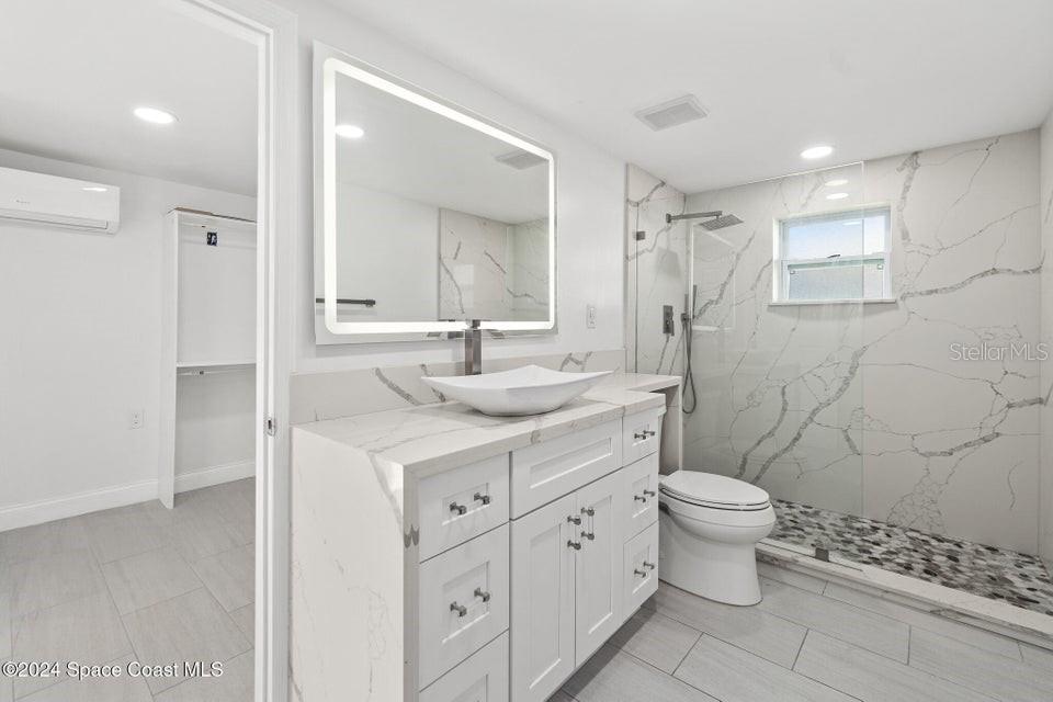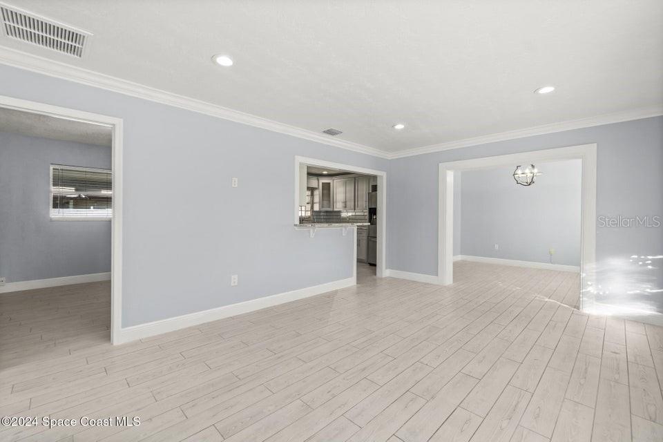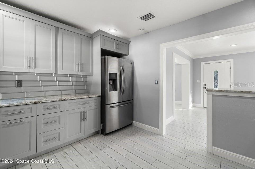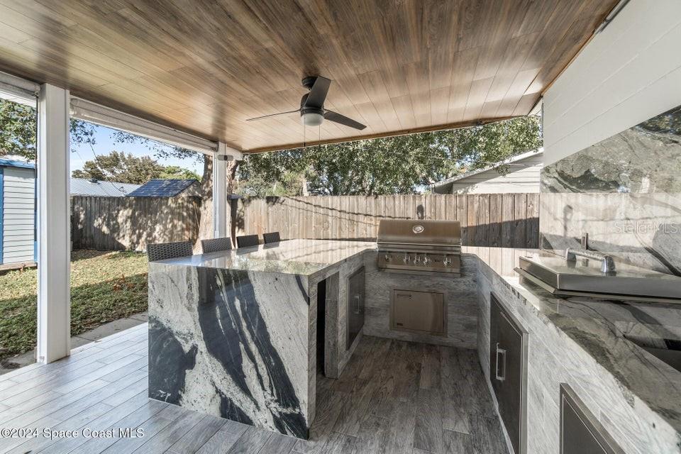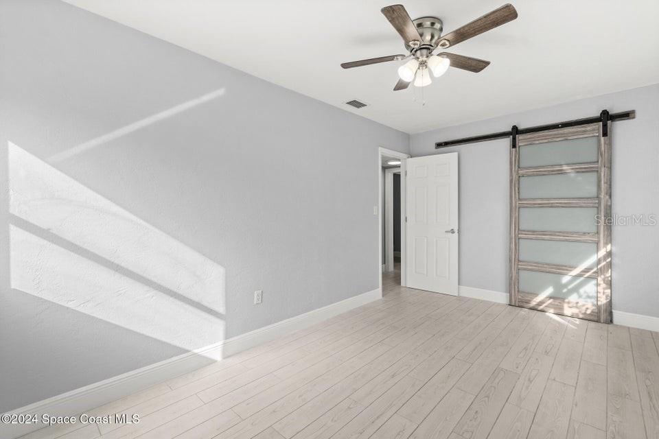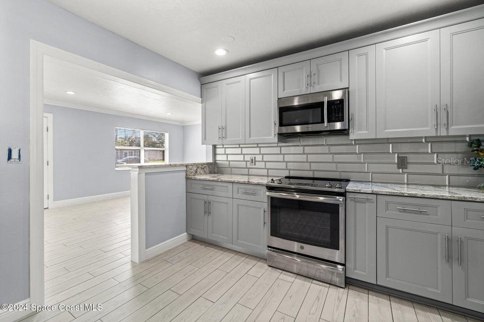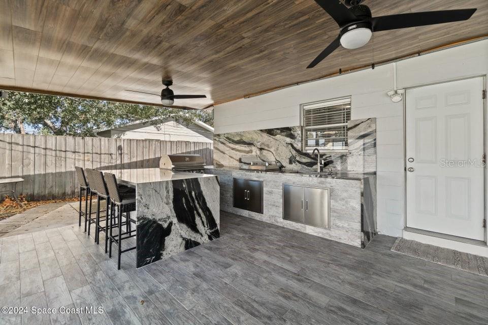 This beautifully renovated 3 bed/2 bath home offers modern luxury and comfort in an ideal location. with brand-new hardwood flooring throughout, stylish fixtures, and stunning barn doors, this property exudes charm and sophistication. the primary bedroom features a massive walk-in closet with built-in shelving, offering ample storage. both bathrooms have been completely updated with luxurious marble finishes and sleek backsplashes, while the kitchen boasts brand-new countertops, backsplash, and high-end appliances, perfect for cooking and entertaining. the roof is brand new, providing peace of mind for years to come. step outside to enjoy a large backyard with a covered patio and a new outdoor kitchen, ideal for hosting gatherings or simply relaxing in your private oasis. additionally, a spacious shed provides extra storage. located in the highly sought-after area of merritt island, this home is just minutes from local restaurants, shopping areas, and only 10 minutes from the beach.719 6TH, MERRITT ISLAND, FL 32953