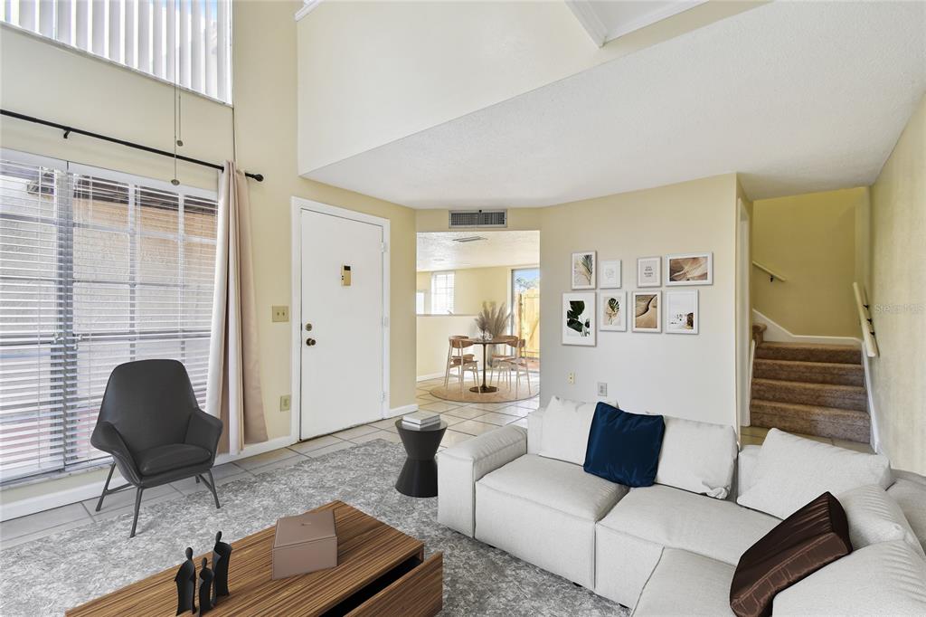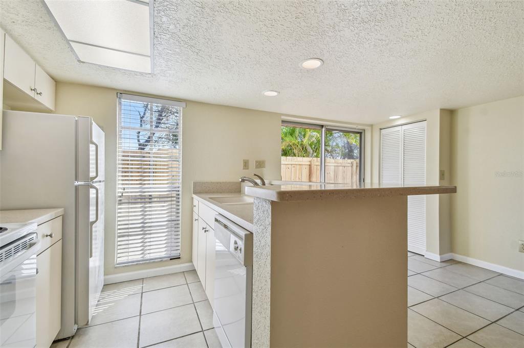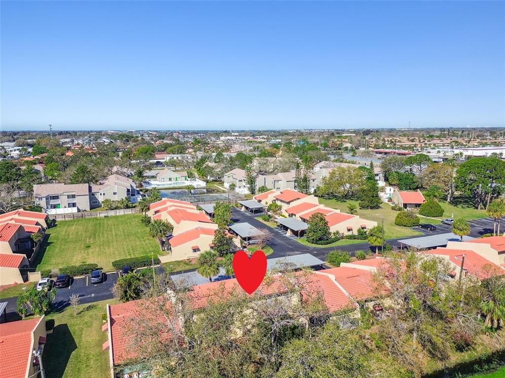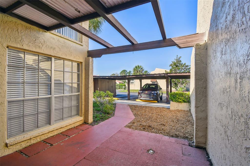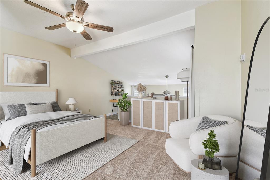 One or more photo(s) has been virtually staged. welcome to this meticulously maintained condo, offering the perfect blend of location, size, and price! freshly painted throughout the entire interior, this home is move-in ready with brand new carpet upstairs. the spacious downstairs features a large living room, kitchen, dinette, laundry area, and a convenient half bathroom. the spotless kitchen features corian countertops, a generous breakfast bar, and an open layout that seamlessly connects to the dinette and living room. off the dinette, you'll find a washer/dryer closet and sliding doors leading to a private, fenced terrace—perfect for outdoor relaxation. upstairs, you'll discover an loft bedroom with a large walk-in closet and an en-suite bathroom. there is bonus space, perfect for a home office, exercise spot or reading/hobby nook. vaulted ceilings and an abundance of windows fill the space with natural light, creating an airy and expansive feel that surpasses the condo's square footage. additional features include all block construction, front and back patios, assigned covered parking, and a private storage room- both right in front of the unit. villa nueva is a quiet community with the beautifully landscaped and manicured grounds, complete with a sparkling pool, in a peaceful and quiet setting with an abundance of open green space. this unit is high and dry and with all block construction offering peace of mind, especially during recent storms. conveniently located just 5 miles to st. pete-clearwater airport, only 8 miles to the beach, 15 miles to all the dining, shopping and entertainment in downtown st. pete as well as tampa international airport. don’t miss the opportunity to own this fantastic home in a well-maintained community!7200 ULMERTON #B4, LARGO, FL 33771