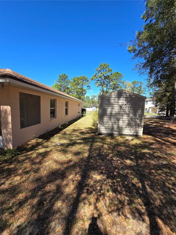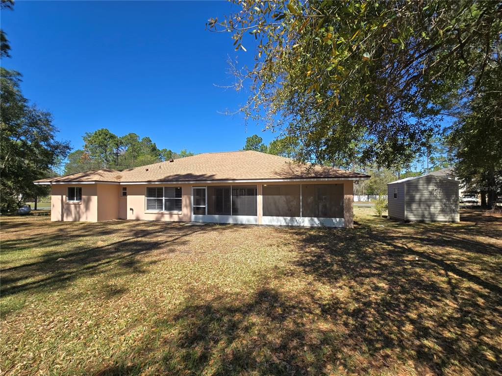 This listing features a custom home on an oversized 12000 sq ft lot with storage shed. this 4 bedroom split floor plan has 2 bedrooms and a bathroom on each side of the house with a door leading to the back screened patio from the main bedroom suite. from the kitchen there is a separate breakfast nook which overlooks a tree lined back yard. the interior laundry room is in a hallway adjacent to the bedrooms, garage door and pantry closet. it features a gas dryer and a laundry sink. the plantation shutters throughout the home cover the sliding patio doors, living area windows and bedroom windows- giving privacy, coolness, shade and an upscale feeling to the home. they are easily opened to desired brightness to add light. the tiled, screened in, back patio has a ceiling fan and a permanent gas hook up for your bbq. there is also a gas stove in the kitchen. a spacious 2 car garage with large window and garage opener. this home is full of extra features. separate tub, shower, and wc in main bathroom which has dual sinks with new granite countertop, 2nd bathroom has matching granite countertop. living room ceilings are vaulted , tray ceiling in main bedroom, featuring a tankless water heater, berber carpet in 3 of the 4 bedrooms, and a ample front patio that overlooks a wide corner lot. roof is new shingle with metal covered fascia and metal soffit.7206 N GLENRIDGE, CITRUS SPRINGS, FL 34434
