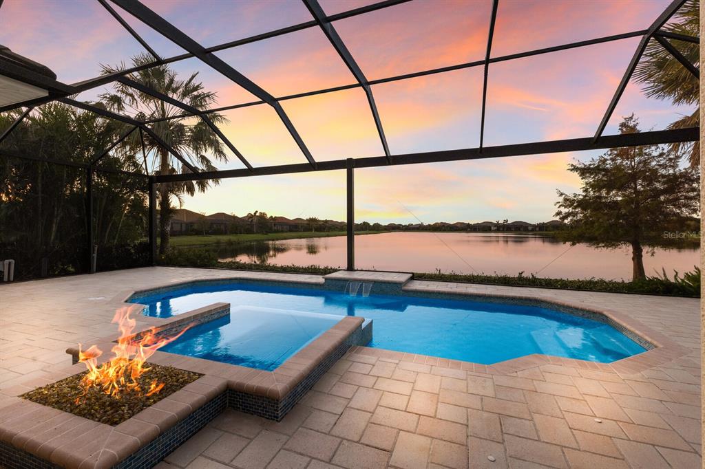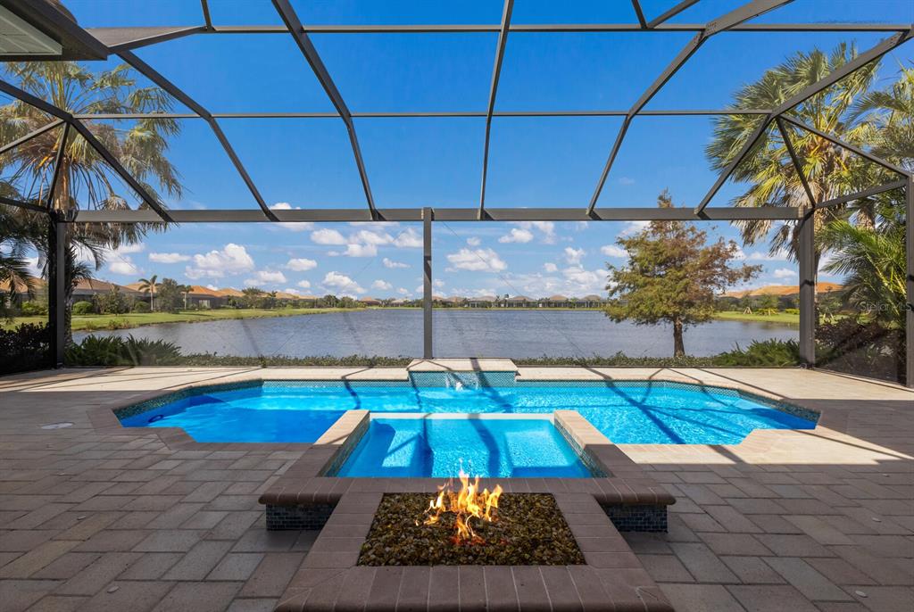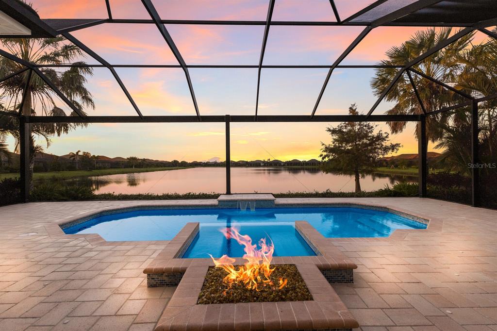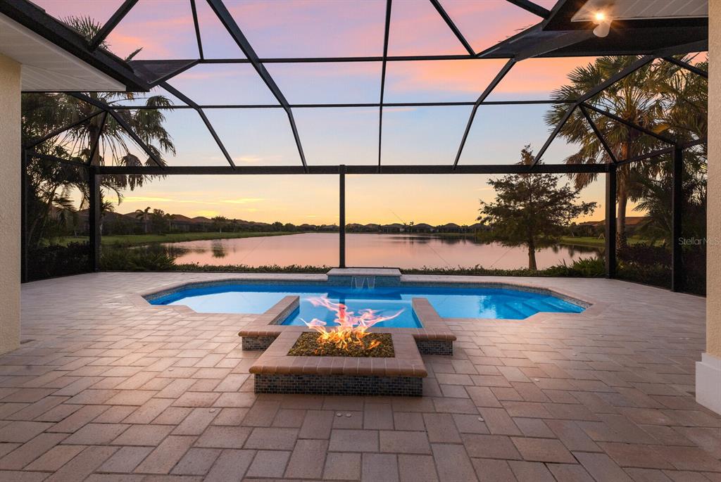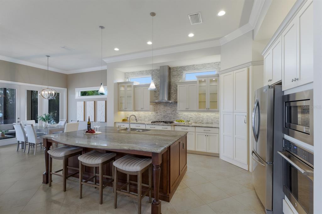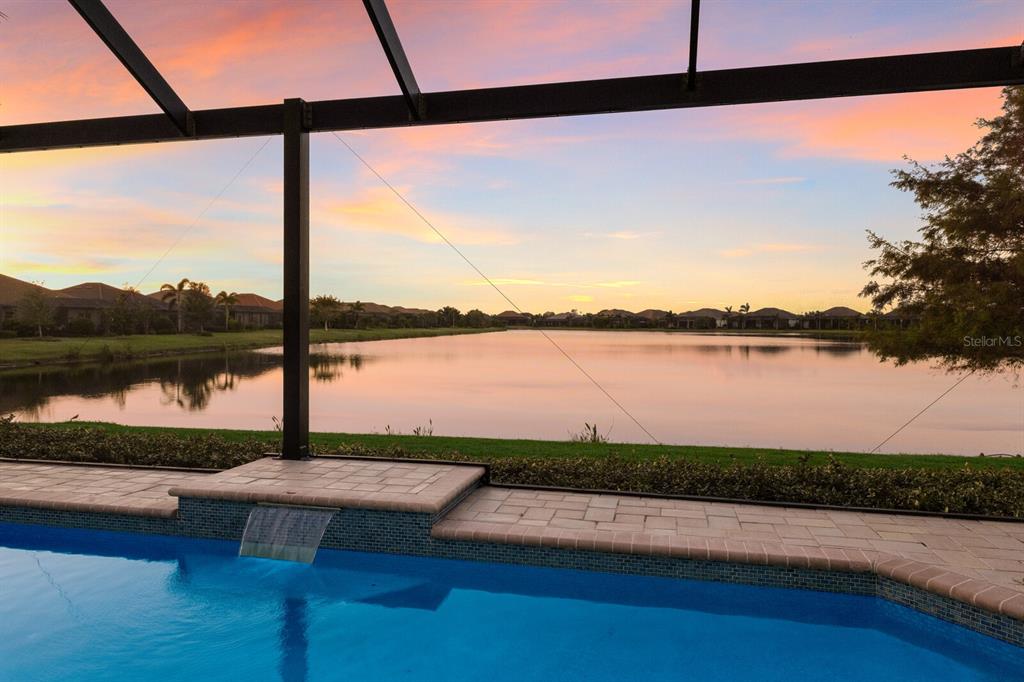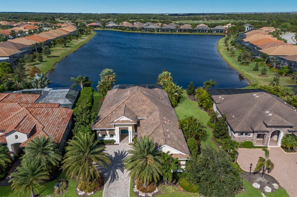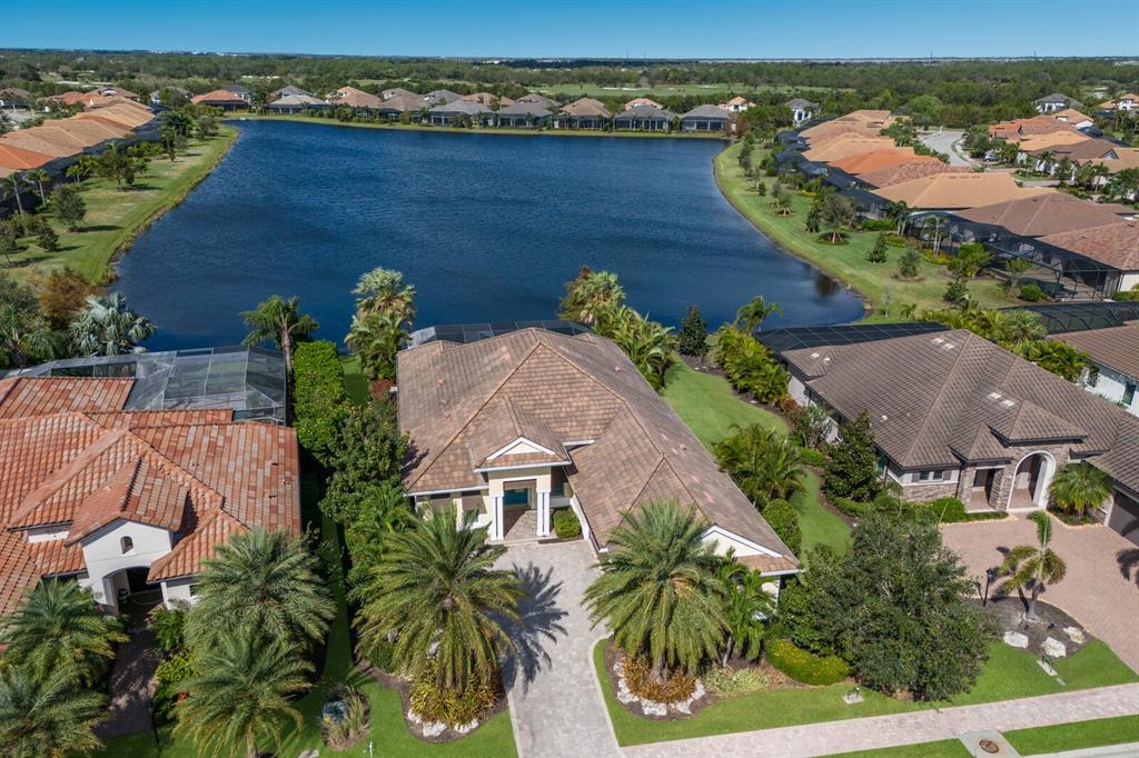 Long lake views take center stage from this three bedroom, three and a half bath residence built by the custom builder lee wetherington in the gated lakewood ranch community of country club east, encompassing 2,803 square feet of one-story open concept living with the added benefit of a generator and new impact windows. an inviting outdoors boasts stellar vistas, abundant under cover spaces, full summer kitchen, pebbletec heated pool/spa with fire feature, hurricane screens, and a panoramic clear view lanai screen. ten foot impact glass walls seamlessly disappear connecting the outdoor living space to the great room, kitchen and dining area adorned with porcelain tile flooring, volume tray ceilings, and custom built-in shelving. the open and inviting kitchen is a culinary haven, showcasing granite counters, light cabinetry, pull-out drawers, stylish backsplash, over and under cabinet accent lighting, stainless steel appliances, hidden walk-in pantry, and a generous island with a temperature controlled wine fridge. relax and unwind in the owner’s quarters positioned on a private wing, offering stunning views overlooking the long lake, tray ceiling, two customized walk-in closets, and a luxuriously appointed bath with two separate vanity stations, make up area, granite counters, a walk-in frameless shower and soaking tub. two additional guest rooms, each on separate wings of the home are generous in size, one is ensuite with a private full bath, while the other has access to the home’s third full bath. the residence also offers an ideal office behind double-entry doors just off the great room with built-in cabinetry, desk and shelving. other notable highlights of this 4,001 total square foot residence includes a smartly positioned half bath off the lanai, an optimal laundry room with cabinetry, sink, and larger walk-in closet, whole-home generator, impact windows and sliders, hurricane shutters, tankless water heater, sizable crown molder, closets and storage spaces throughout, landscape lighting, icenyne insulation, and a courtyard side load 3-car garage with abundant built-in cabinetry. country club east provides its residents with the privacy of gated-community living, three community pools, and fitness center, all within a renowned community infamous for its vibrant lakewood ranch lifestyle near dining, shopping, polo, golf, tennis, community events and still close to the utc area, the beaches of sarasota, and, of course, in an a-rated school district near out-of-door academy and just a few miles from img. residents also have the non-mandatory option to become members of the lakewood ranch golf and country club, which offers four championship golf courses, two clubhouses, tennis, pickelball, fitness center, heated pools, full social calendar and so much more..7216 PRESTBURY, LAKEWOOD RANCH, FL 34202