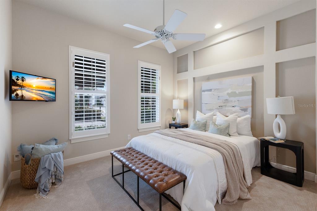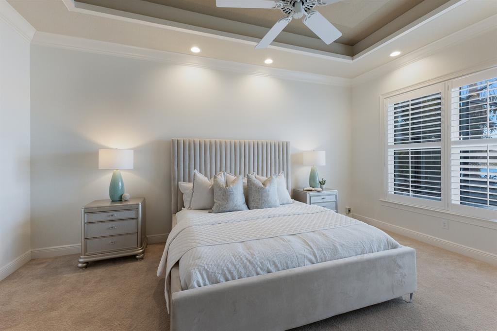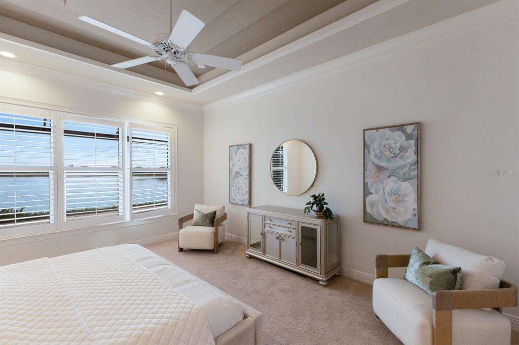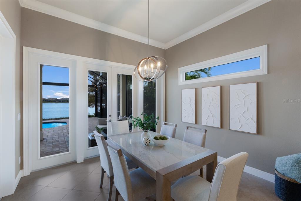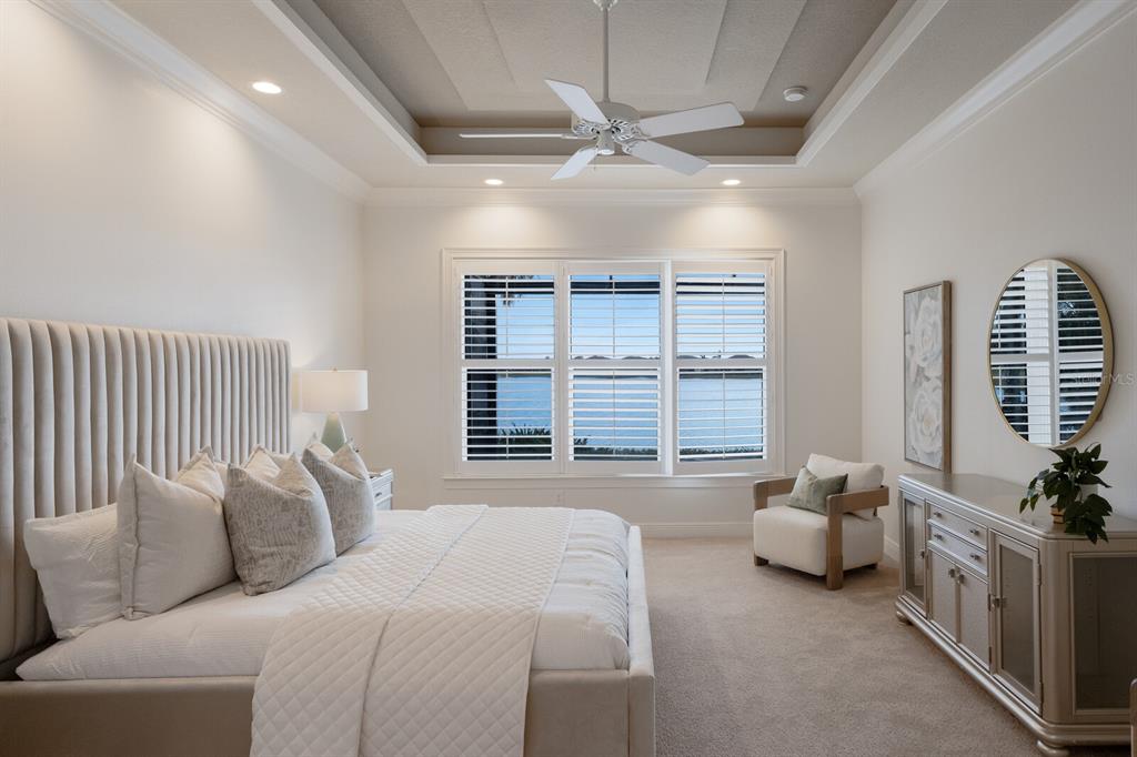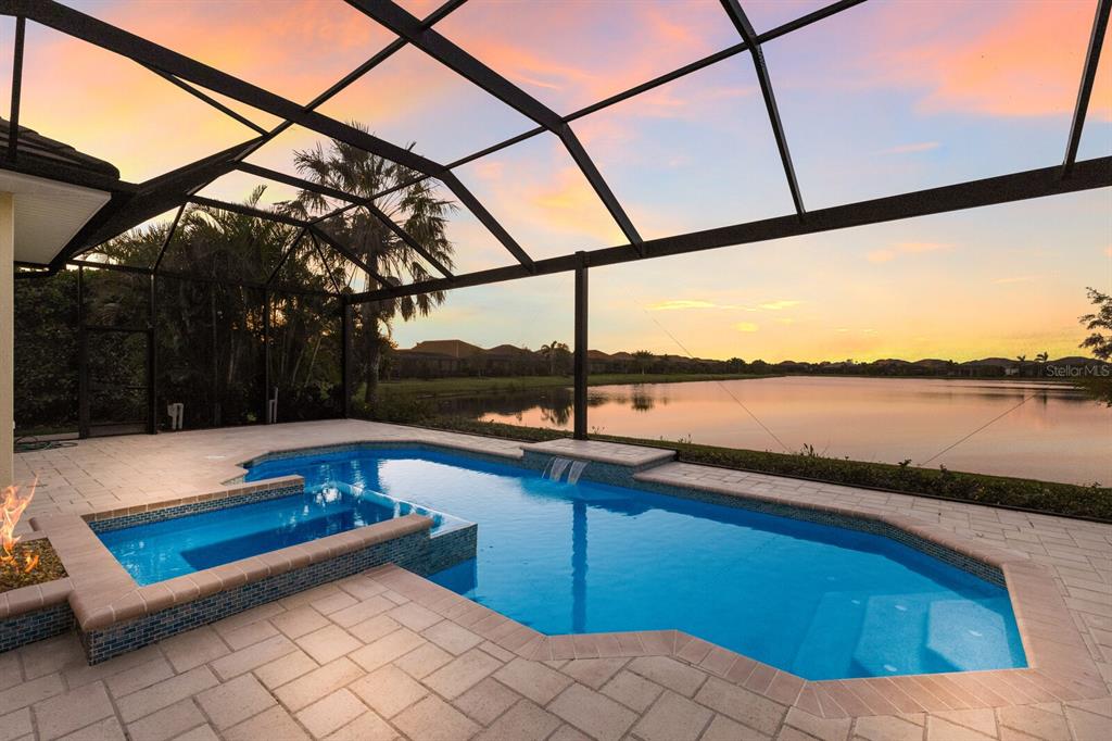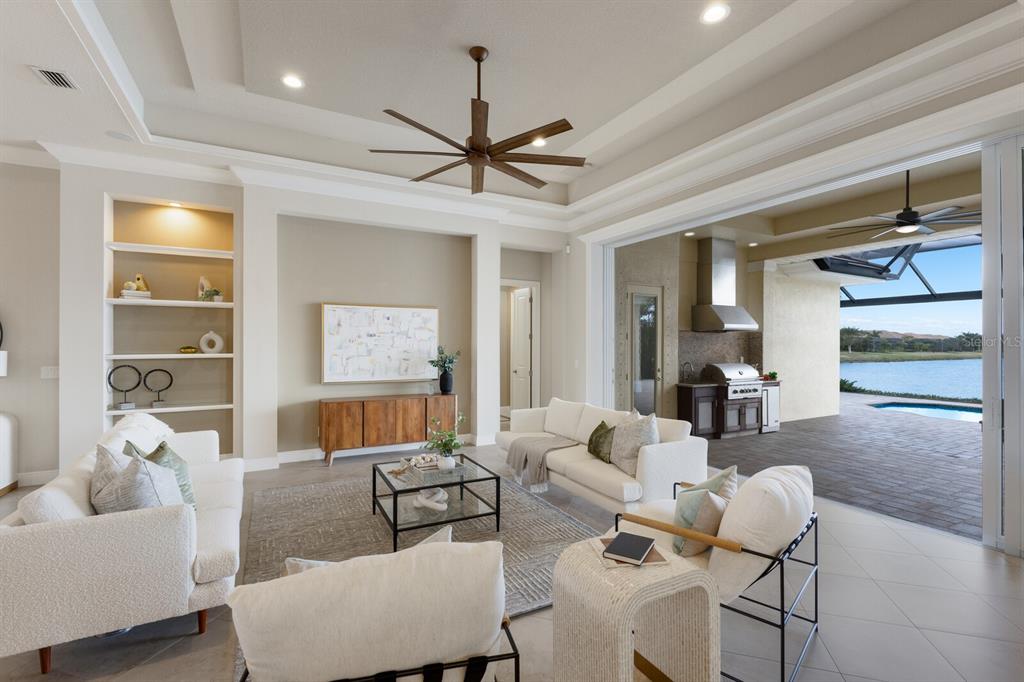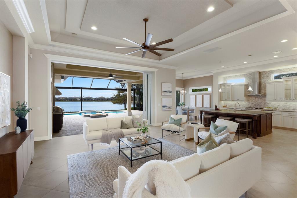 Long lake views take center stage from this three bedroom, three and a half bath residence built by the custom builder lee wetherington in the gated lakewood ranch community of country club east, encompassing 2,803 square feet of one-story open concept living with the added benefit of a generator and new impact windows. an inviting outdoors boasts stellar vistas, abundant under cover spaces, full summer kitchen, pebbletec heated pool/spa with fire feature, hurricane screens, and a panoramic clear view lanai screen. ten foot impact glass walls seamlessly disappear connecting the outdoor living space to the great room, kitchen and dining area adorned with porcelain tile flooring, volume tray ceilings, and custom built-in shelving. the open and inviting kitchen is a culinary haven, showcasing granite counters, light cabinetry, pull-out drawers, stylish backsplash, over and under cabinet accent lighting, stainless steel appliances, hidden walk-in pantry, and a generous island with a temperature controlled wine fridge. relax and unwind in the owner’s quarters positioned on a private wing, offering stunning views overlooking the long lake, tray ceiling, two customized walk-in closets, and a luxuriously appointed bath with two separate vanity stations, make up area, granite counters, a walk-in frameless shower and soaking tub. two additional guest rooms, each on separate wings of the home are generous in size, one is ensuite with a private full bath, while the other has access to the home’s third full bath. the residence also offers an ideal office behind double-entry doors just off the great room with built-in cabinetry, desk and shelving. other notable highlights of this 4,001 total square foot residence includes a smartly positioned half bath off the lanai, an optimal laundry room with cabinetry, sink, and larger walk-in closet, whole-home generator, impact windows and sliders, hurricane shutters, tankless water heater, sizable crown molder, closets and storage spaces throughout, landscape lighting, icenyne insulation, and a courtyard side load 3-car garage with abundant built-in cabinetry. country club east provides its residents with the privacy of gated-community living, three community pools, and fitness center, all within a renowned community infamous for its vibrant lakewood ranch lifestyle near dining, shopping, polo, golf, tennis, community events and still close to the utc area, the beaches of sarasota, and, of course, in an a-rated school district near out-of-door academy and just a few miles from img. residents also have the non-mandatory option to become members of the lakewood ranch golf and country club, which offers four championship golf courses, two clubhouses, tennis, pickelball, fitness center, heated pools, full social calendar and so much more..7216 PRESTBURY, LAKEWOOD RANCH, FL 34202