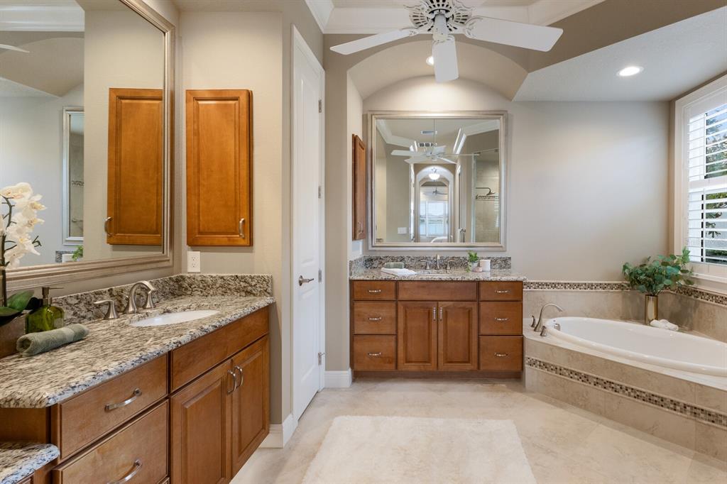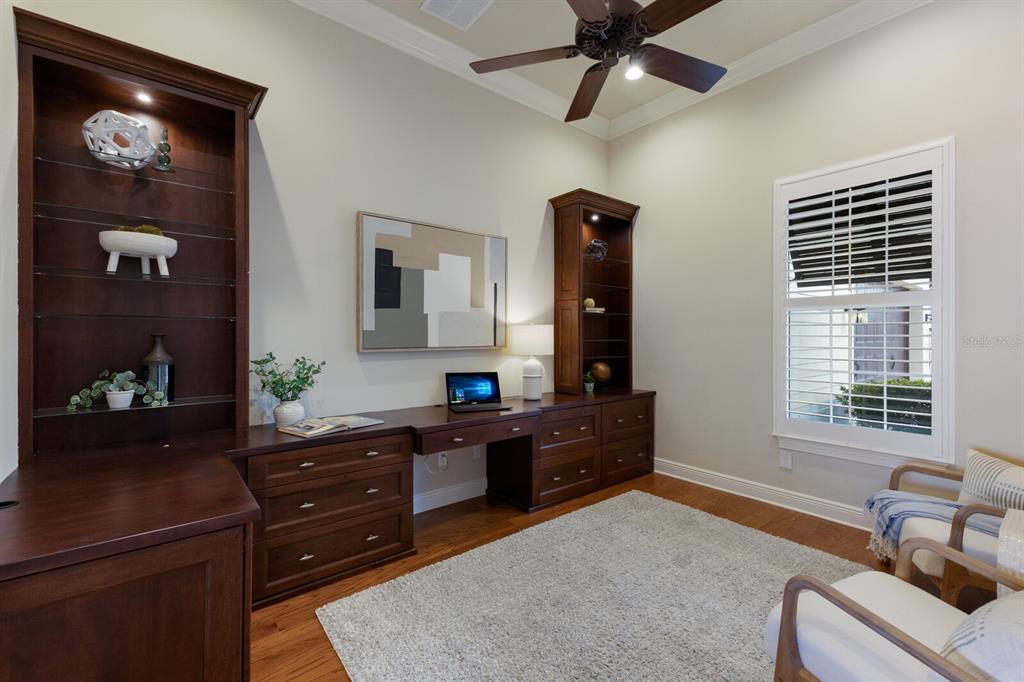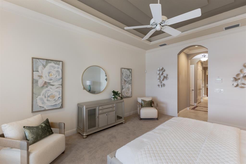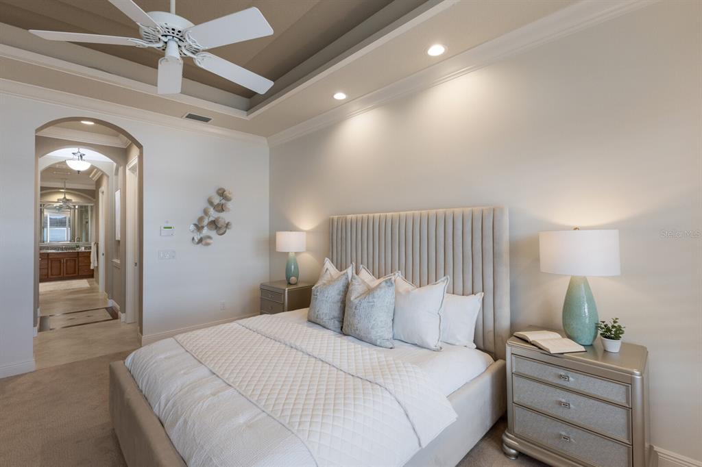 Split BedroomBuilt-in Features Walk-In Closet(s)Ceiling Fan(s) High Ceilings Open Floorplan Solid Wood CabinetsCrown Molding Primary Bedroom Main Floor Tray Ceiling(s)Exterior Features: