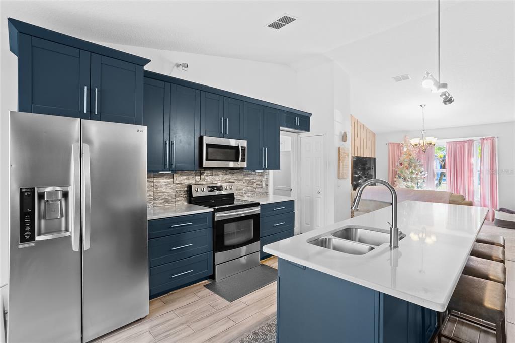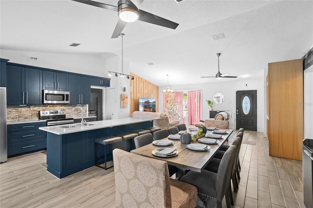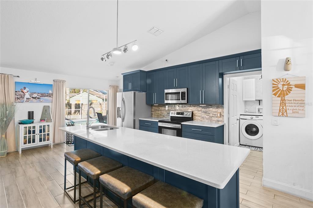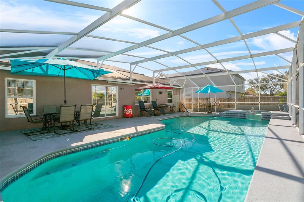 Step into modern elegance with this beautifully updated home, nestled on over a quarter-acre lot. the open and airy floor plan showcases gorgeous wood-look ceramic tiles and thoughtfully designed accent walls, adding warmth and style to each room. the kitchen is a chef’s delight with stunning quartz countertops, updated cabinetry featuring soft-close drawers and doors, and ample storage space. enjoy the outdoors in style with a luxury-sized pool, perfect for relaxing or entertaining in florida’s sunny climate, but for those that love a heated pool, this home has solar panels to keep the pool a perfect temperature! this home boasts a newer roof from 2016 and a water heater installed in 2021, ensuring efficiency and peace of mind. come experience the beauty and comfort of this remodeled oasis—it's ready to welcome you home!724 PINCON, KISSIMMEE, FL 34759